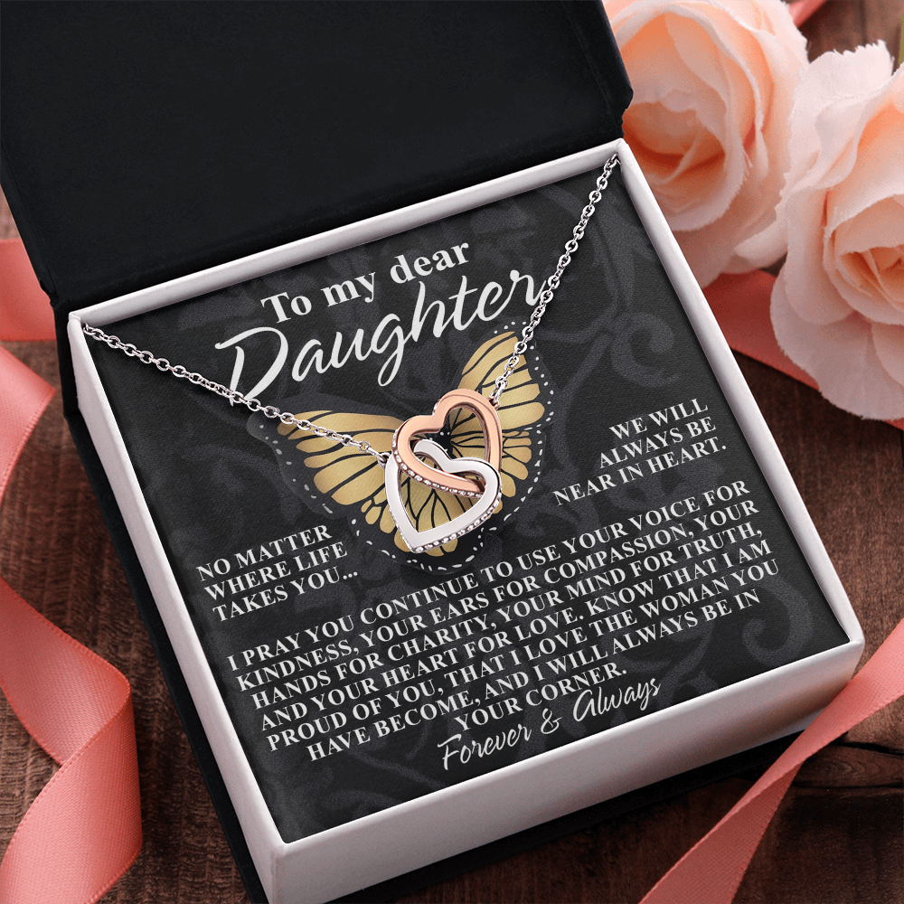 My Dear Daughter - We Will Always Be Near In Heart - Proud Of You - Love The Woman You Have Become - Always Be In Your Corner - Forever & Always - Interlocking Hearts Necklace IH, DAU0000138IH