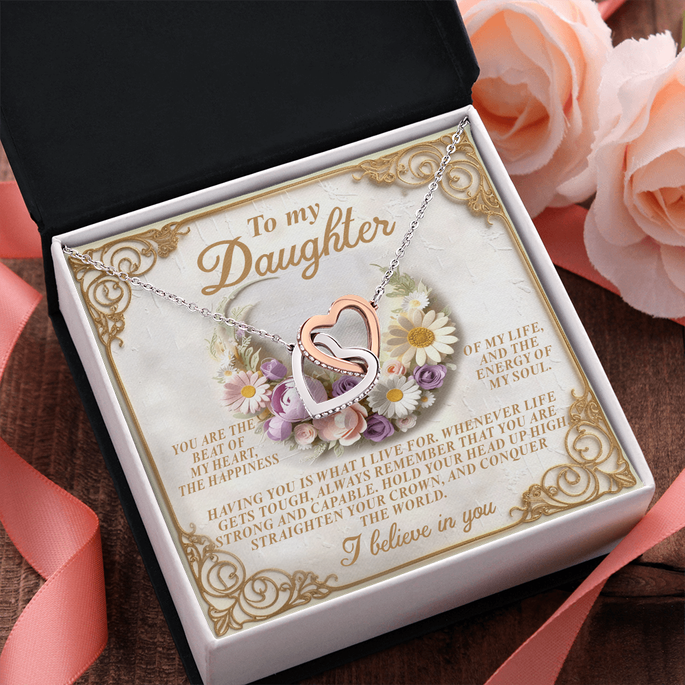 My Daughter - The Beat Of My Heart, Happiness Of My Life & Energy Of My Soul - Having You Is What I Live For - You Are Strong & Capable - Interlocking Hearts Necklace IH, DAU0000136IH