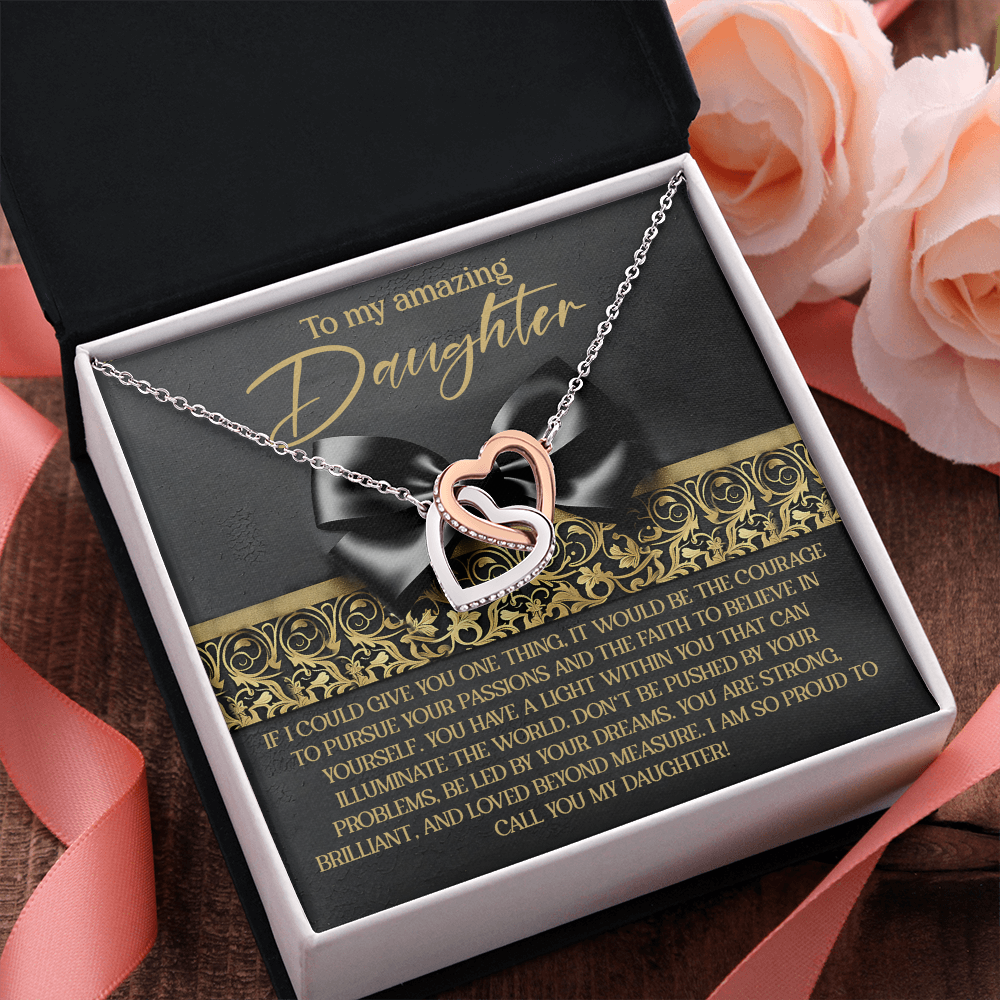 My Amazing Daughter - A Light Within You That Can Illuminate The World - Be Led By Your Dreams - Strong, Brilliant & Loved Beyond Measure - So Proud To Call You My Daughter - Interlocking Hearts Necklace IH, DAU0000142IH