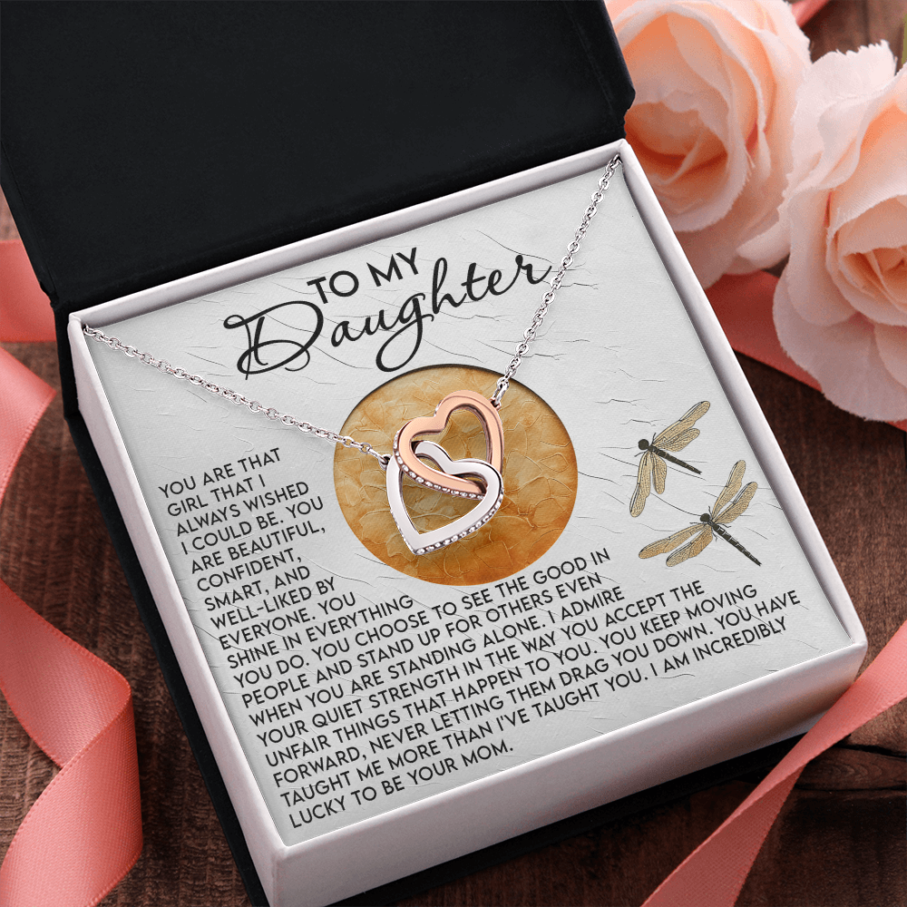 My Daughter - Girl I Always Wished I Could Be - Beautiful, Confident, Smart - Shine In Everything You Do - See The Good In People, Admire You Quiet Strength - Lucky To Be Your Mom - Interlocking Hearts Necklace IH, DAU0000143IH