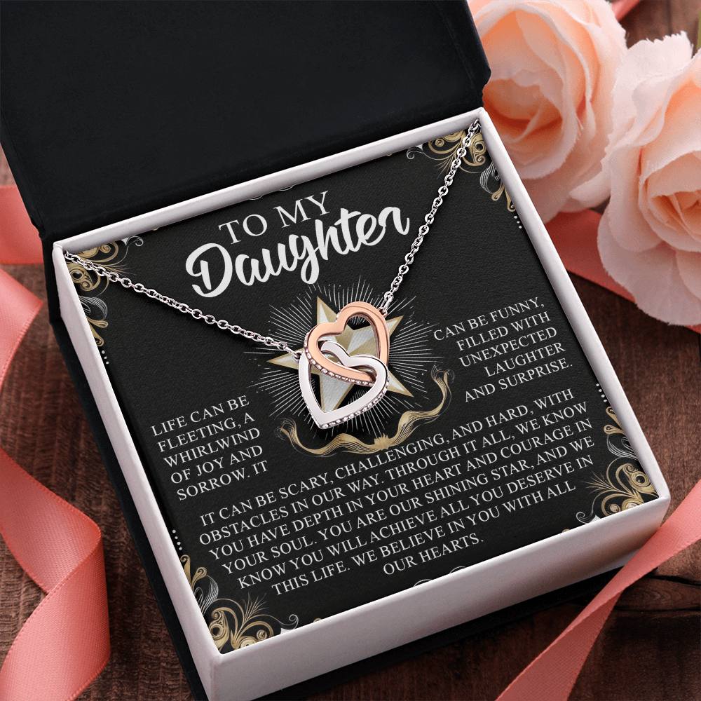 My Daughter - You Have Depth In Your Heart & Courage In Your Soul - Our Shining Star - Believe In You With All Our Hearts - Interlocking Hearts Necklace IH, DAU0000145IH