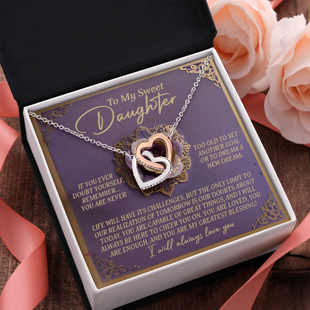 My Sweet Daughter - Life Will Have Its Challenges - You Are Capable Of Great Things - You Are Loved, You Are Enough & You Are My Greatest Blessing - I Will Always Love You - Interlocking Hearts Necklace IH, DAU0000135IH