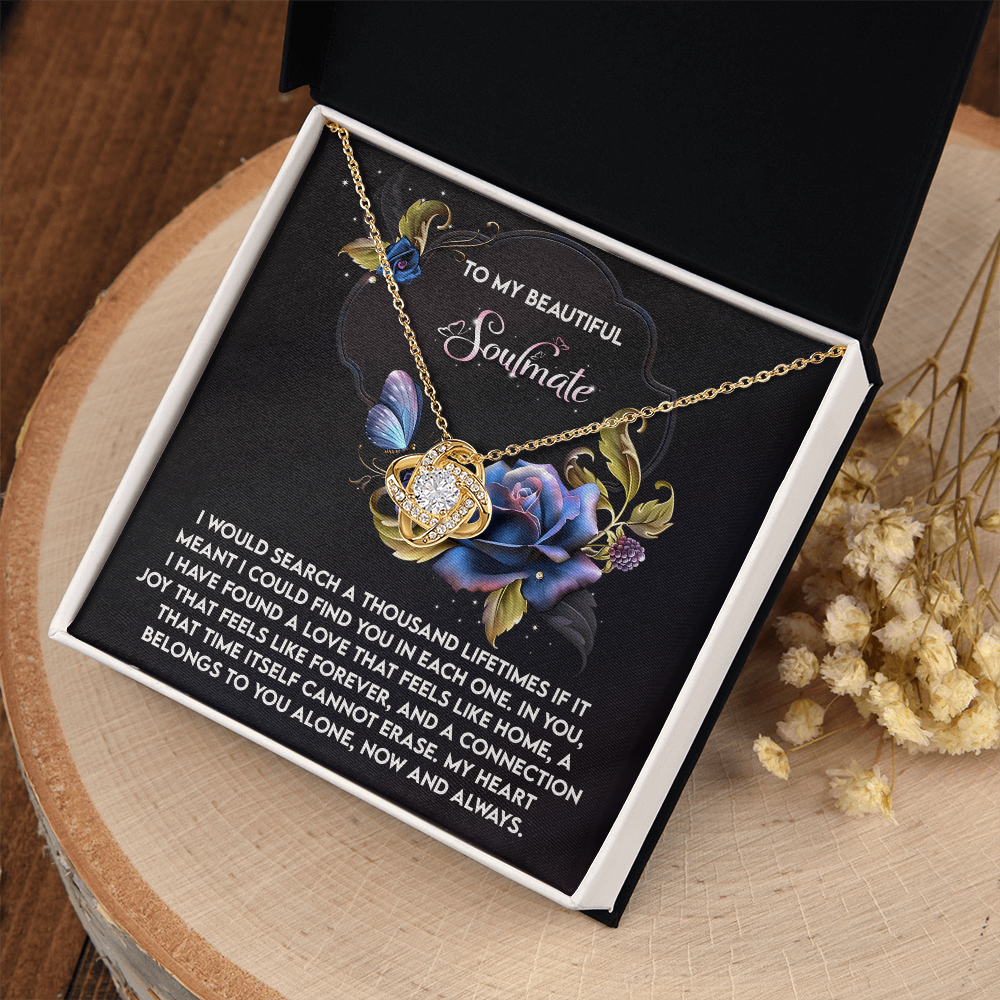 My Beautiful Soulmate - Search A Thousand Lifetimes If I Could Find You In Each One - Love That Feels Like Home - Joy That Feels Like Forever - My Heart Belongs To You - Love Knot Necklace LN, SMT0000076LN