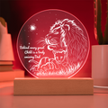 Your plaque will be crafted from premium acrylic with a professionally printed design for a polished look. It comes with a stylish wooden LED base, and you can choose between a USB plug-in option OR a cordless battery-operated option (requires 2 AAA batteries, not included). Both LED bases feature 7 vibrant colors, allowing the user to customize the lighting with various color changes and dynamic cycles.