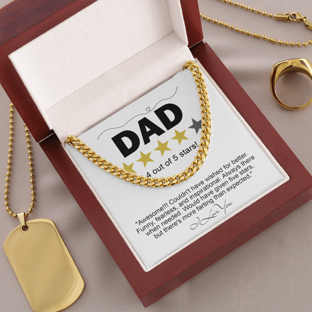 Dad - 4 Out Of 5 Stars - Couldn't Have Wished For Better - Always There When Needed - Would Have Given Five Stars, But There's More Farting Than Expected - I Love You - Cuban Chain Necklace CC, DAD0000017CC