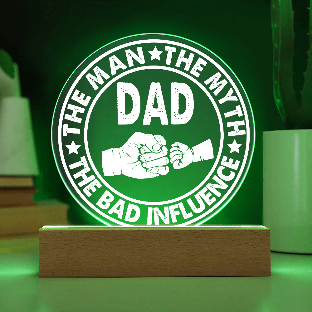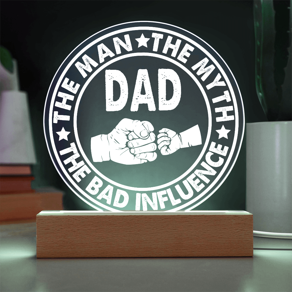 Dad - The Man - The Myth - The Bad Influence - Acrylic Circle Plaque ACP, DAD0000043ACP
