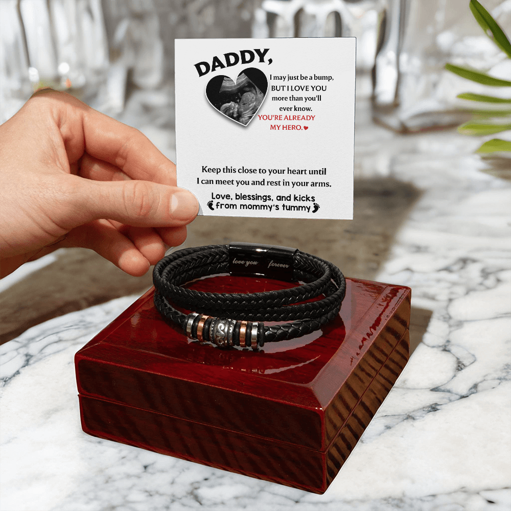 Are you looking for a gift as special as the man in your life? Then this Men's "Love You Forever" Bracelet is perfect! Engraved with a heartfelt message, this gift is great for birthdays, anniversaries, or just a thoughtful way to say "I love you". It's not just an accessory; it's a daily reminder of your love and appreciation. Whether it's your son, husband, or any deserving guy, this bracelet will have them grinning from ear to ear while rocking some serious style.