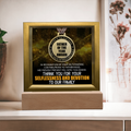 Your plaque will be crafted from premium acrylic with a professionally printed design for a polished look. It comes with a stylish wooden LED base, and you can choose between a USB plug-in option OR a cordless battery-operated option (requires 2 AAA batteries, not included). Both LED bases feature 7 vibrant colors, allowing the user to customize the lighting with various color changes and dynamic cycles.
