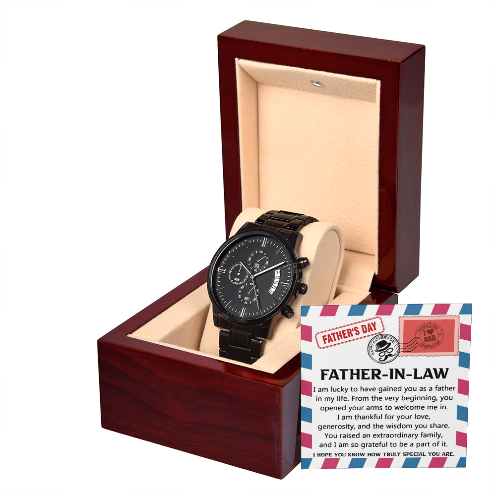 Father's Day - Father-In-Law - I Am Lucky To Have You As A Father In My Life - You Opened Your Arms To Welcome Me In - Thankful For Your Love, Generosity & Wisdom - Hope You Know How Truly Special You Are - Metal Chronograph Watch WAT, FDY0000010WAT