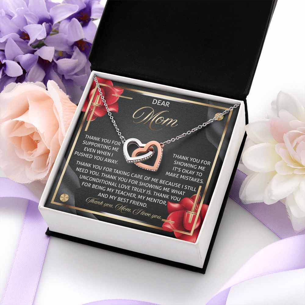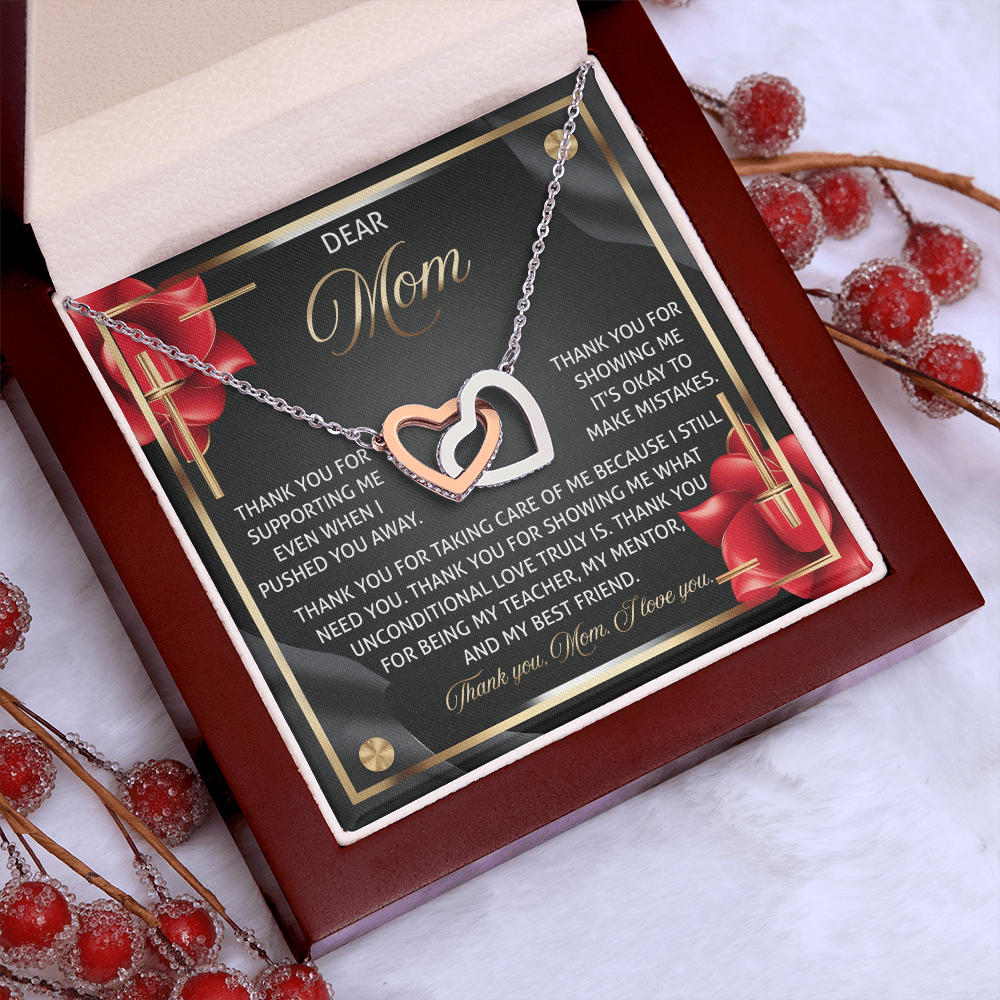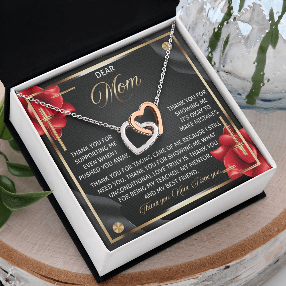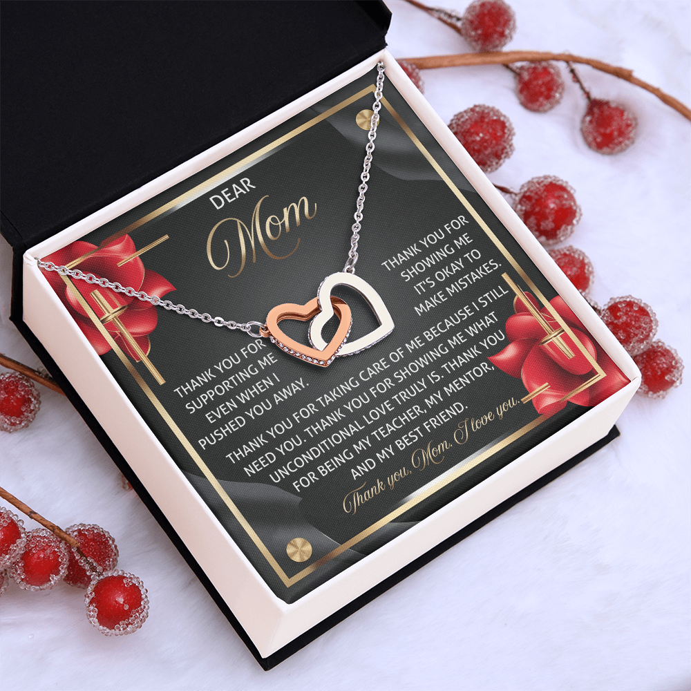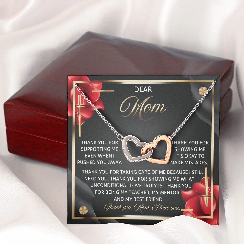 Mom - Thank You For Supporting Me - Showing Me It's Okay To Make Mistakes - Taking Care Of Me Because I Still Need You & Unconditional Love - I Love You - Interlocking Hearts Necklace IH, MOM0000028IH