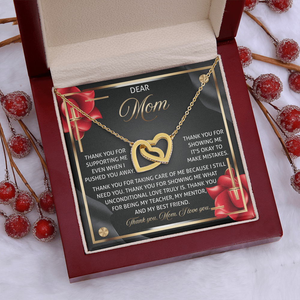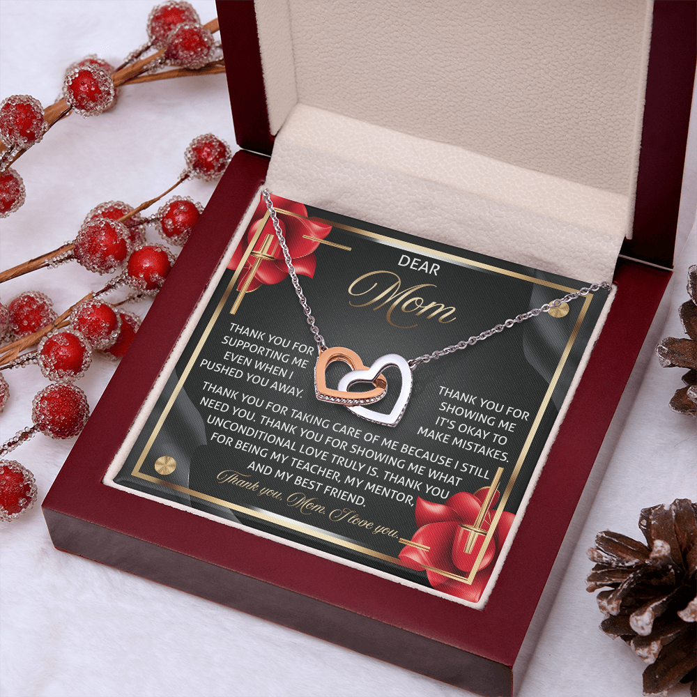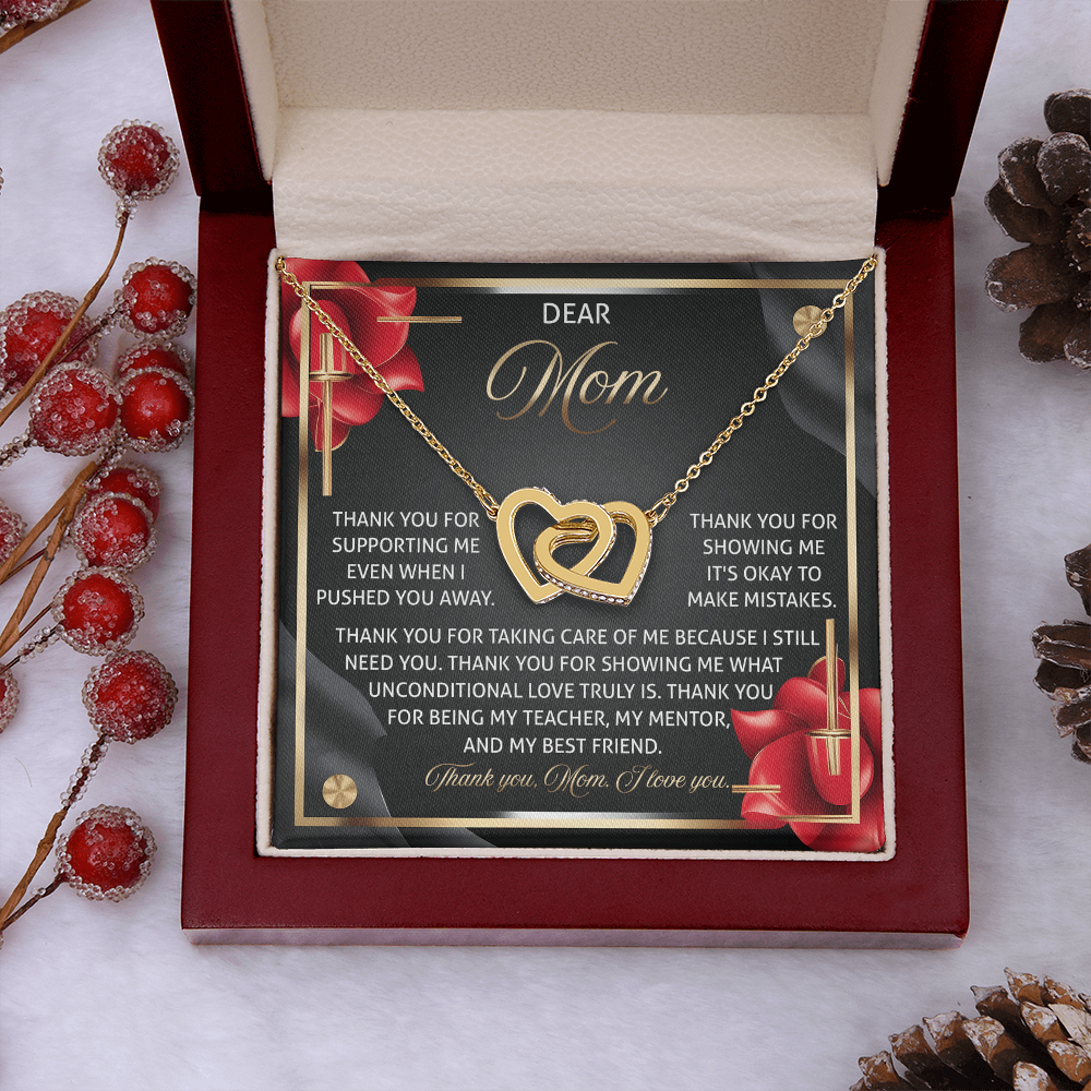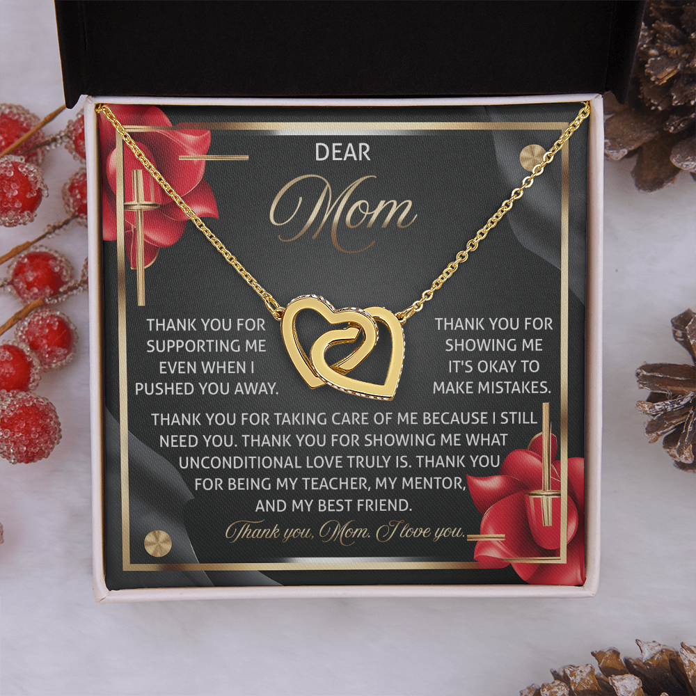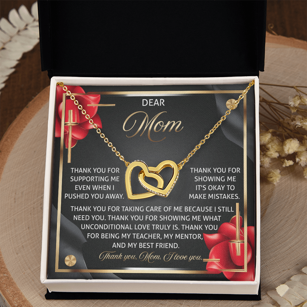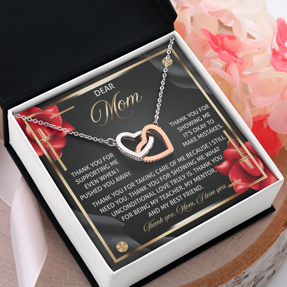 Mom - Thank You For Supporting Me - Showing Me It's Okay To Make Mistakes - Taking Care Of Me Because I Still Need You & Unconditional Love - I Love You - Interlocking Hearts Necklace IH, MOM0000028IH
