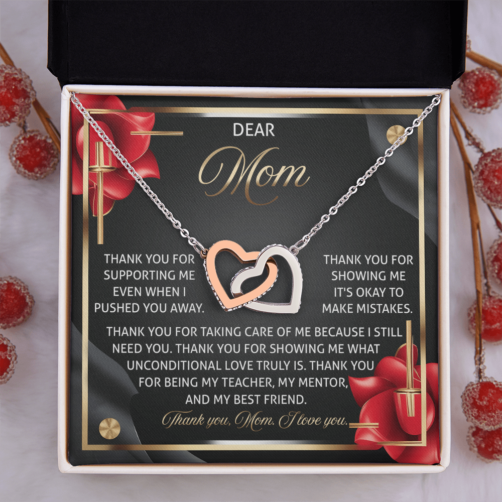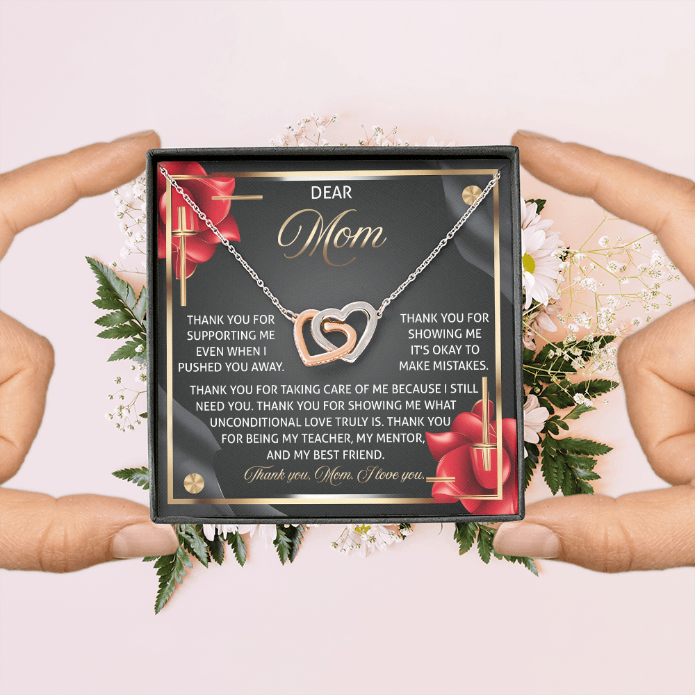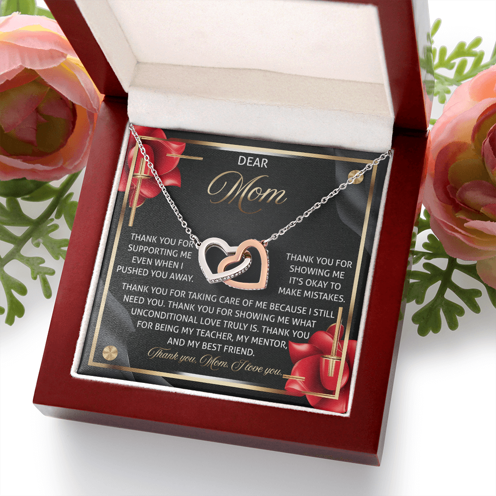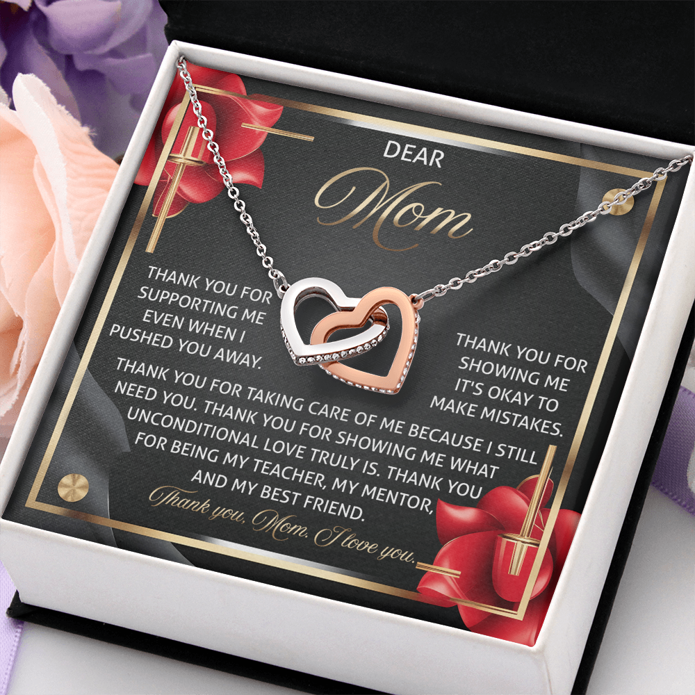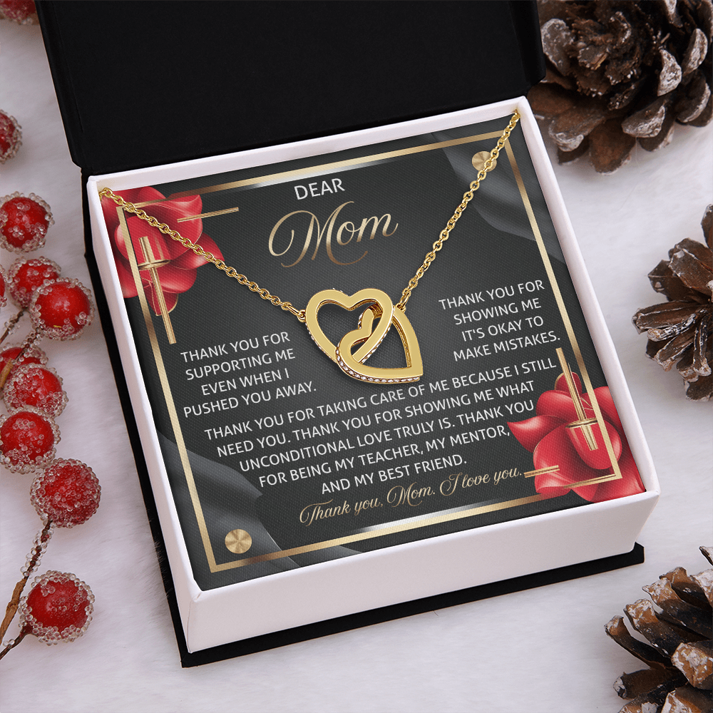 Mom - Thank You For Supporting Me - Showing Me It's Okay To Make Mistakes - Taking Care Of Me Because I Still Need You & Unconditional Love - I Love You - Interlocking Hearts Necklace IH, MOM0000028IH