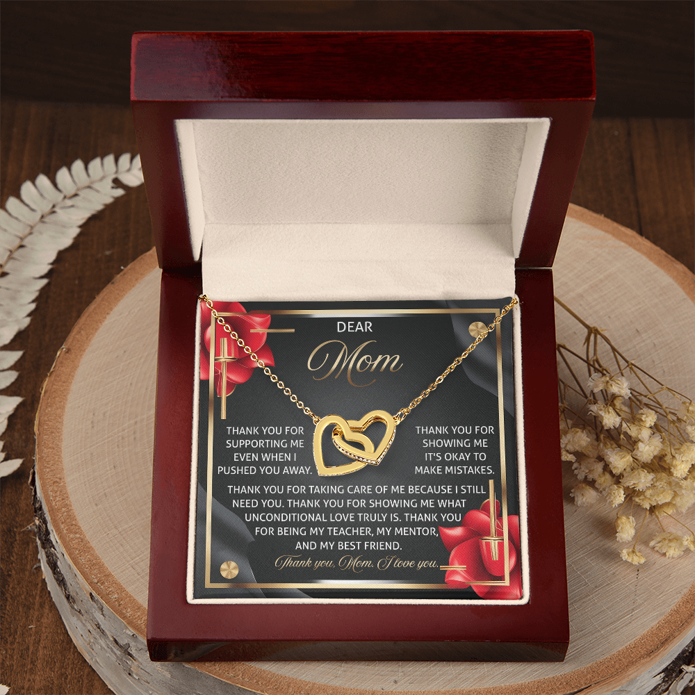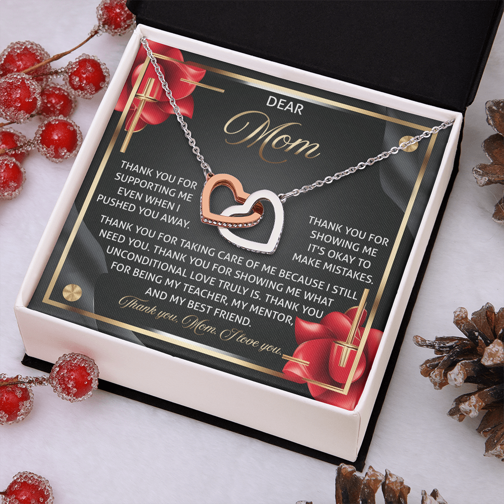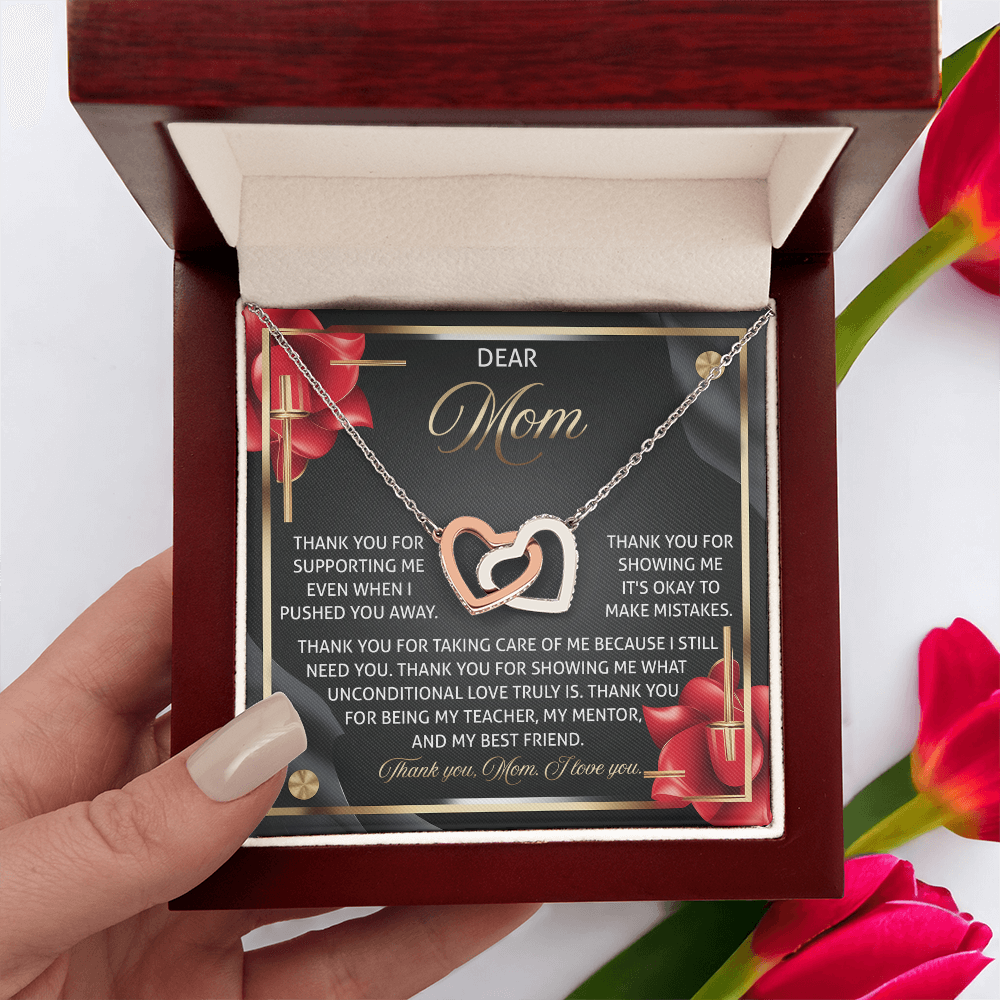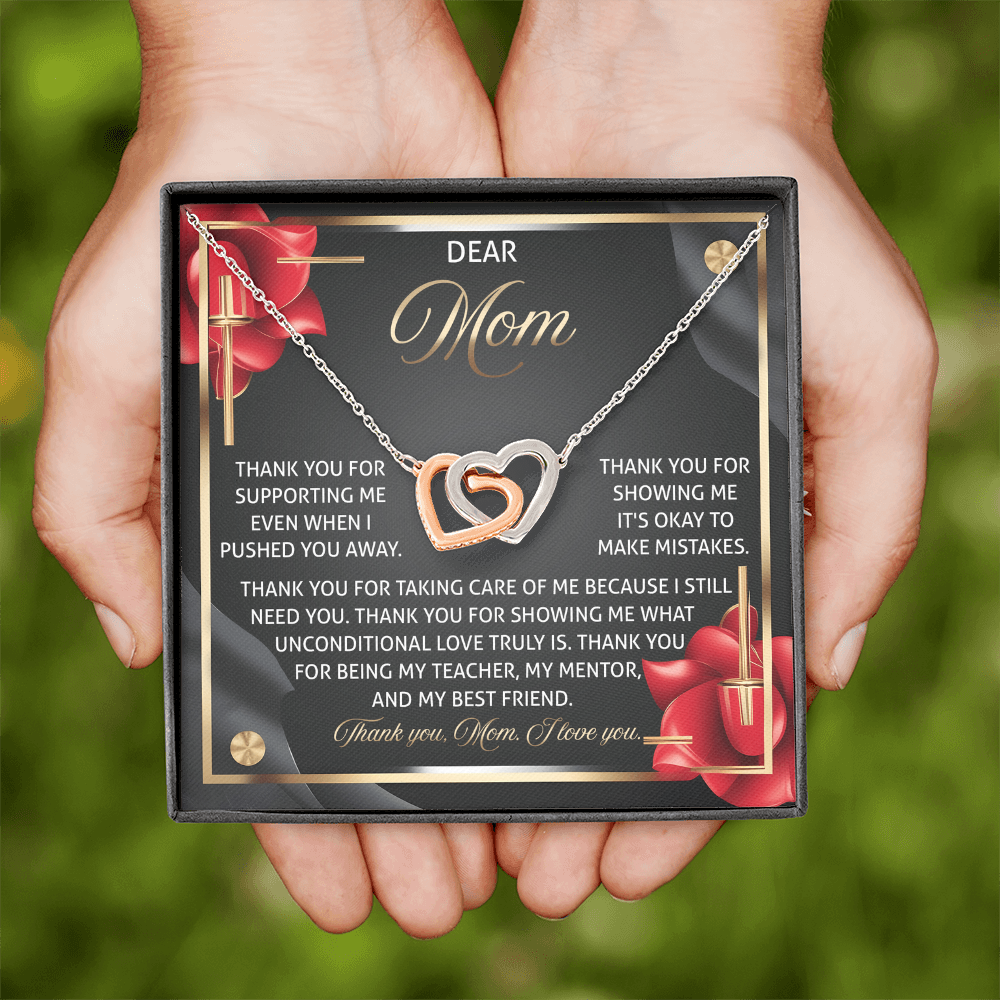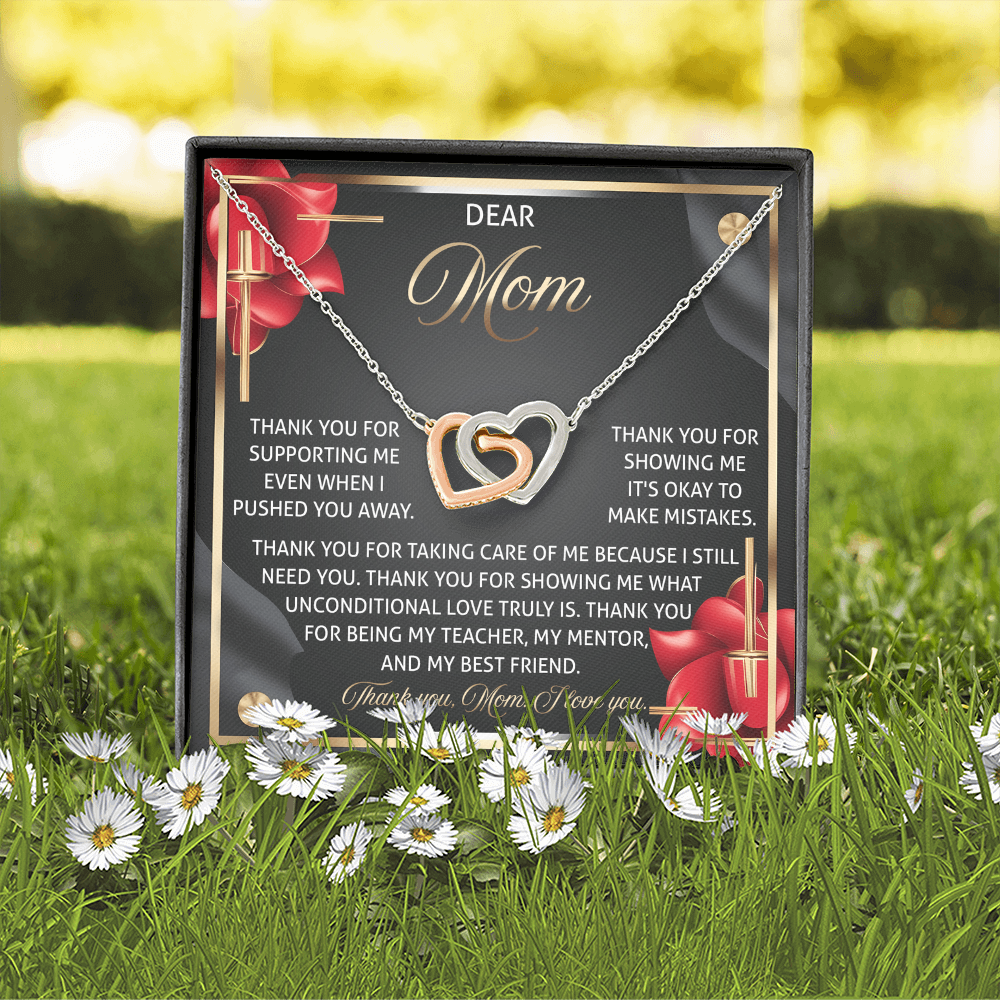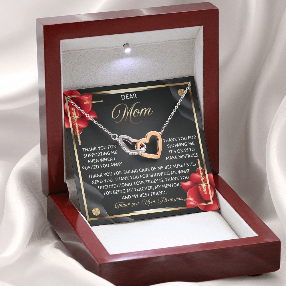 Mom - Thank You For Supporting Me - Showing Me It's Okay To Make Mistakes - Taking Care Of Me Because I Still Need You & Unconditional Love - I Love You - Interlocking Hearts Necklace IH, MOM0000028IH