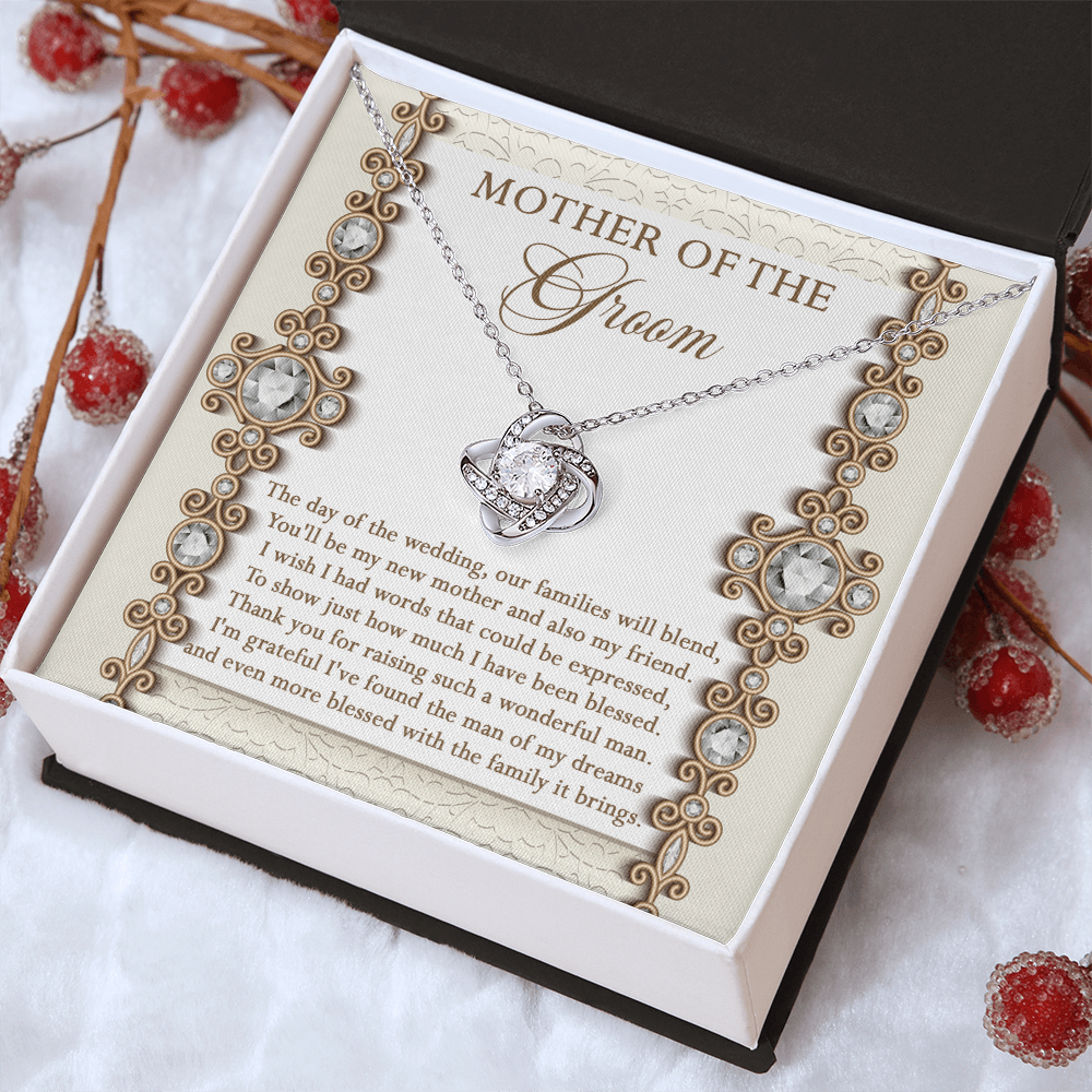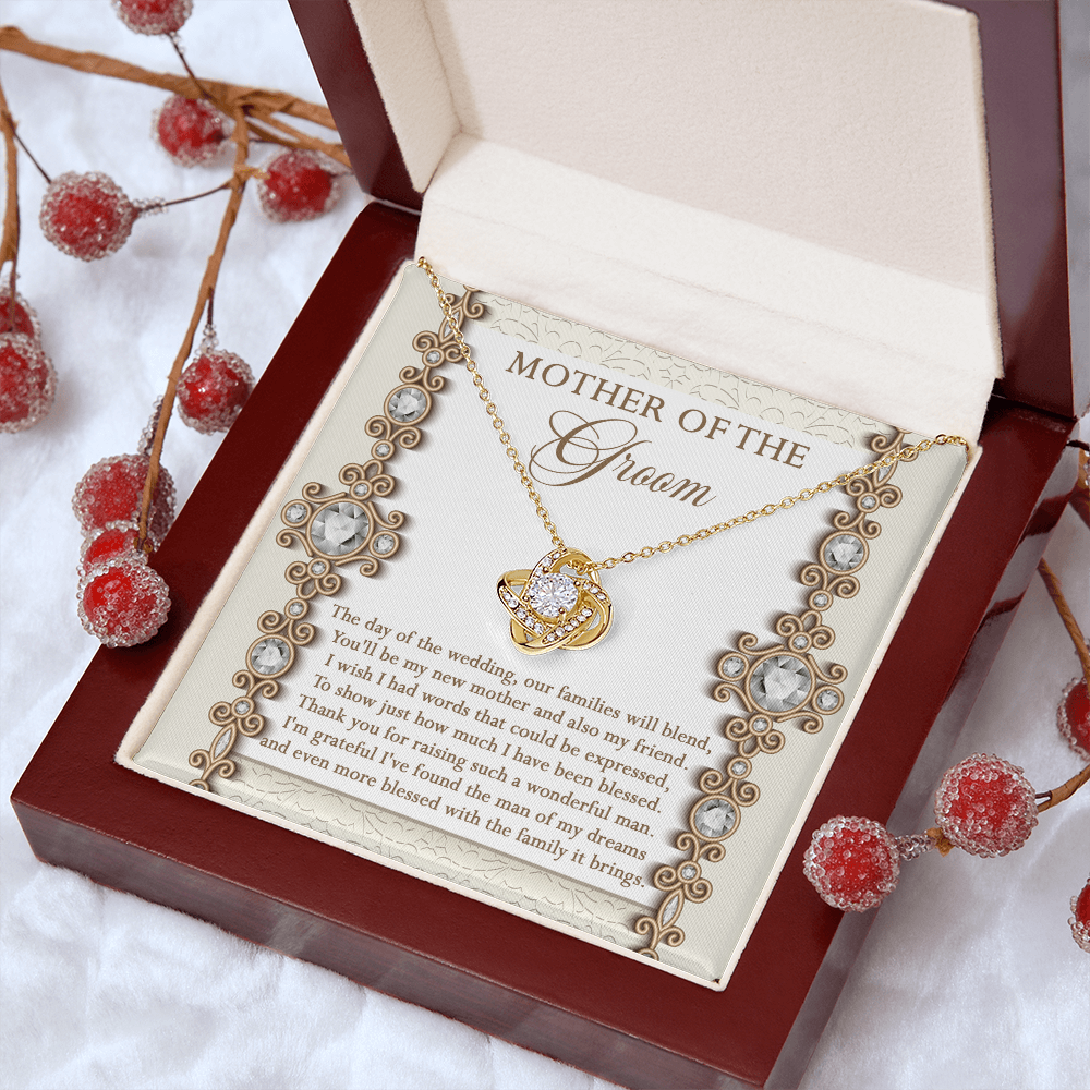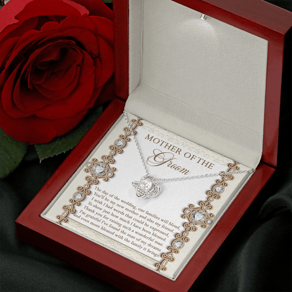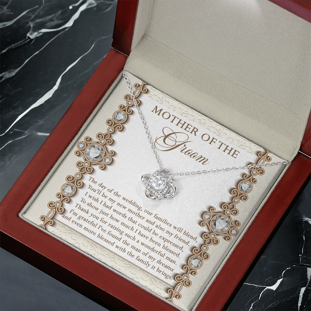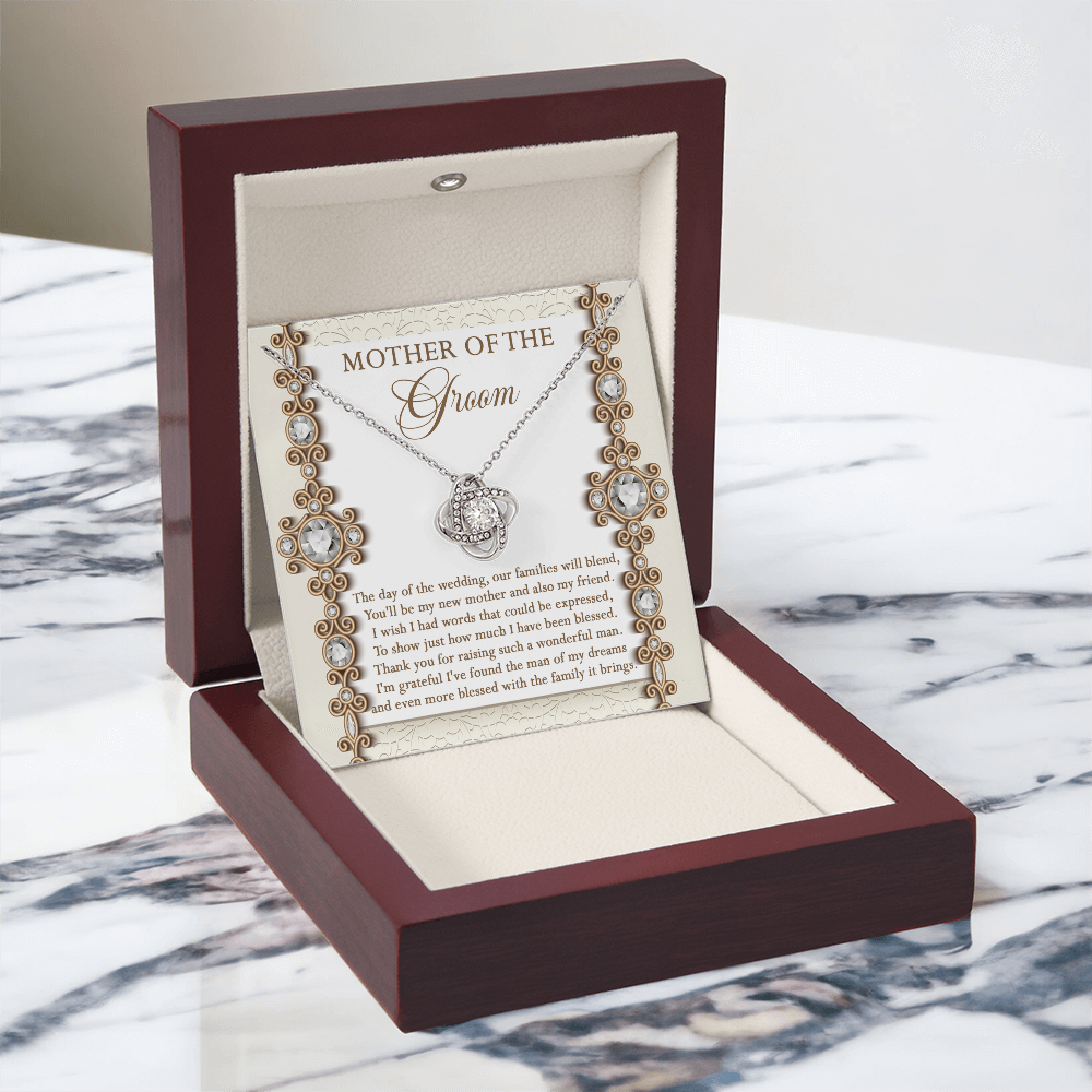 Mother Of The Groom - The Day Of The Wedding, Our Families Will Blend, You'll Be My New Mother & Also My Friend - Grateful I've Found The Man Of My Dreams & Even More Blessed With The Family It Brings - Love Knot Necklace LN, MIL0000022LN