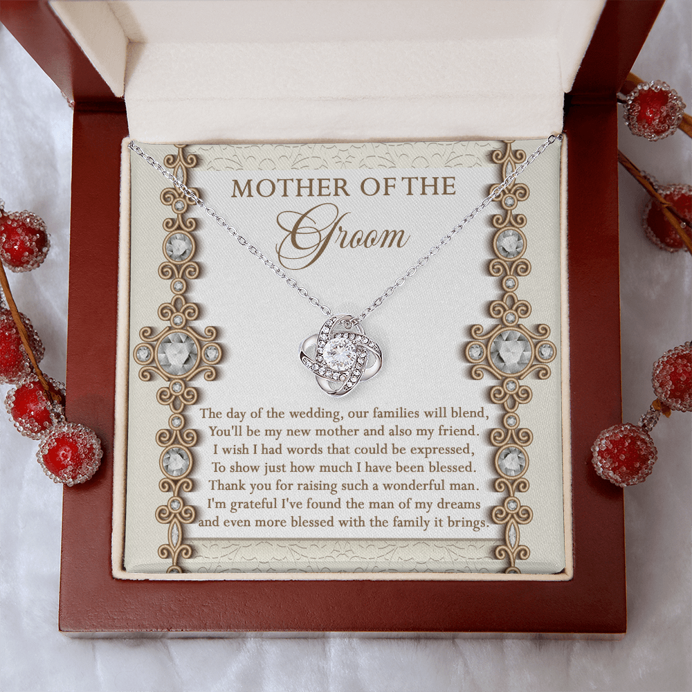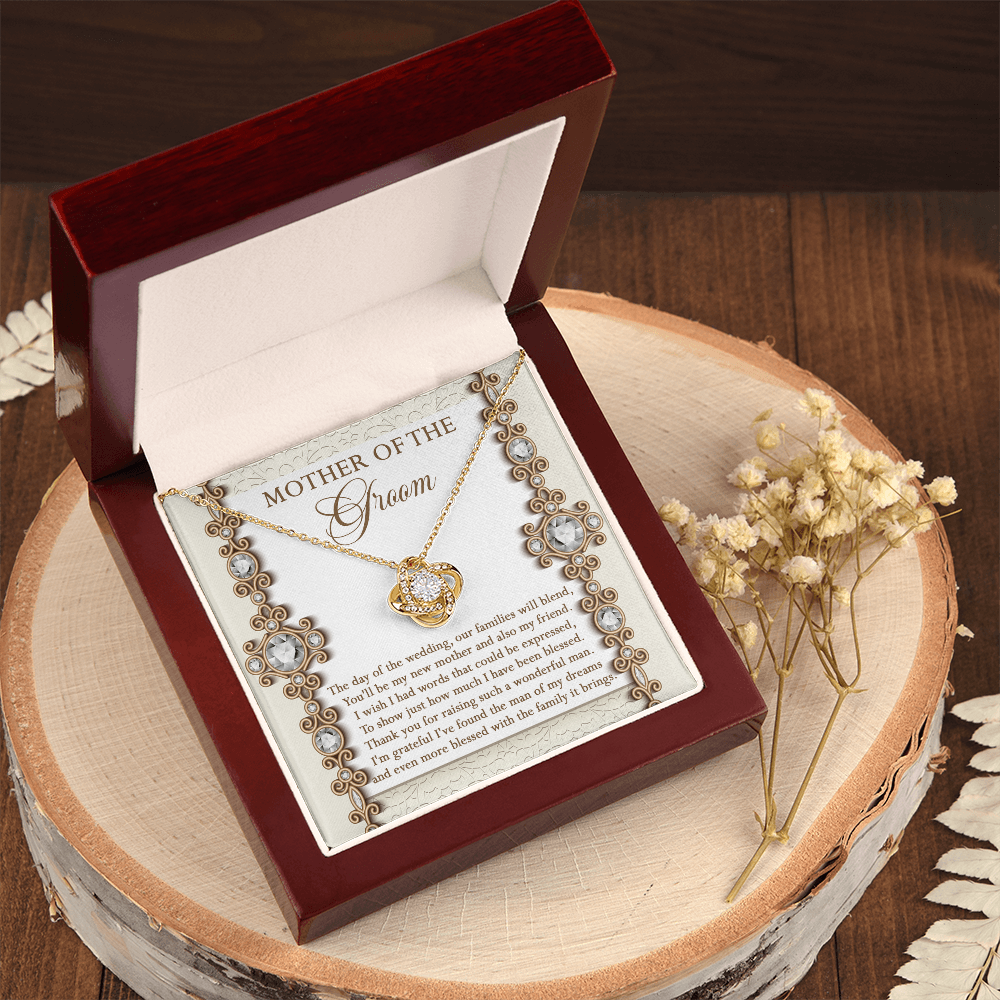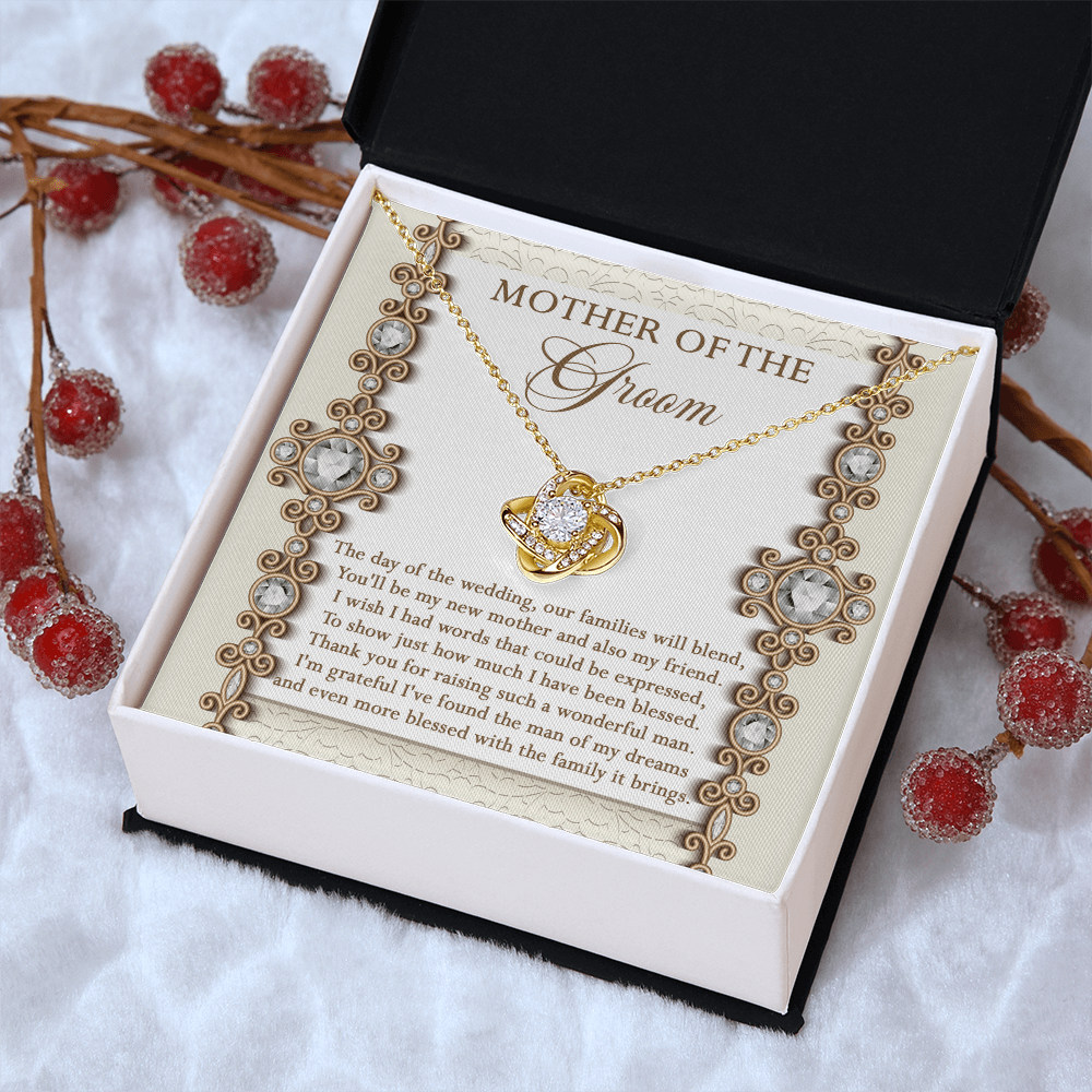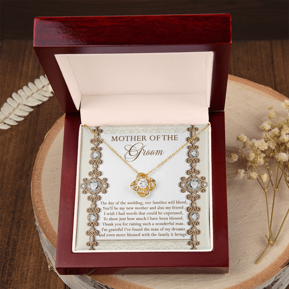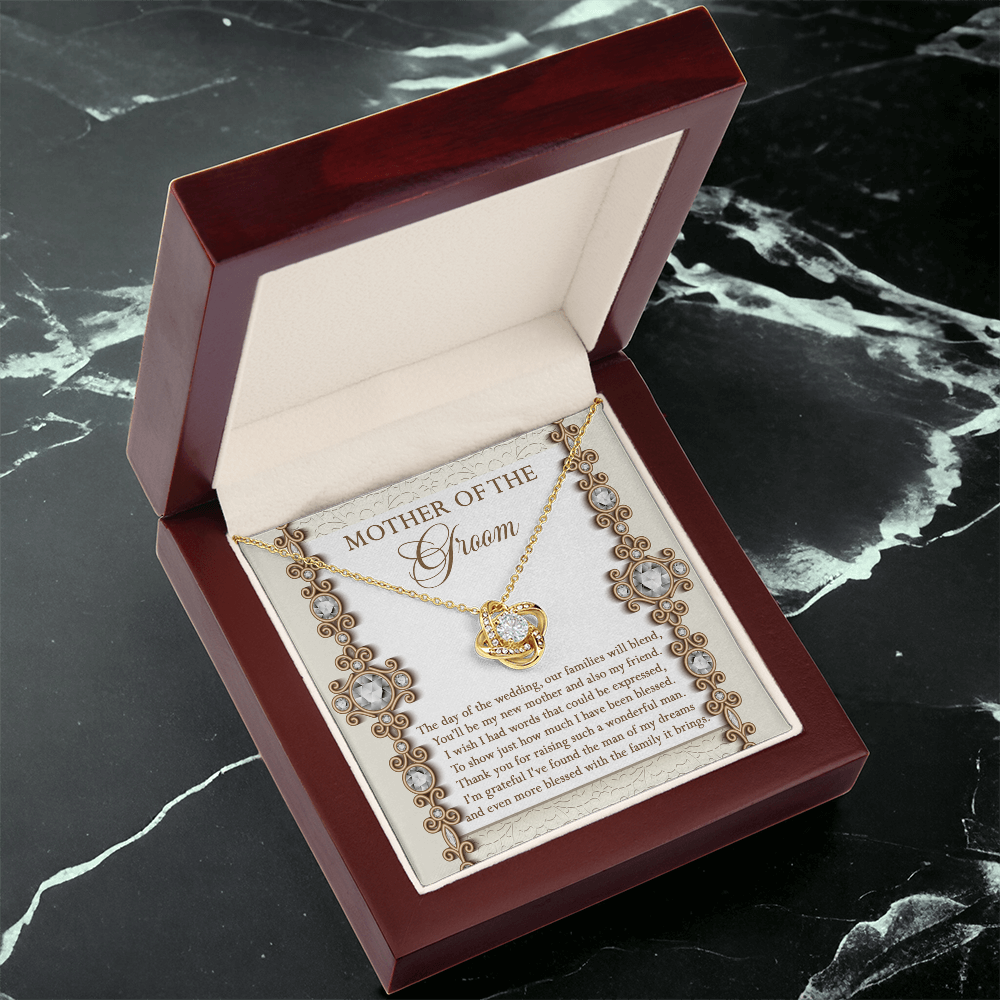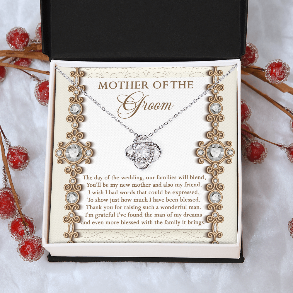 Mother Of The Groom - The Day Of The Wedding, Our Families Will Blend, You'll Be My New Mother & Also My Friend - Grateful I've Found The Man Of My Dreams & Even More Blessed With The Family It Brings - Love Knot Necklace LN, MIL0000022LN