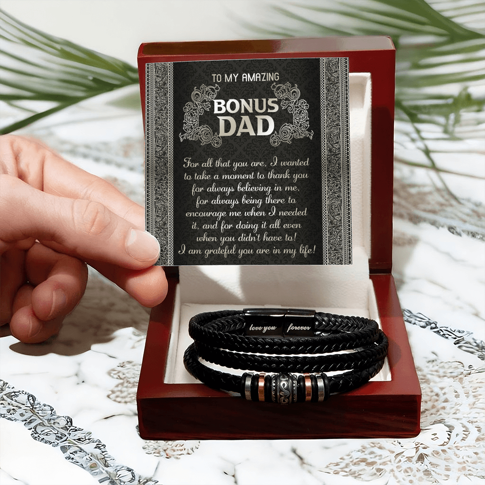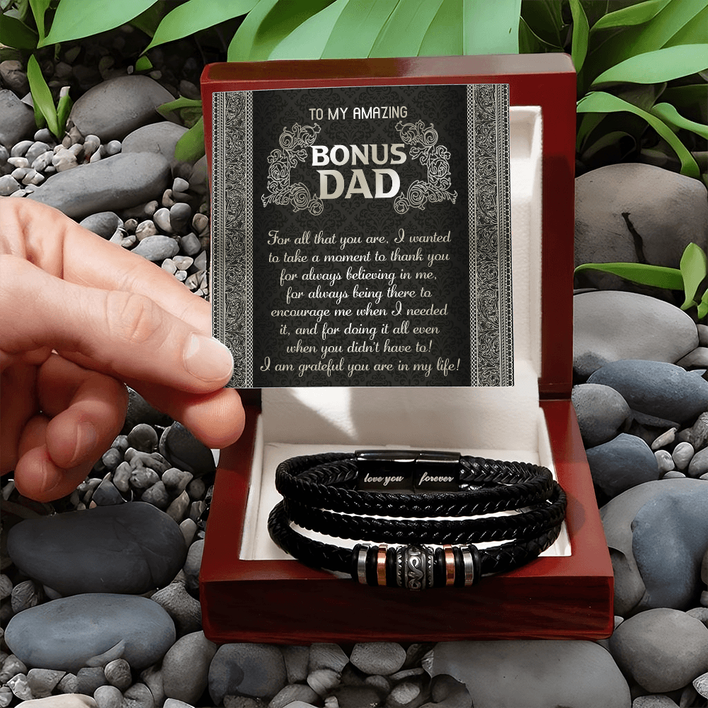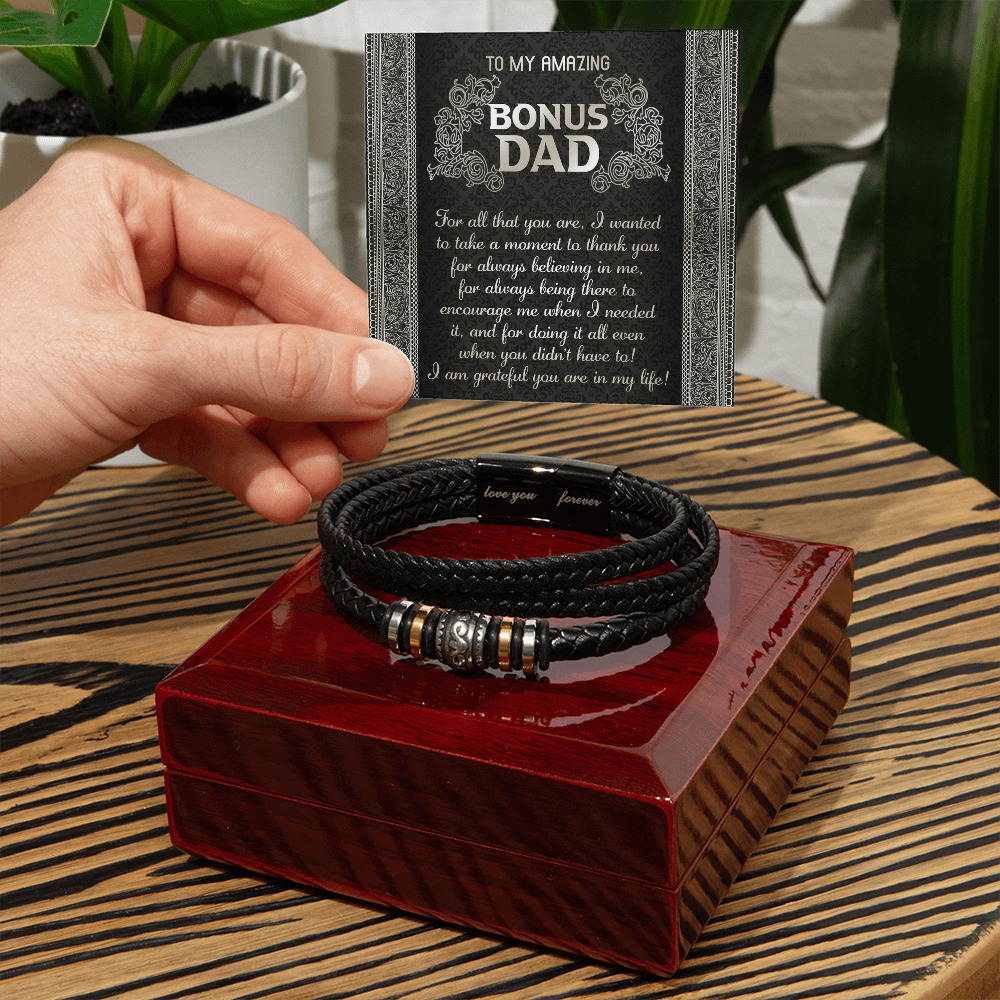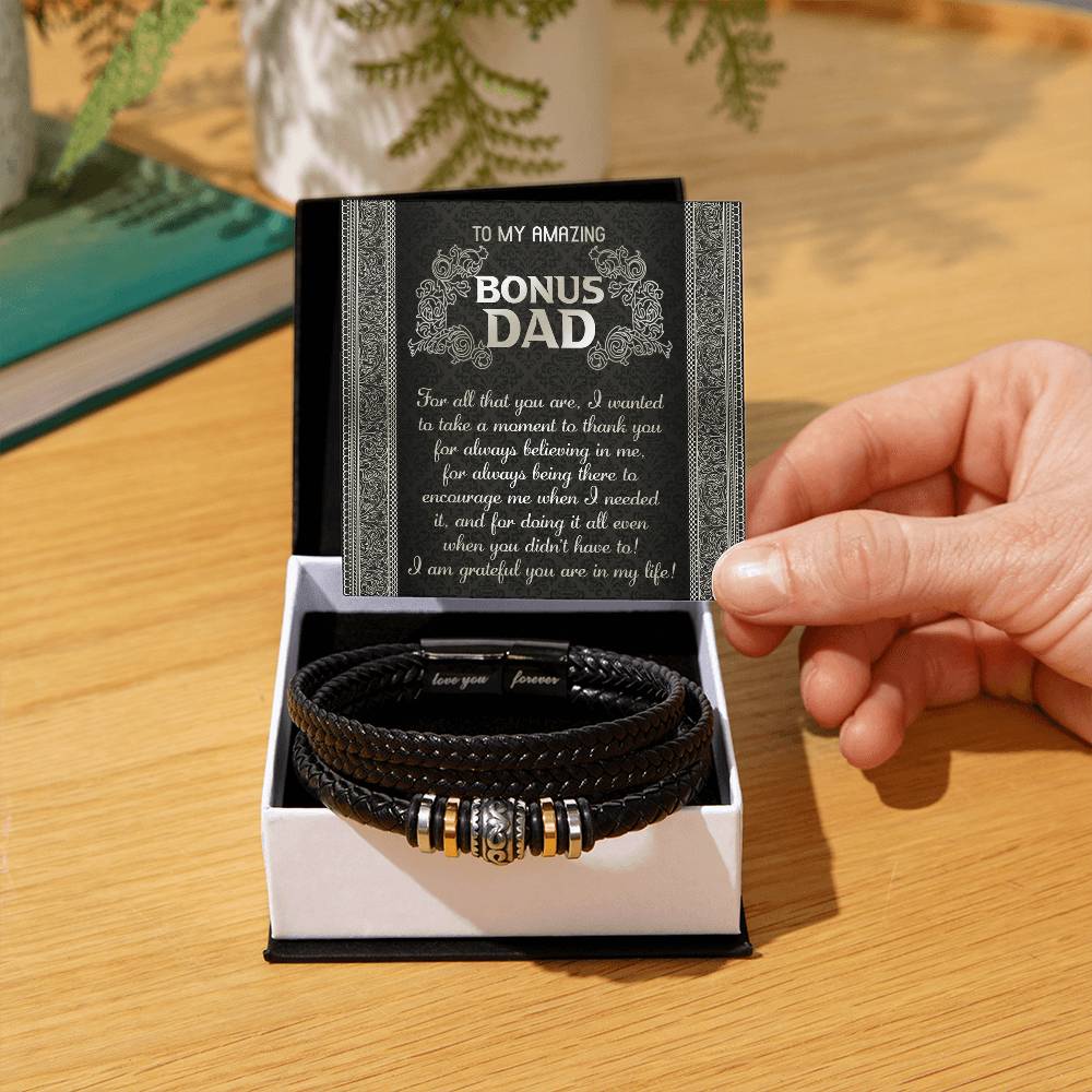 My Amazing Bonus Dad - Wanted To Take A Moment To Thank You For Always Believing In Me - For Always Being There To Encourage Me - For Doing It All Even When You Didn't Have To - I Am Grateful You Are In My Life - Bracelet BR, DAD0000019BR