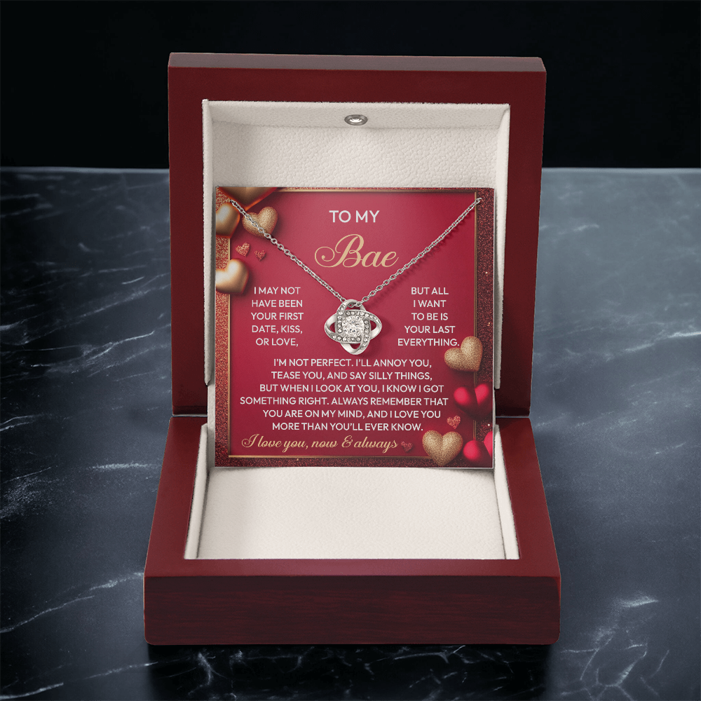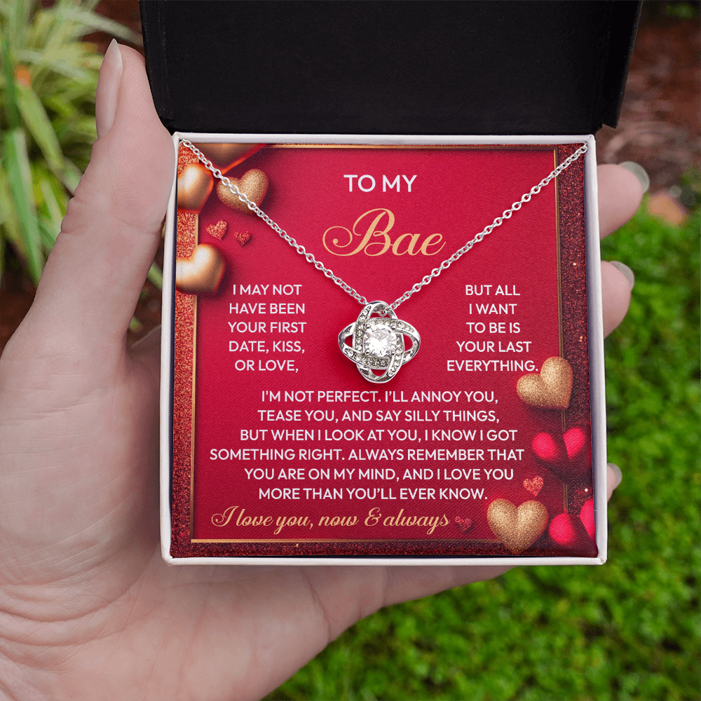 My Bae - I May Not Have Been Your First Date, Kiss Or Love - All I Want Is To Be Your Last Everything - You Are On My Mind - I Love You More Than You'll Ever Know - Love Knot Necklace LN, SMT0000031LN