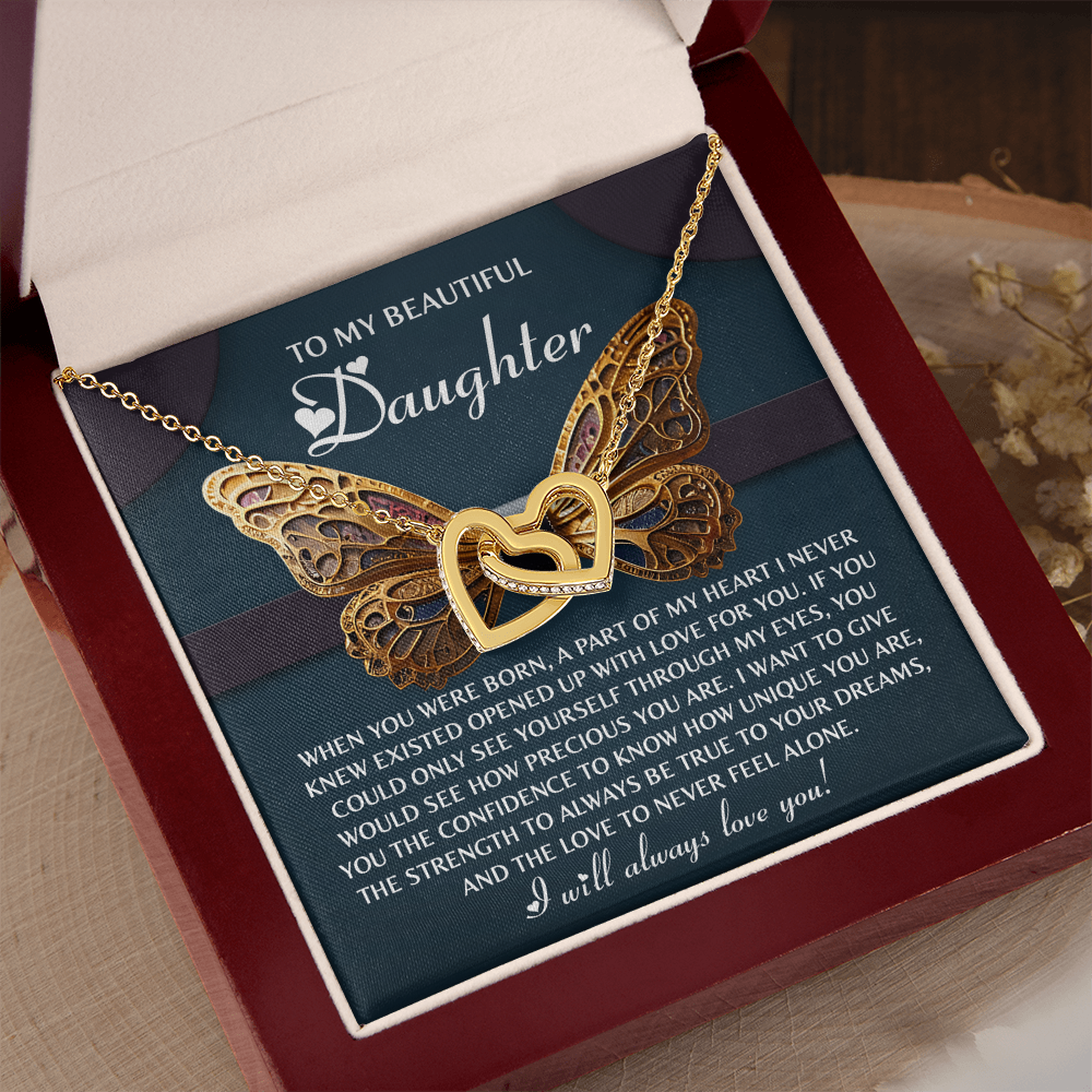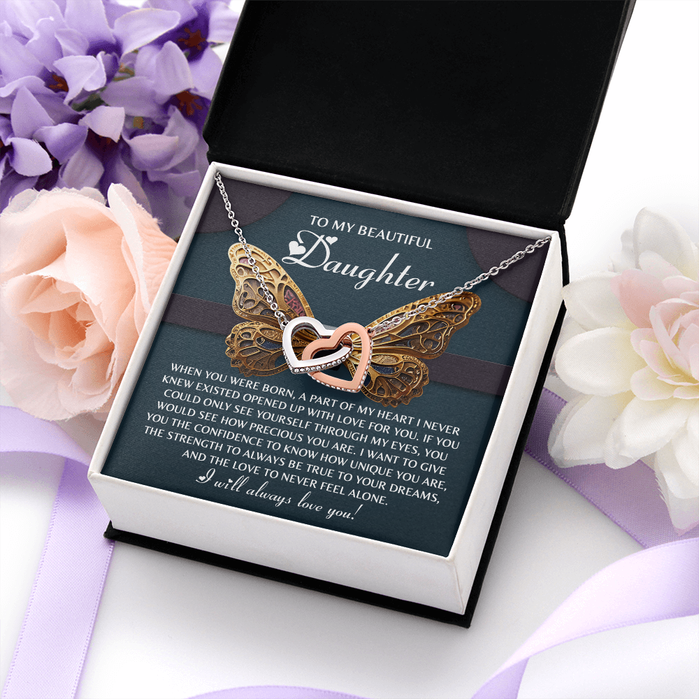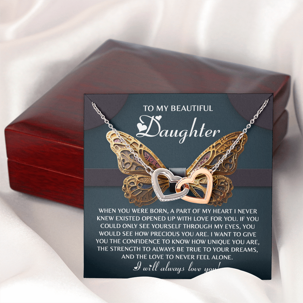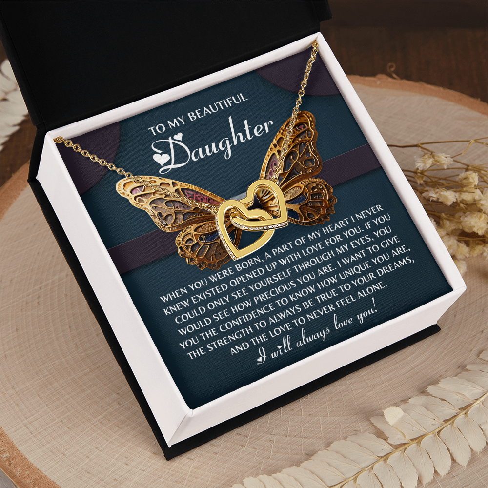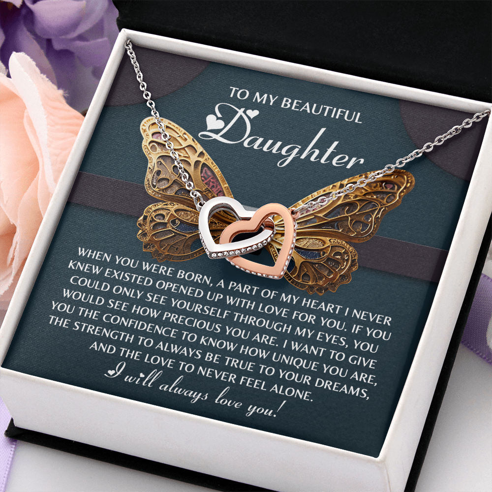 My Baeautiful Daughter - A Part Of My Heart I Never Knew Existed Opened Up With Love For You - How Precious You Are - I Will Always Love You - Interlocking Hearts Necklace IH, DAU0000099IH
