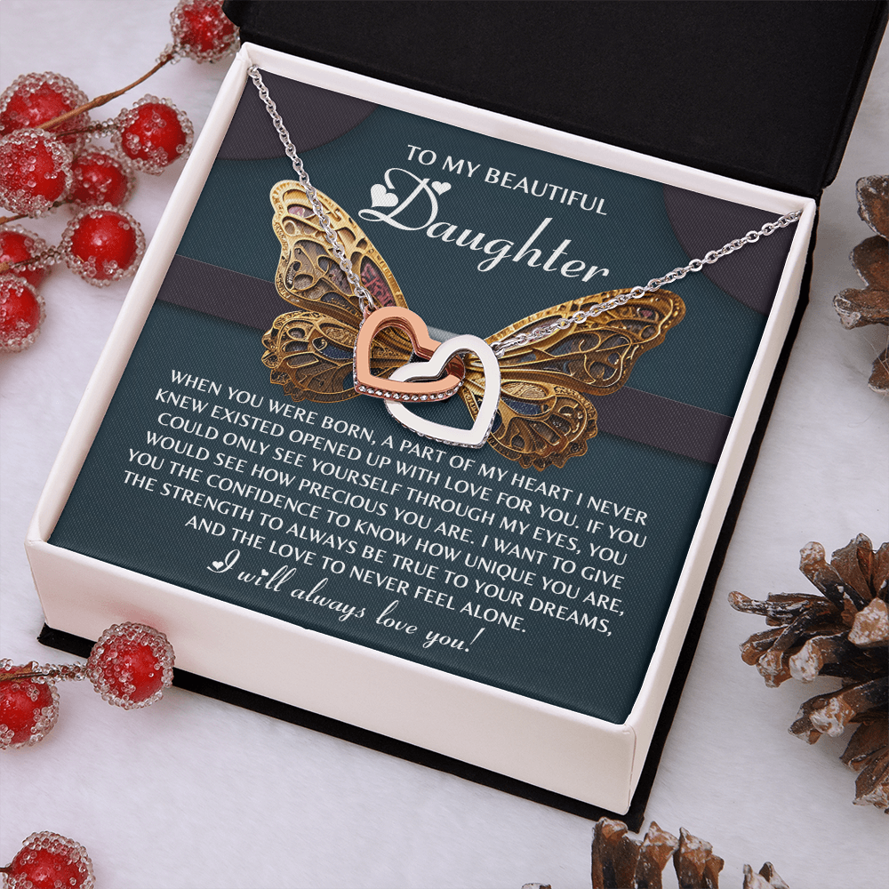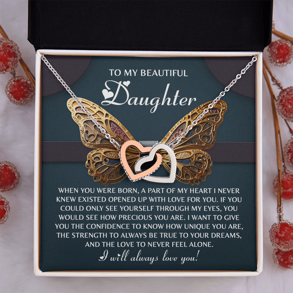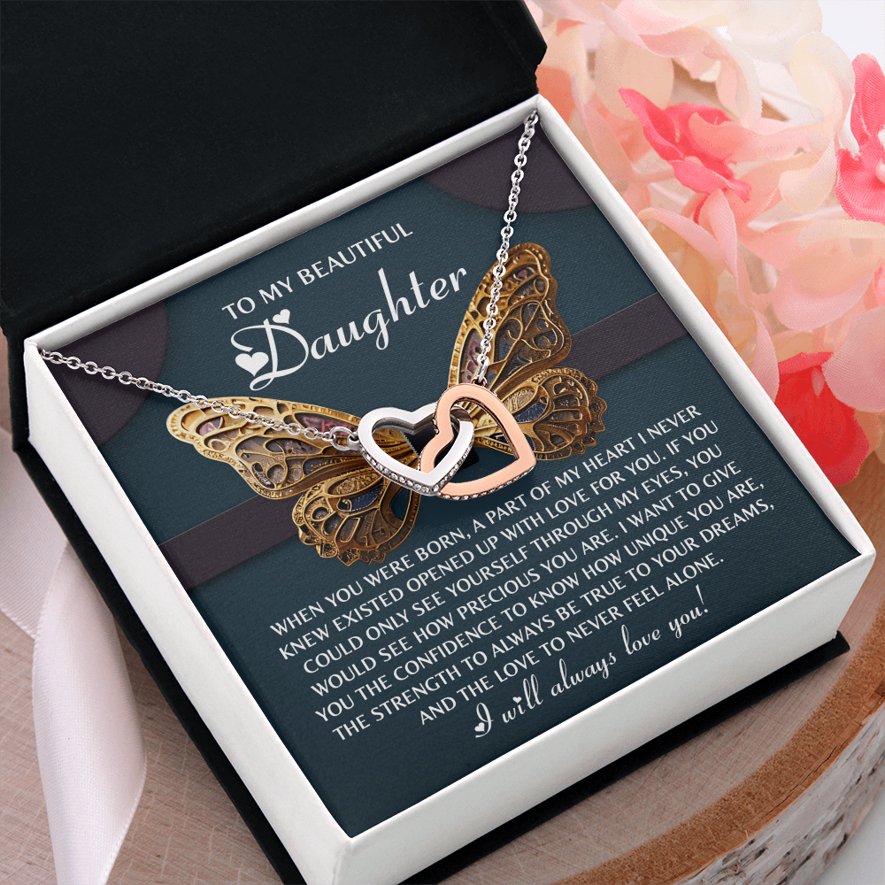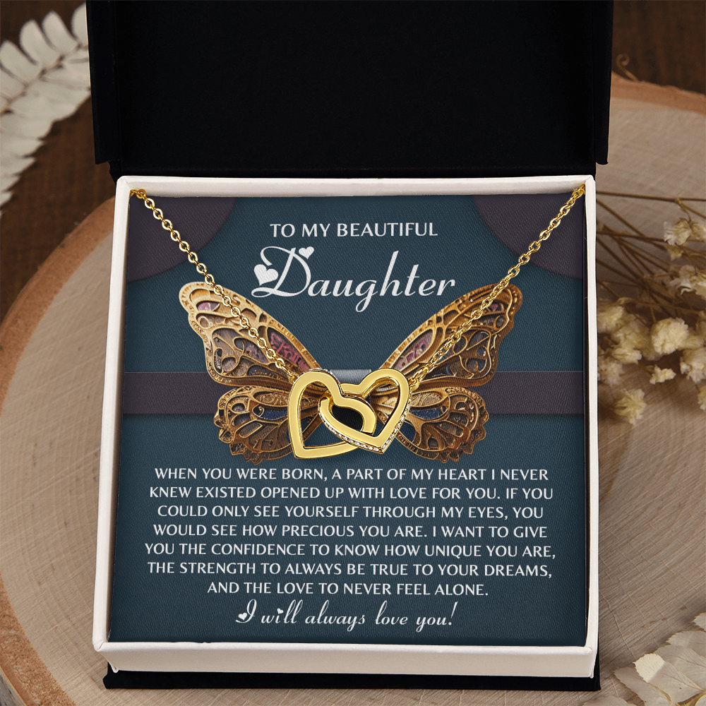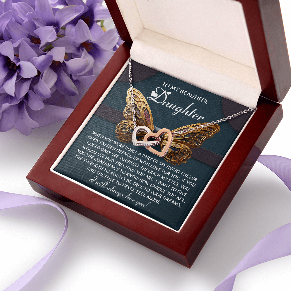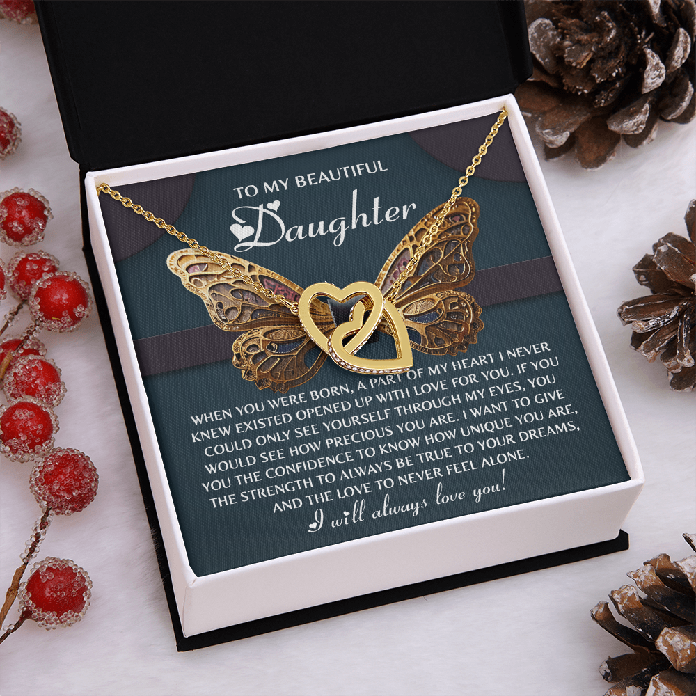My Baeautiful Daughter - A Part Of My Heart I Never Knew Existed Opened Up With Love For You - How Precious You Are - I Will Always Love You - Interlocking Hearts Necklace IH, DAU0000099IH