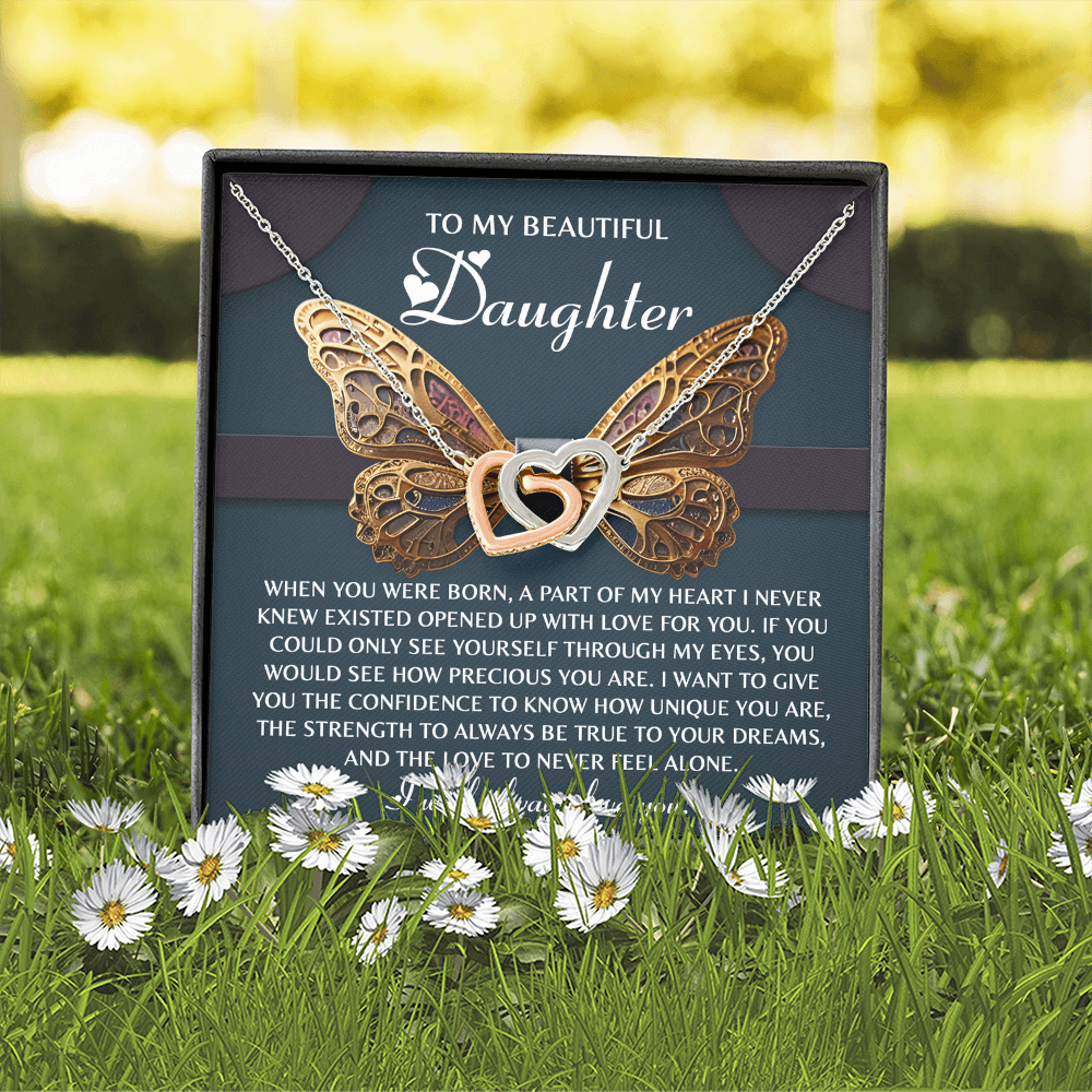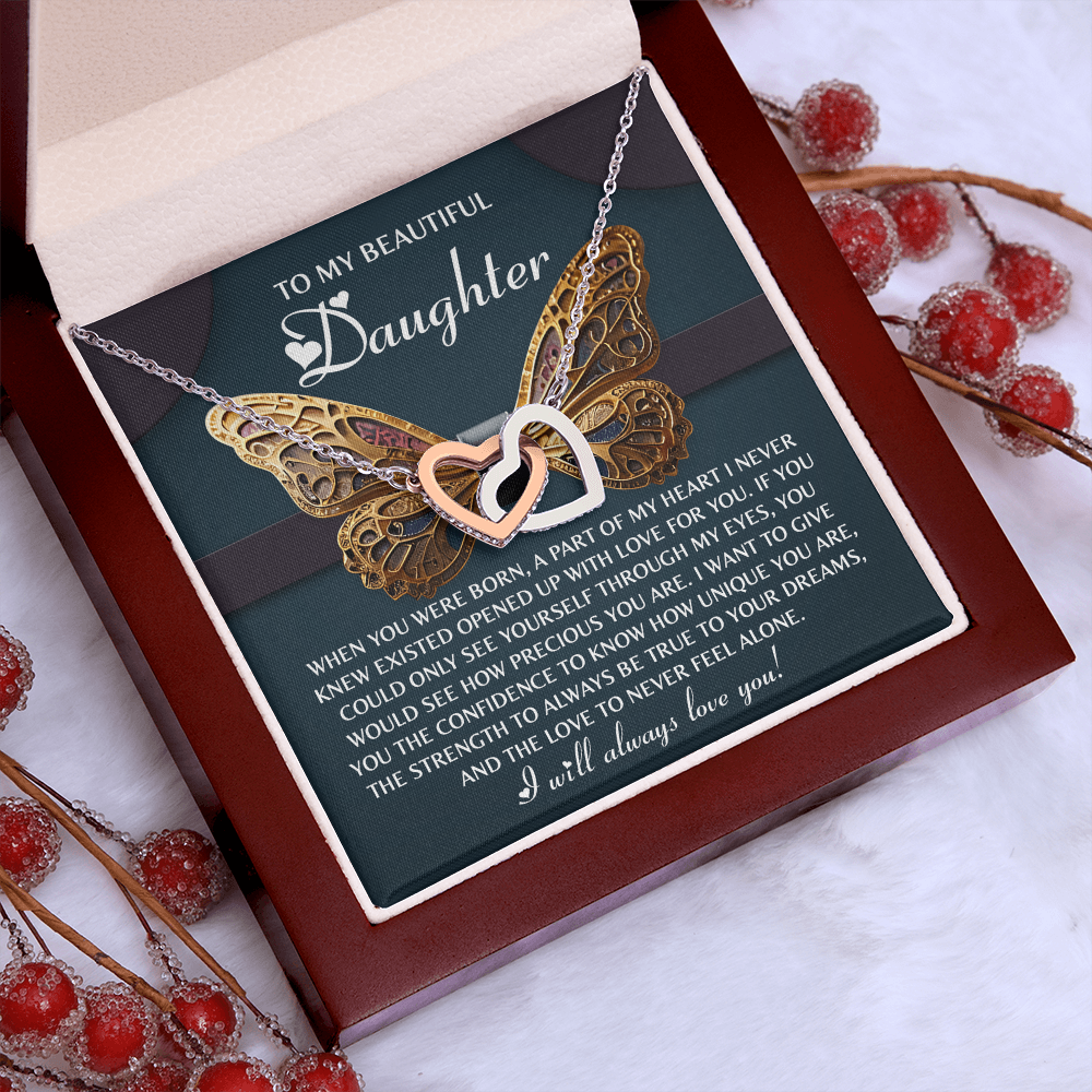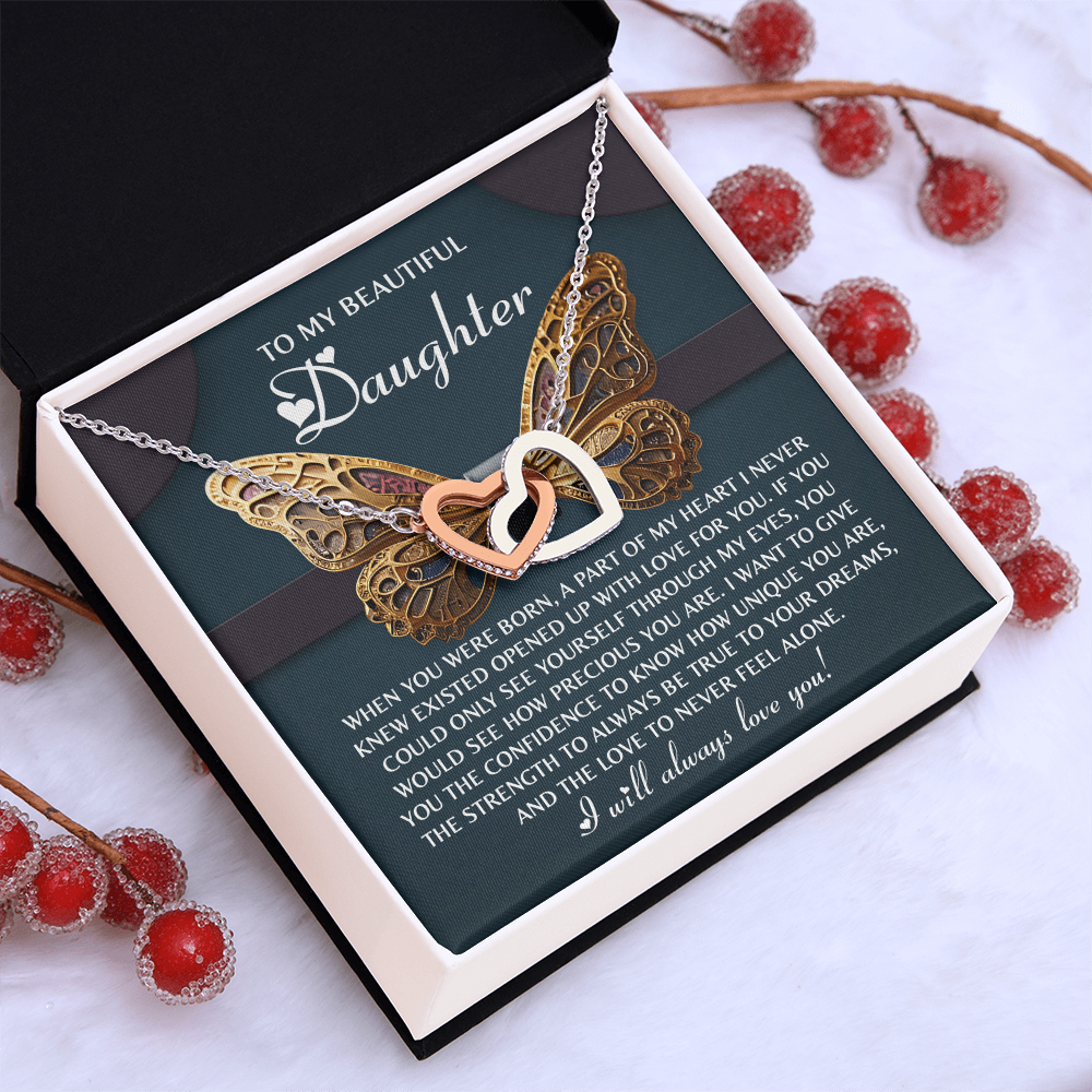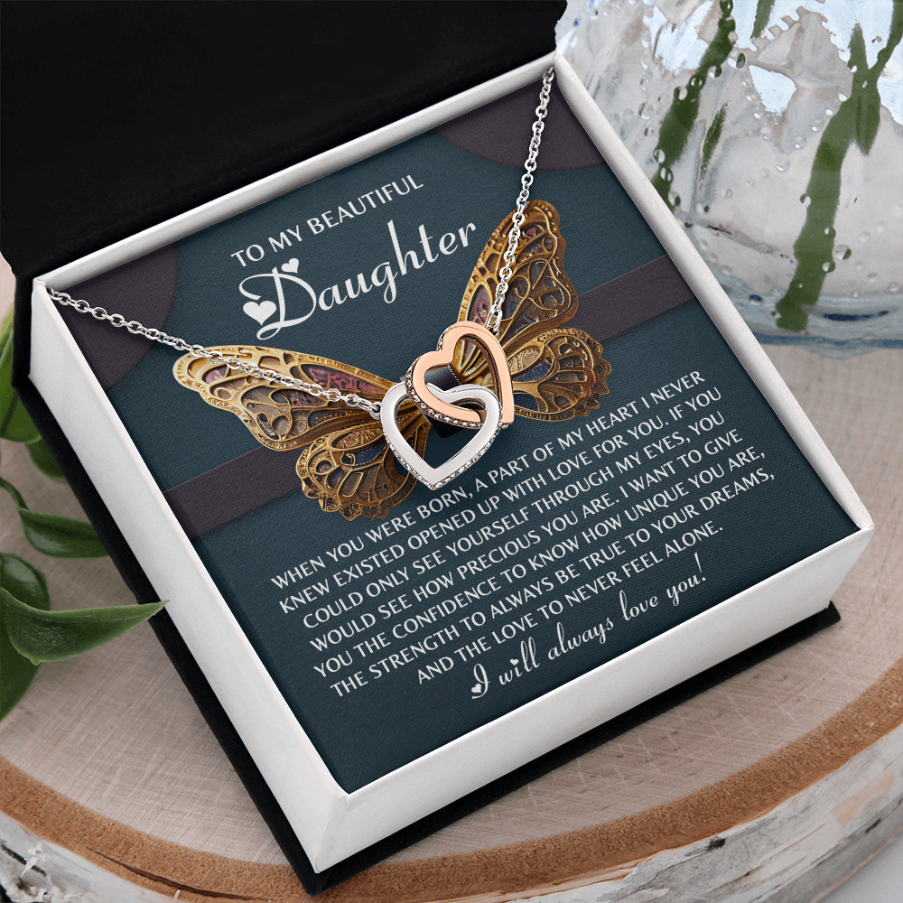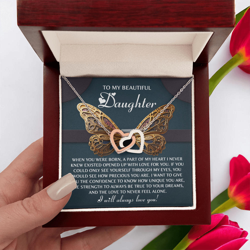 My Baeautiful Daughter - A Part Of My Heart I Never Knew Existed Opened Up With Love For You - How Precious You Are - I Will Always Love You - Interlocking Hearts Necklace IH, DAU0000099IH