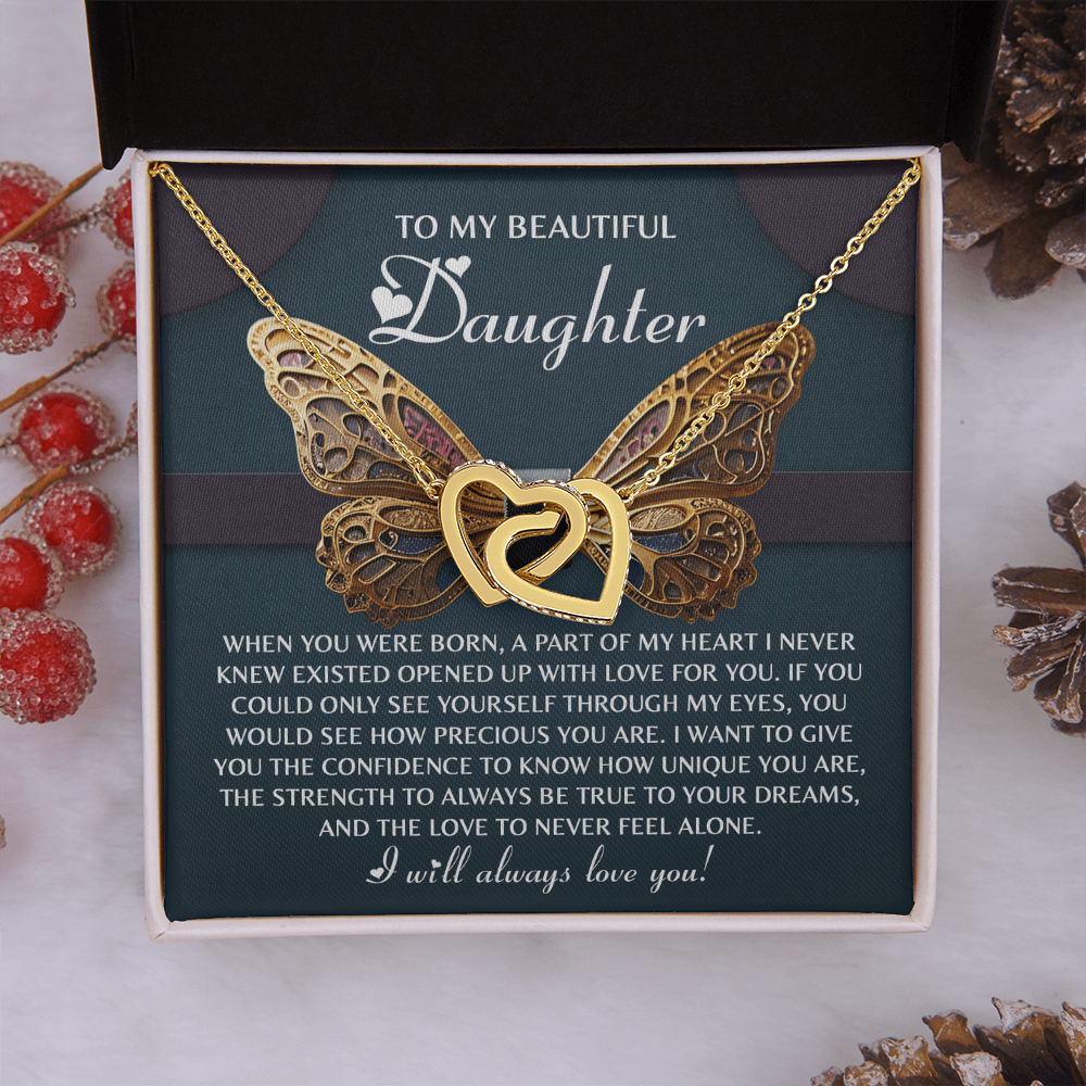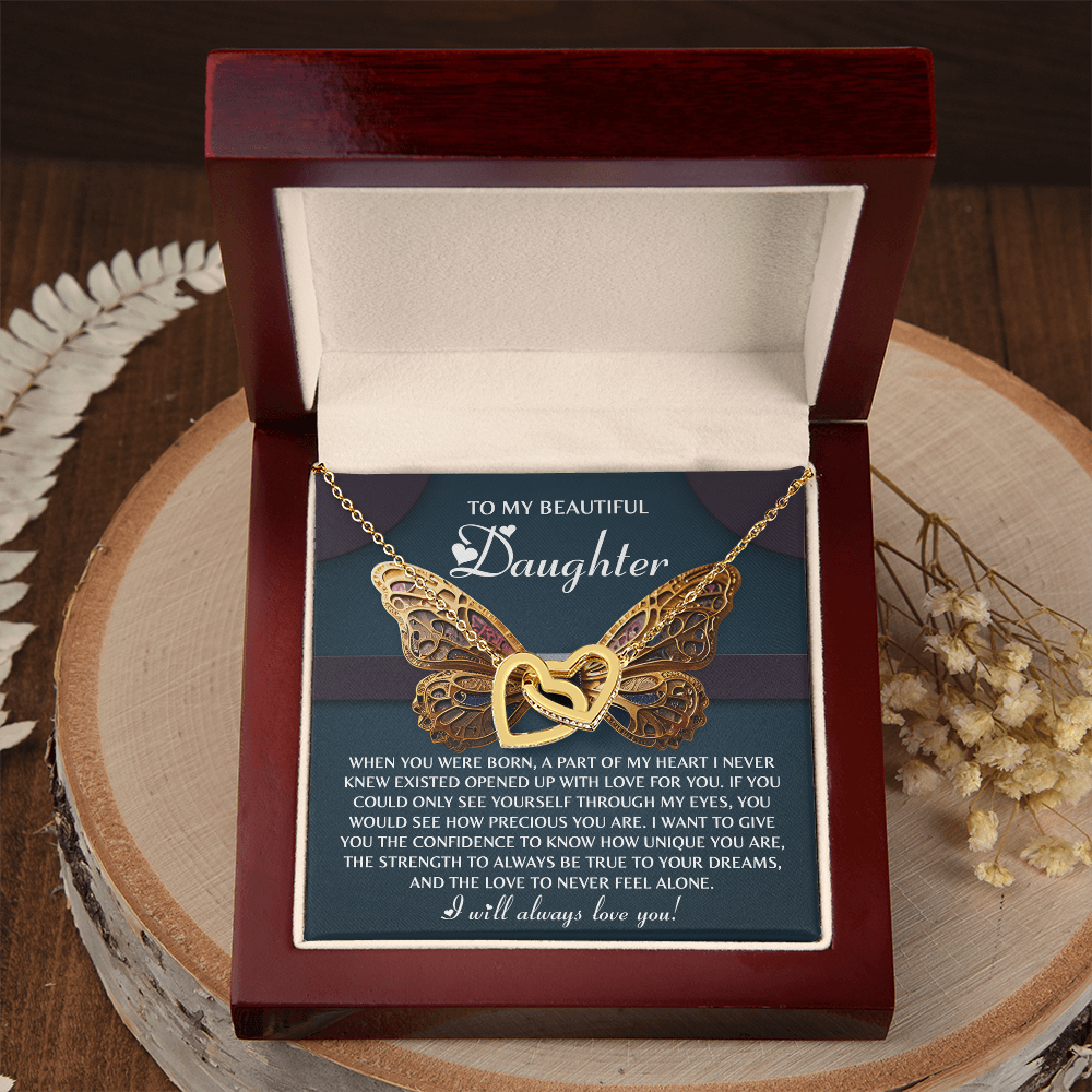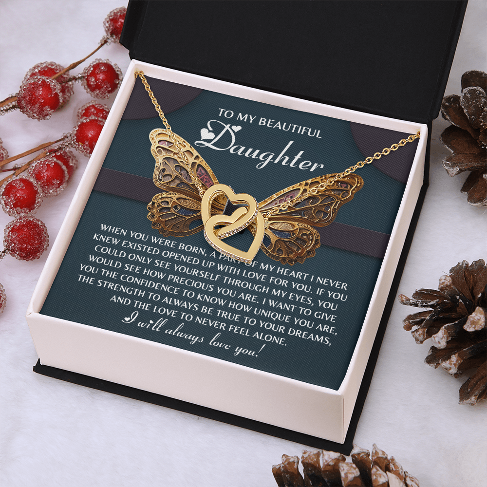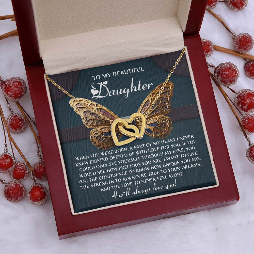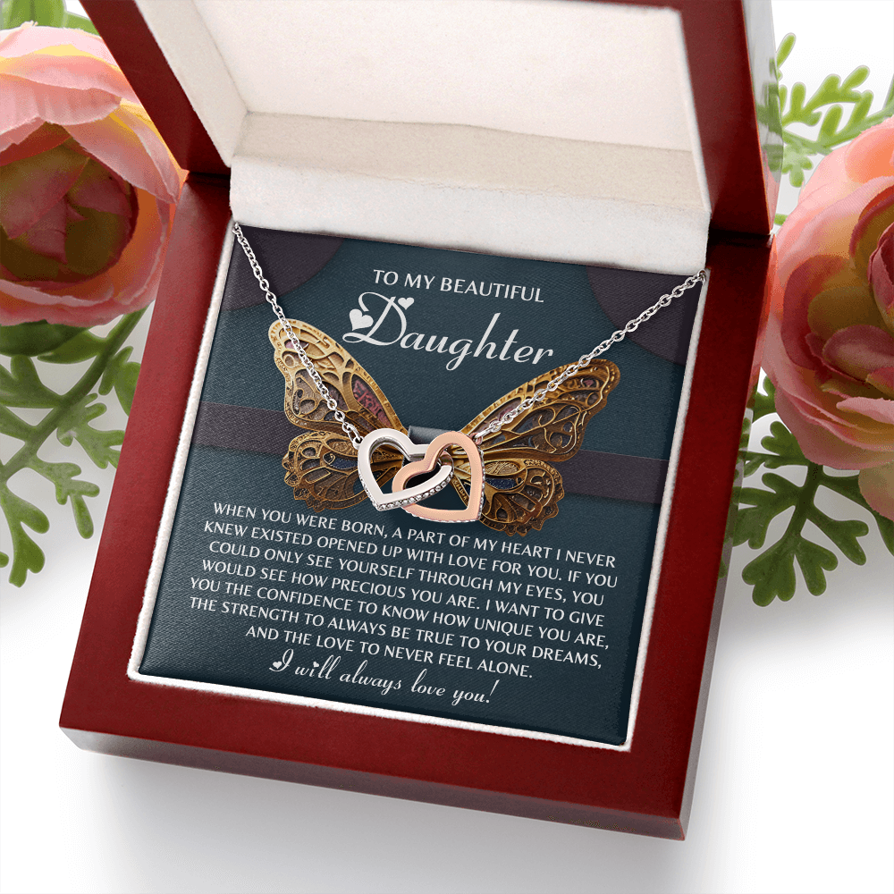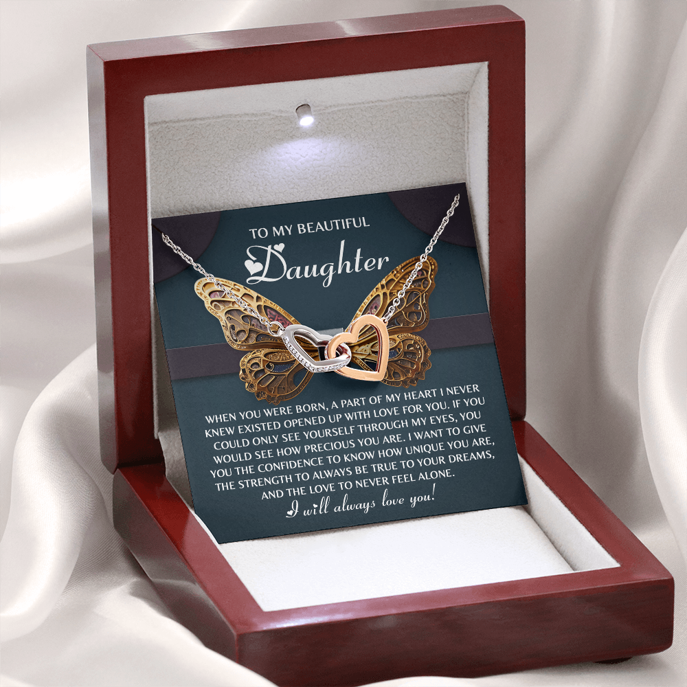 My Baeautiful Daughter - A Part Of My Heart I Never Knew Existed Opened Up With Love For You - How Precious You Are - I Will Always Love You - Interlocking Hearts Necklace IH, DAU0000099IH