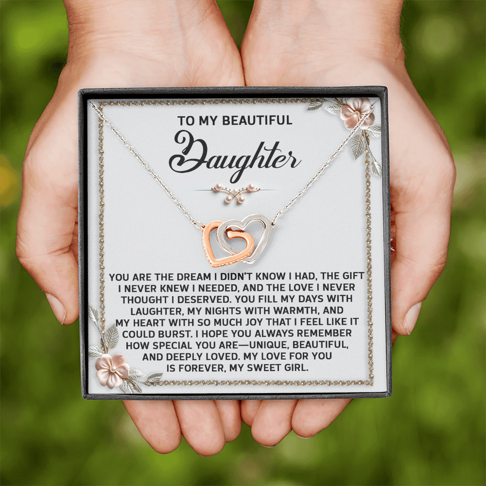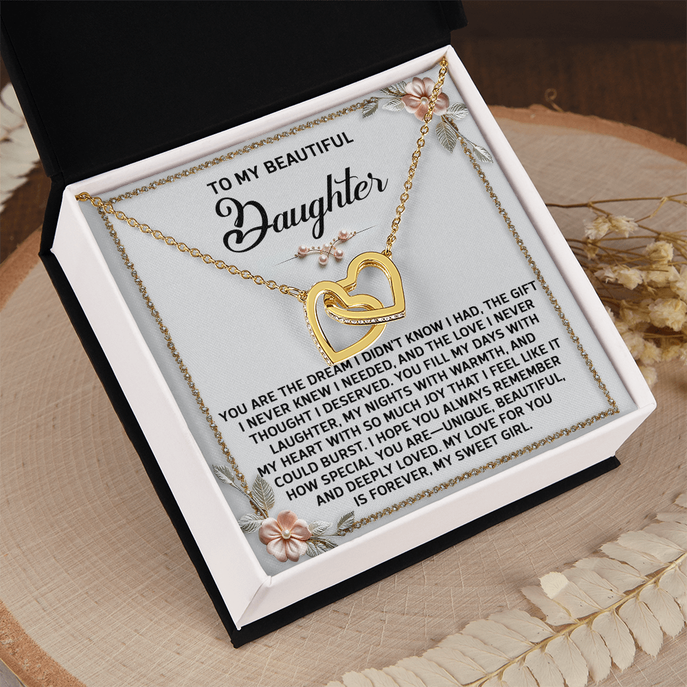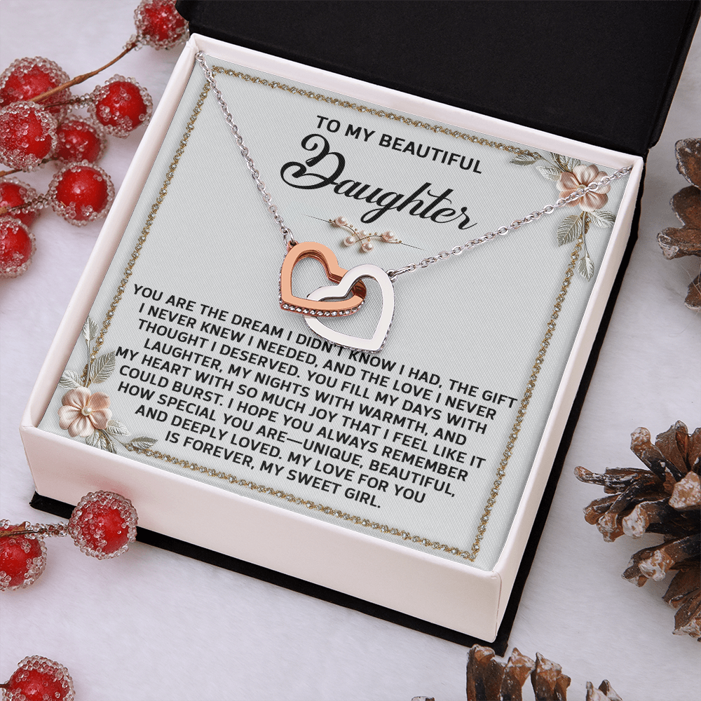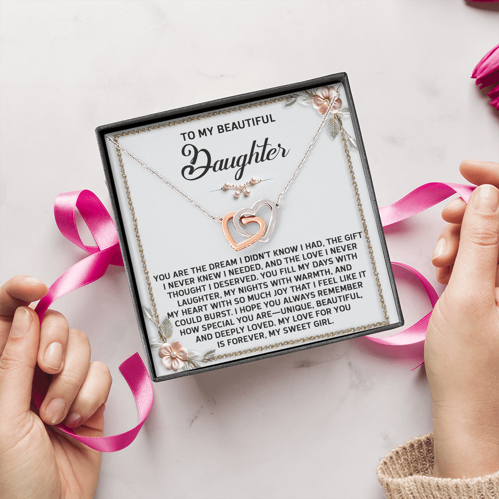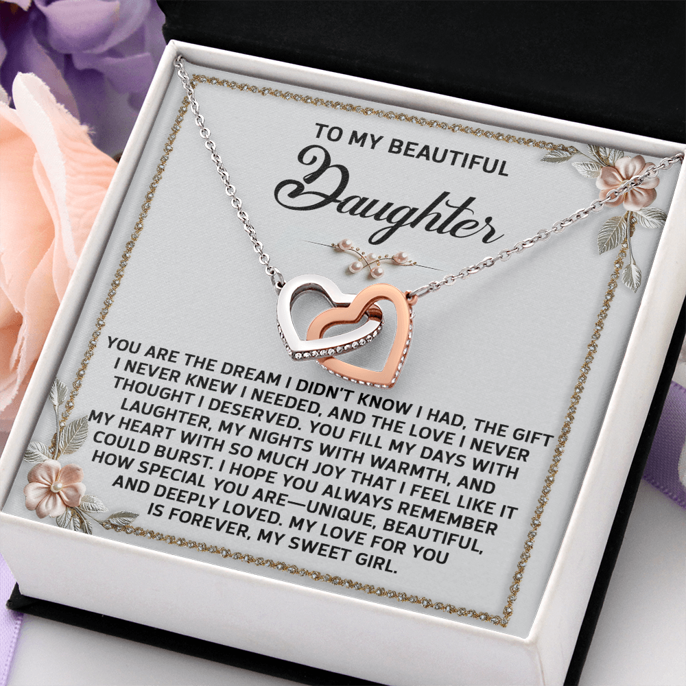 My Beautiful Daughter - Dream That I Didn't Know I Had - Gift I Never Knew I Needed - Love I Never Thought I Deserved - Always Remember How Special You Are - My Love For You Is Forever My Sweet Girl - Interlocking Hearts Necklace IH, DAU0000097IH
