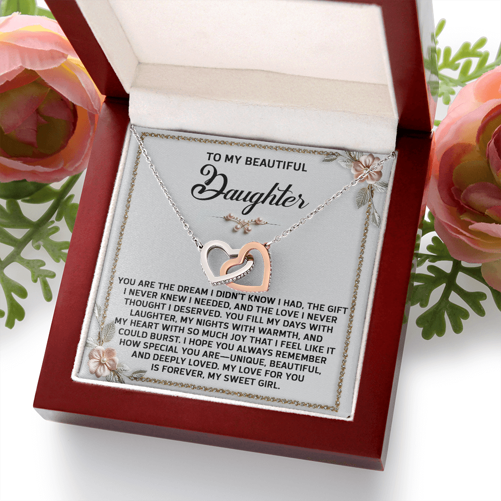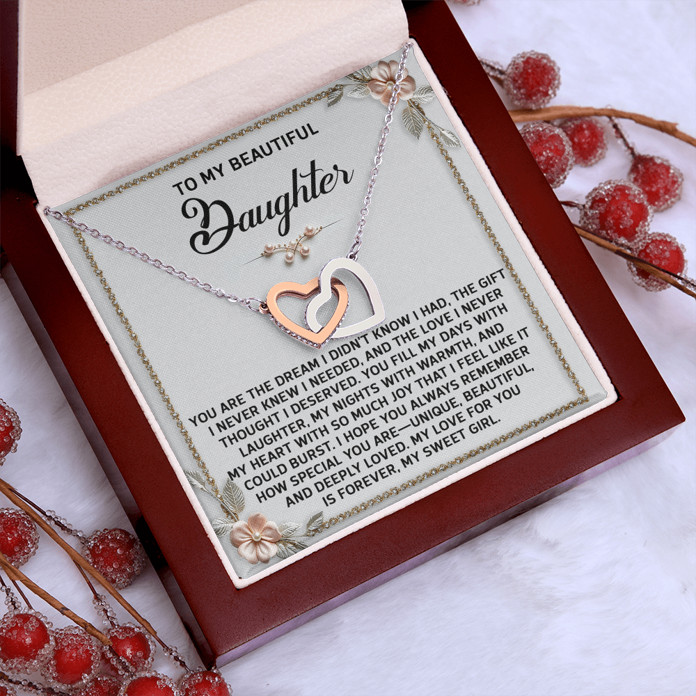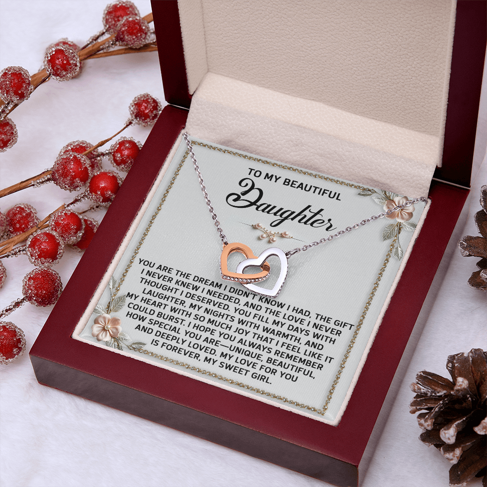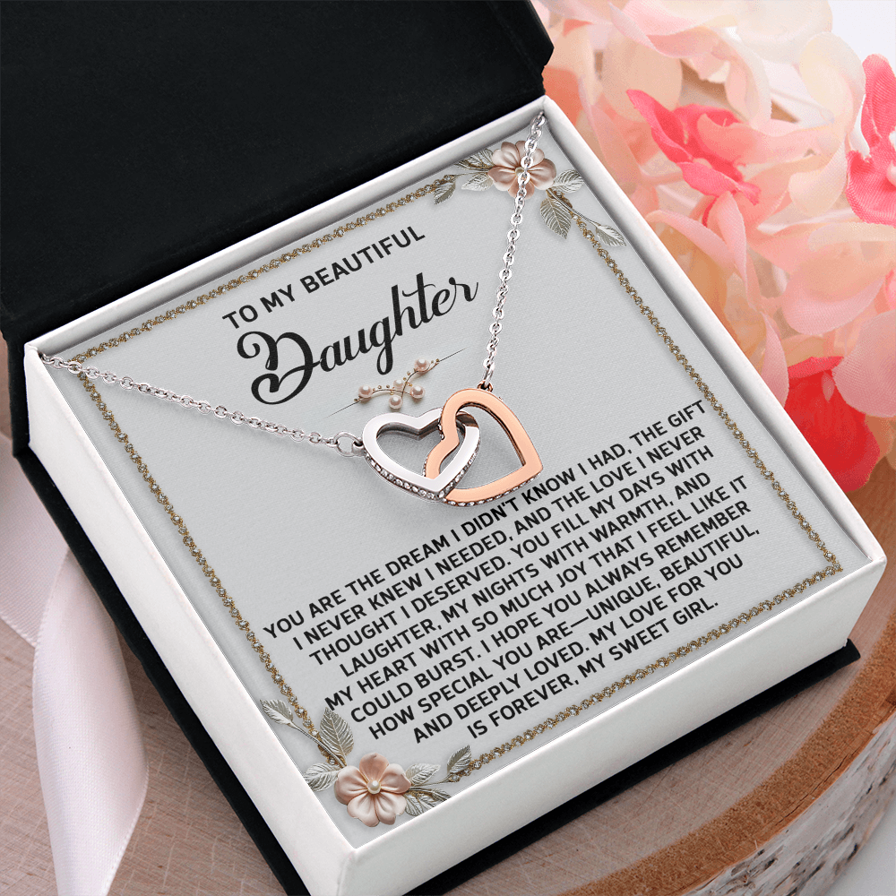 My Beautiful Daughter - Dream That I Didn't Know I Had - Gift I Never Knew I Needed - Love I Never Thought I Deserved - Always Remember How Special You Are - My Love For You Is Forever My Sweet Girl - Interlocking Hearts Necklace IH, DAU0000097IH