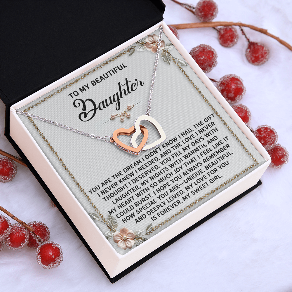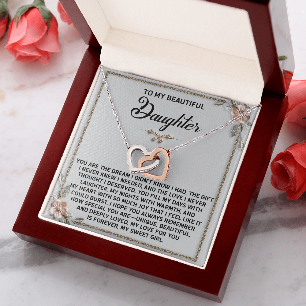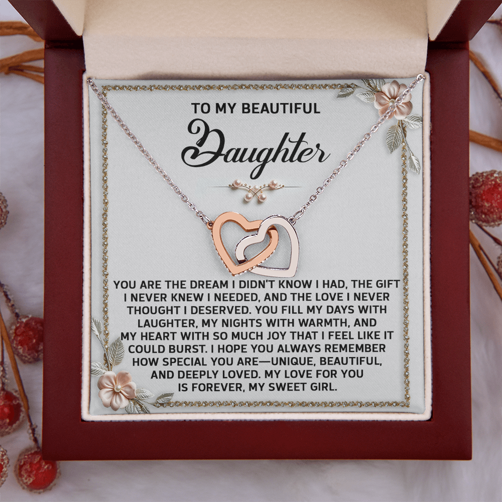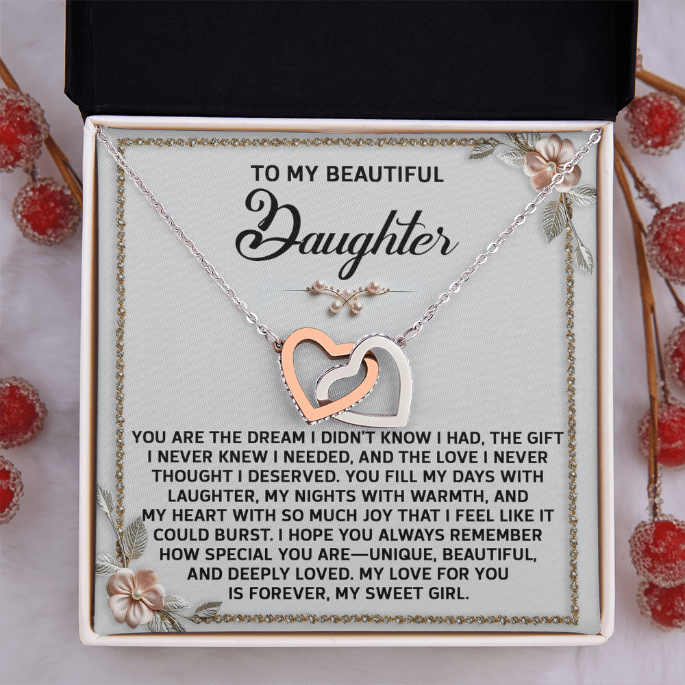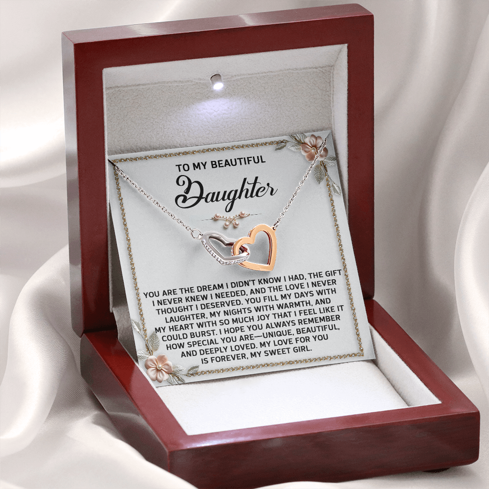 My Beautiful Daughter - Dream That I Didn't Know I Had - Gift I Never Knew I Needed - Love I Never Thought I Deserved - Always Remember How Special You Are - My Love For You Is Forever My Sweet Girl - Interlocking Hearts Necklace IH, DAU0000097IH