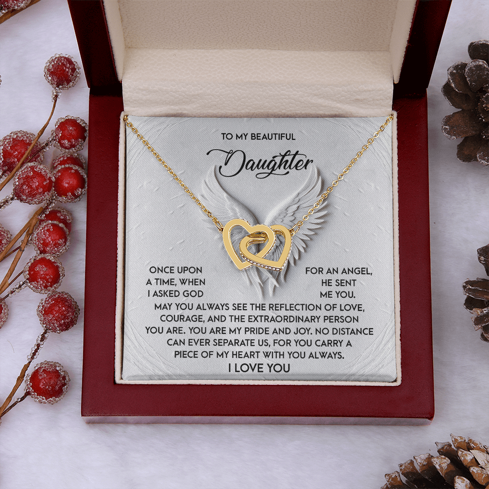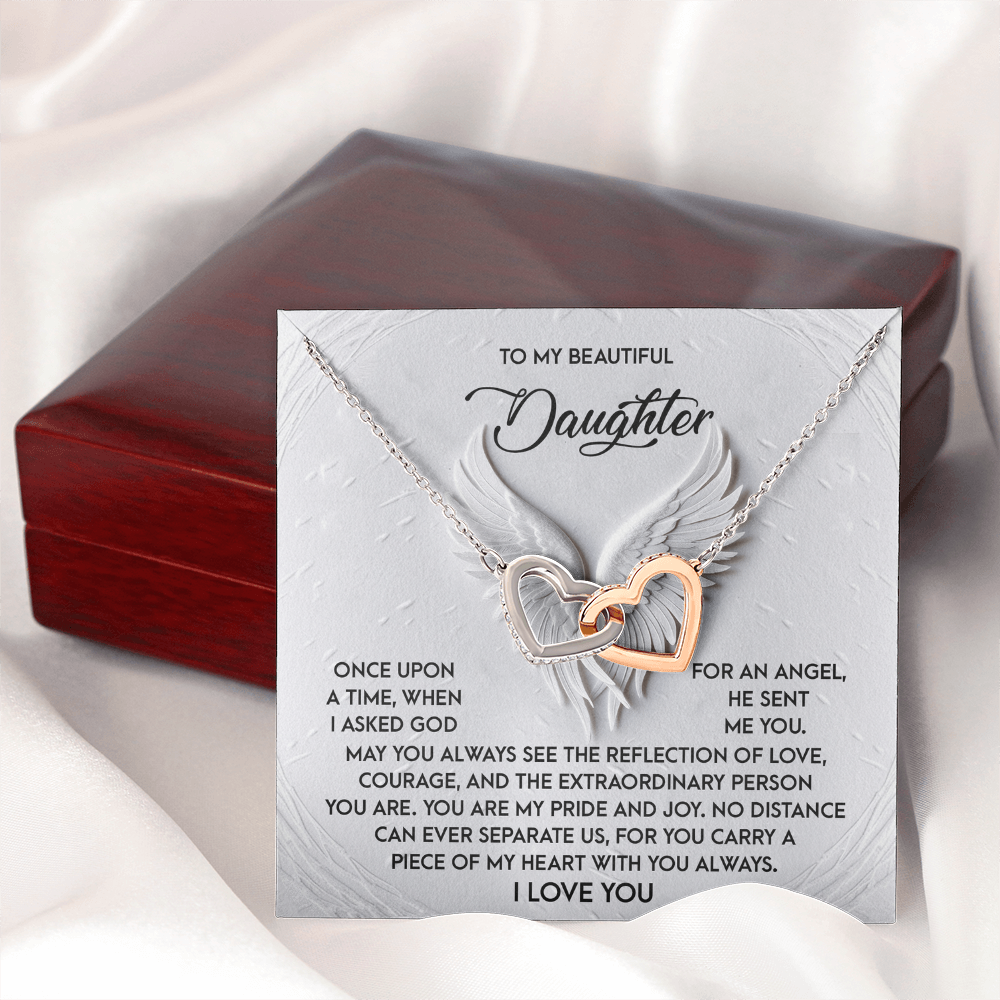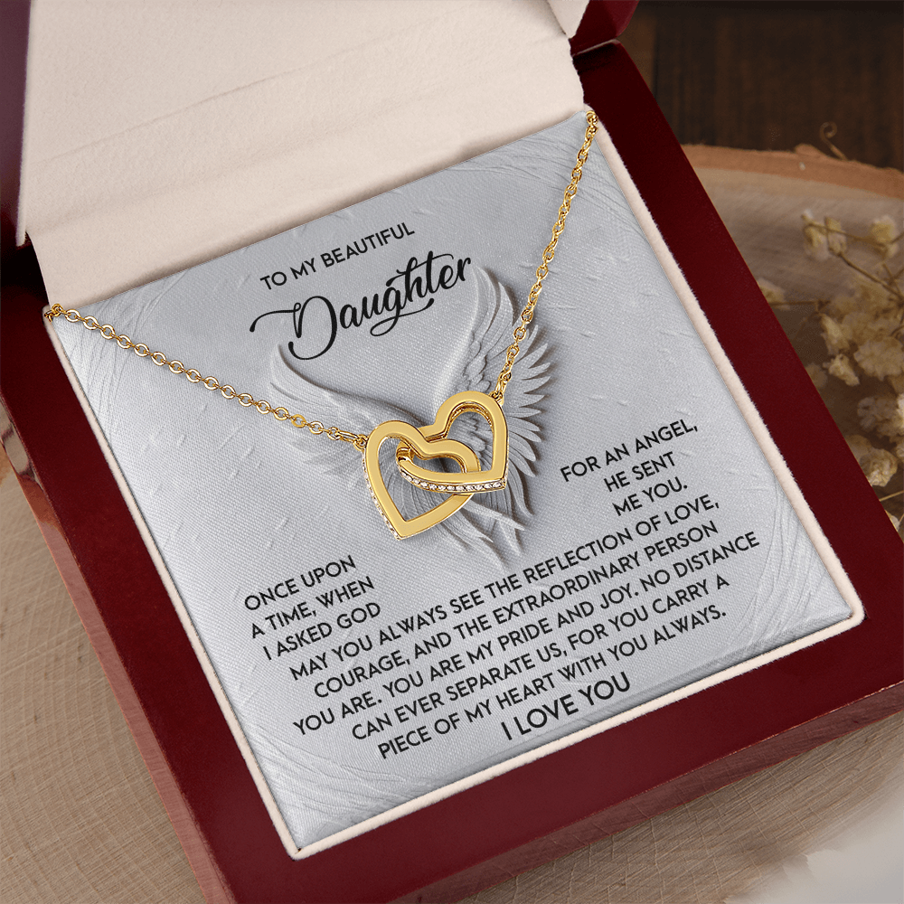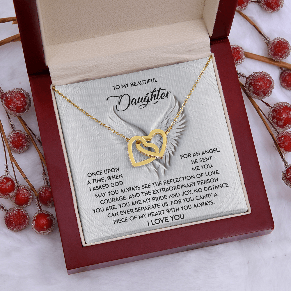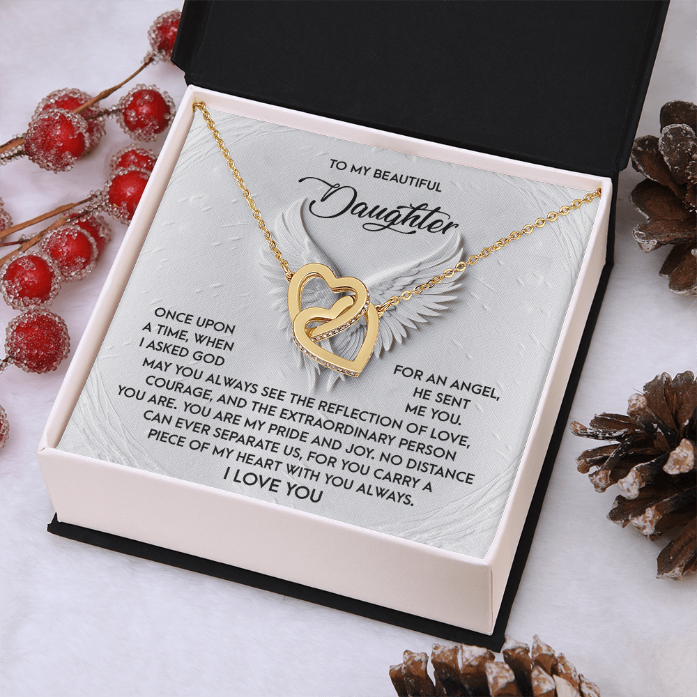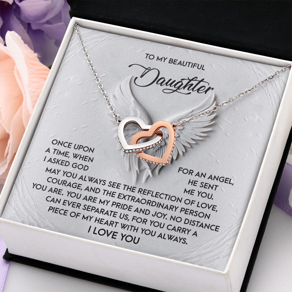 My Beautiful Daughter - I Asked God For An Angel - He Sent Me You - Always See The Reflection Of Love - Carry A Piece Of My Heart With You Always - I Love You - Interlocking Hearts Necklace IH, DAU0000108IH
