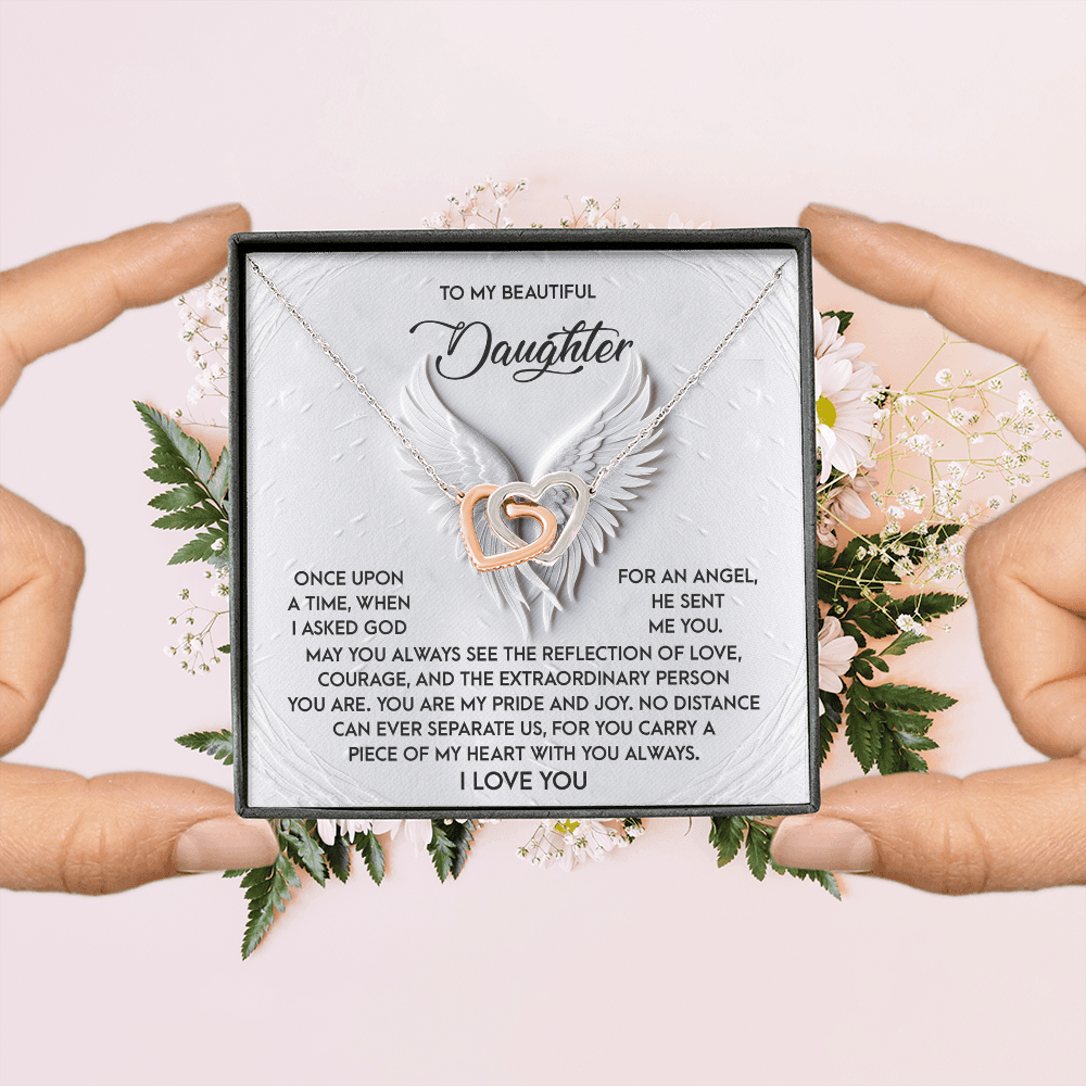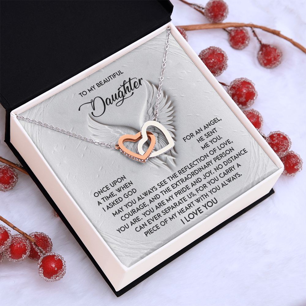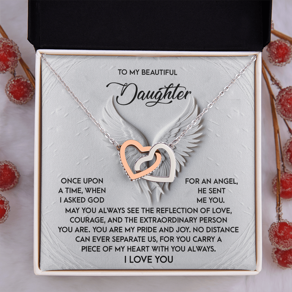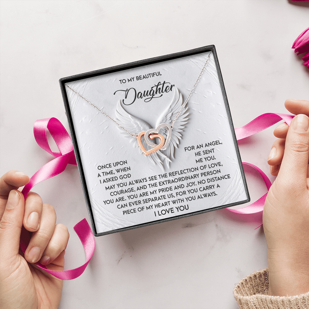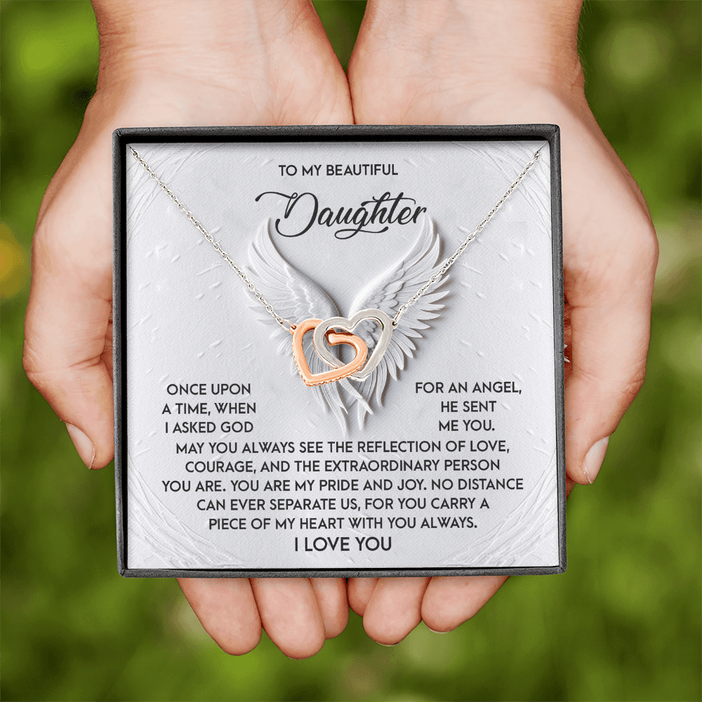 My Beautiful Daughter - I Asked God For An Angel - He Sent Me You - Always See The Reflection Of Love - Carry A Piece Of My Heart With You Always - I Love You - Interlocking Hearts Necklace IH, DAU0000108IH