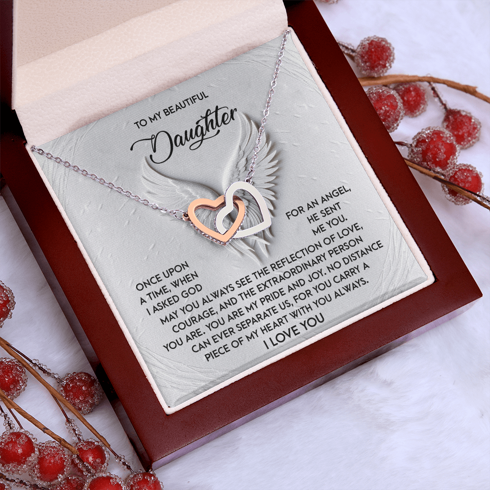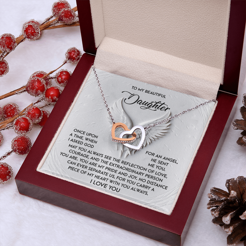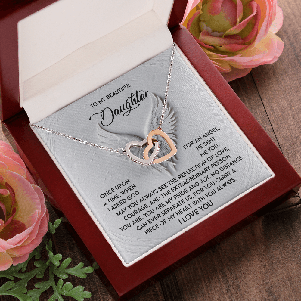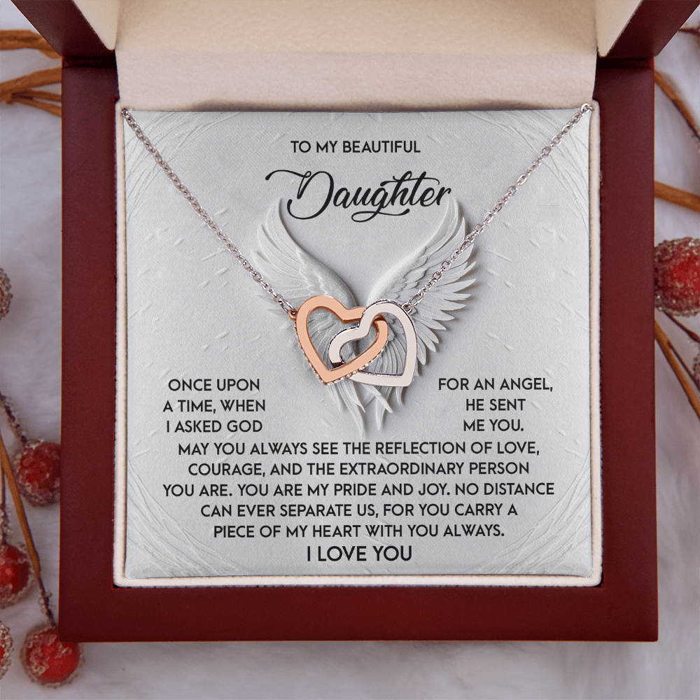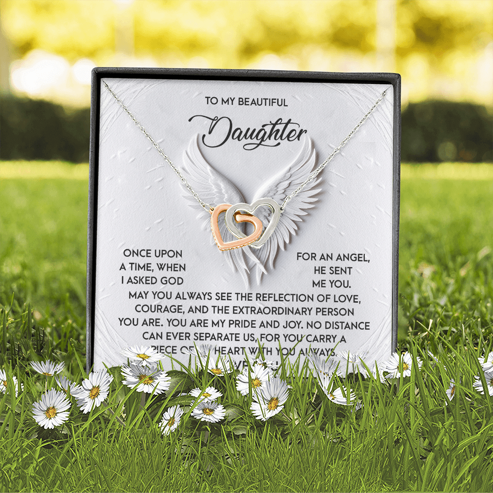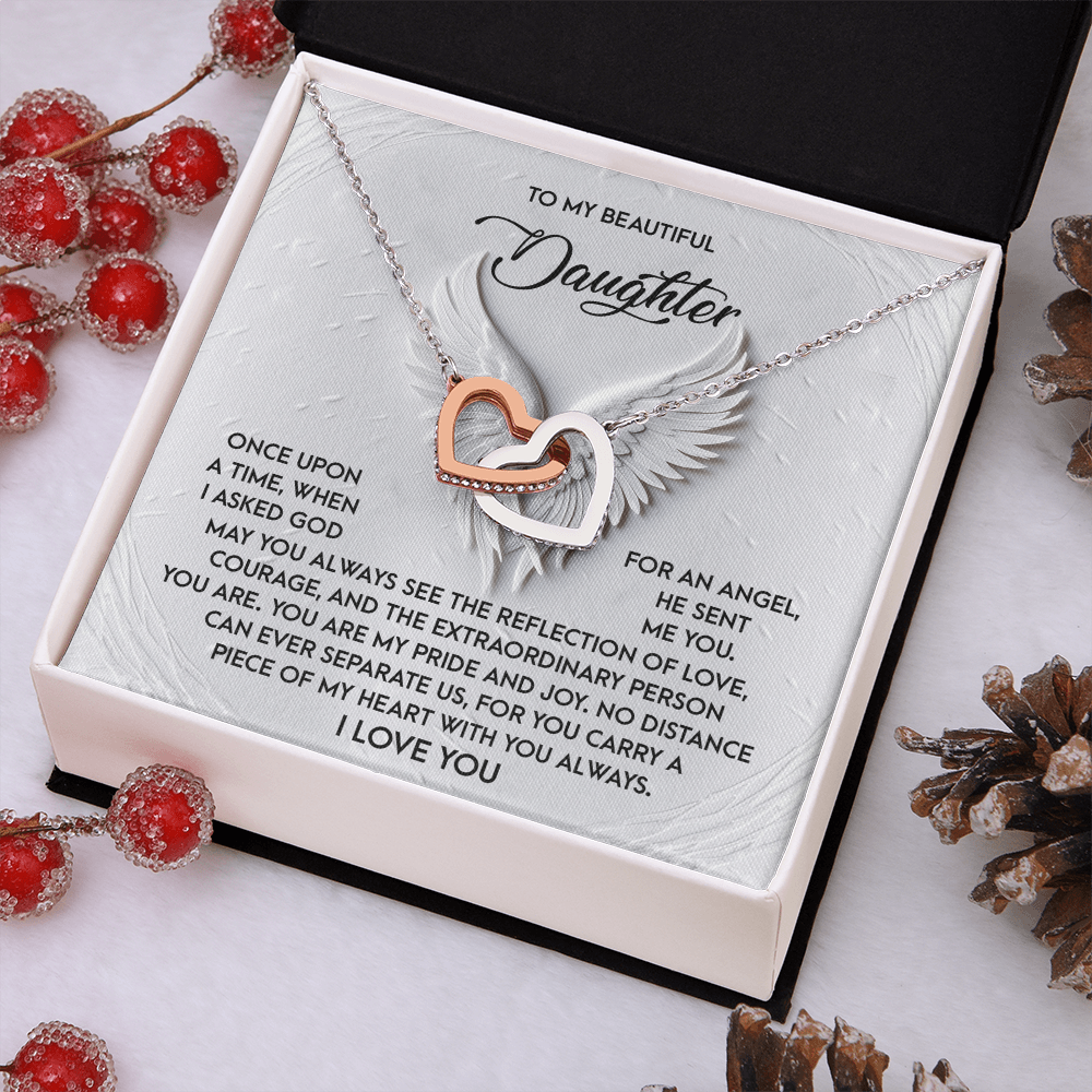 My Beautiful Daughter - I Asked God For An Angel - He Sent Me You - Always See The Reflection Of Love - Carry A Piece Of My Heart With You Always - I Love You - Interlocking Hearts Necklace IH, DAU0000108IH