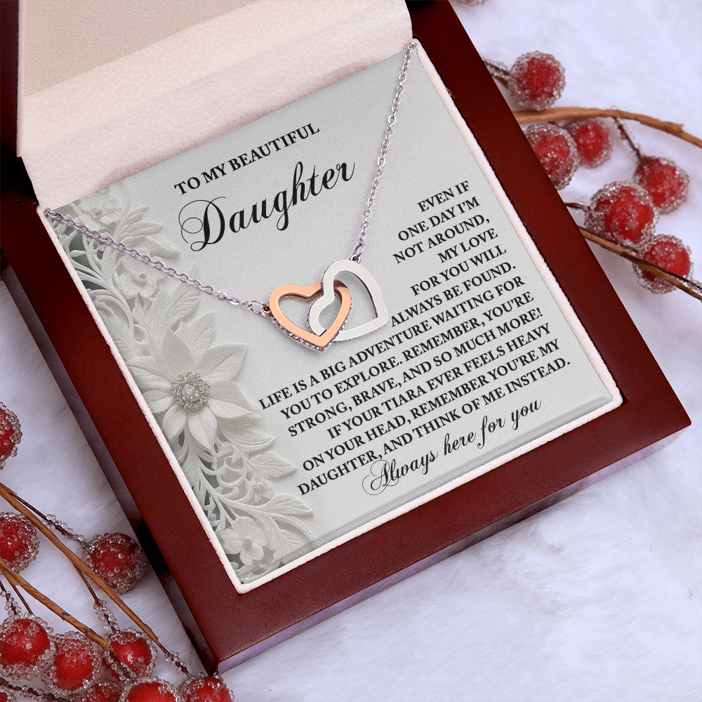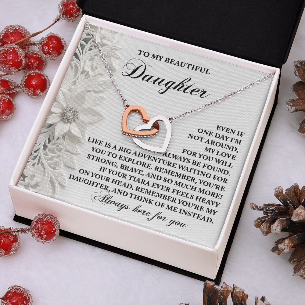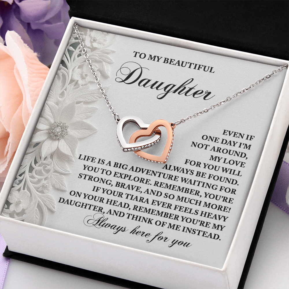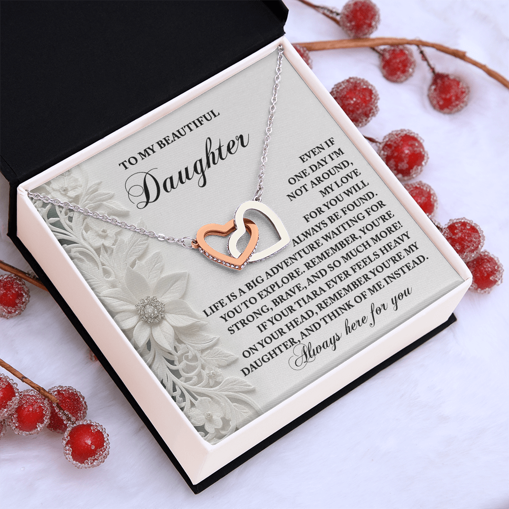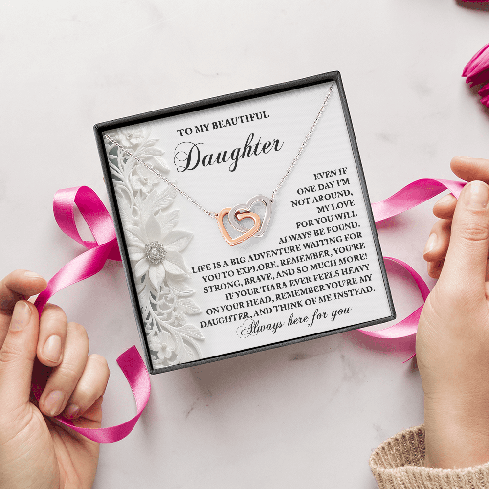 My Beautiful Daughter - My Love For You Will Always Be Found - Life Is A Big Adventure - Remember You Are My Daughter - Always Here For You - Interlocking Hearts Necklace IH, DAU0000102IH