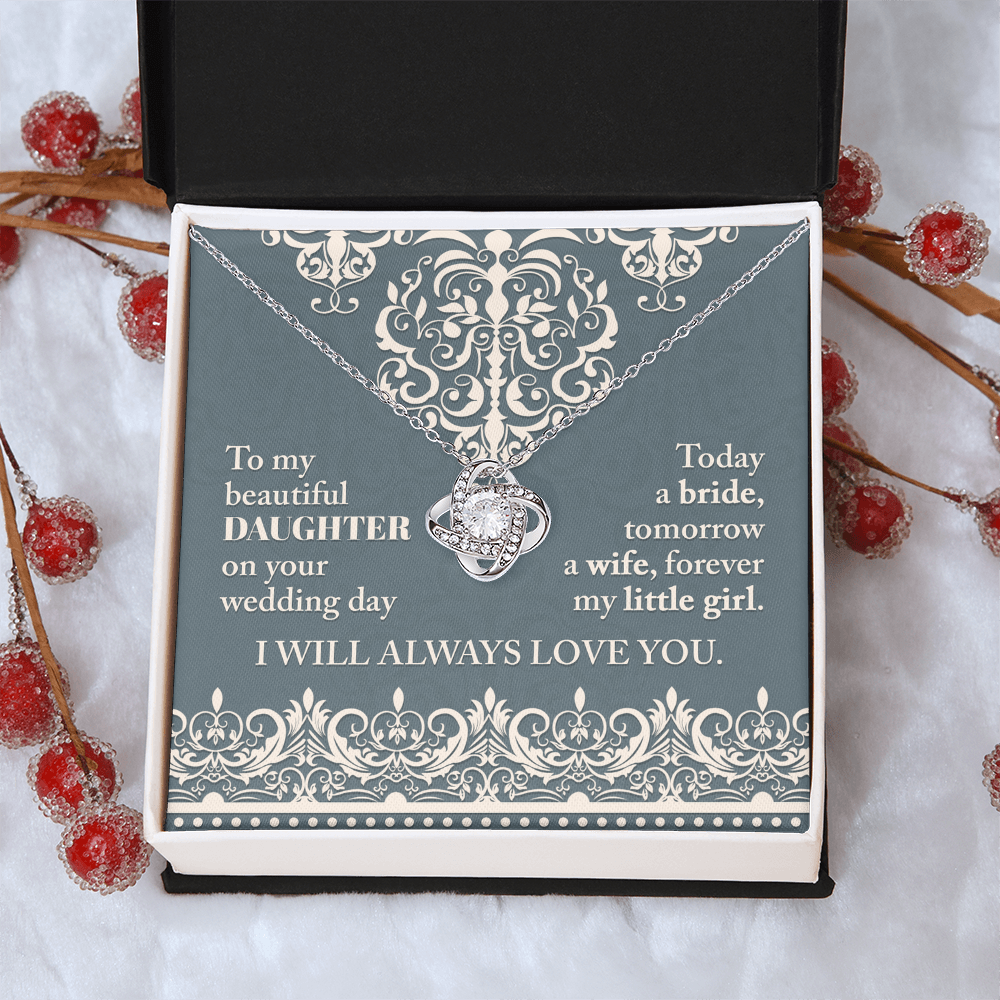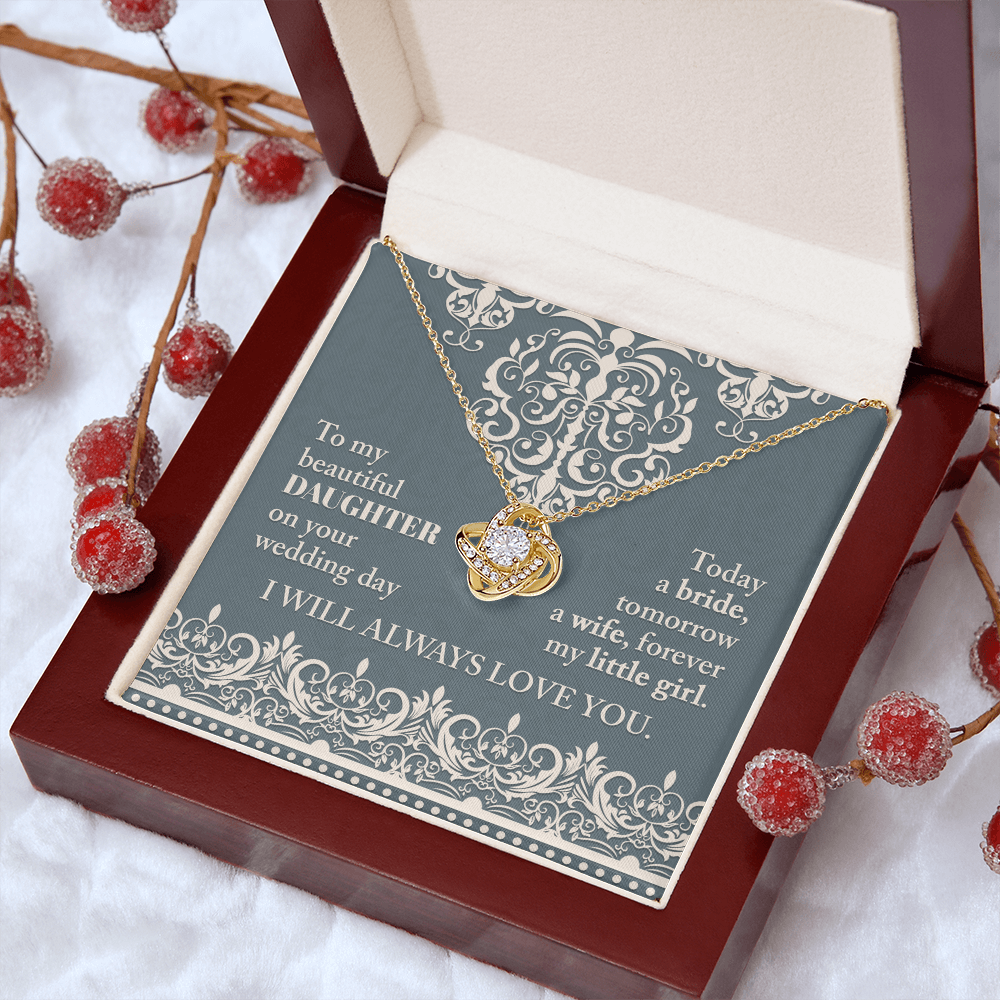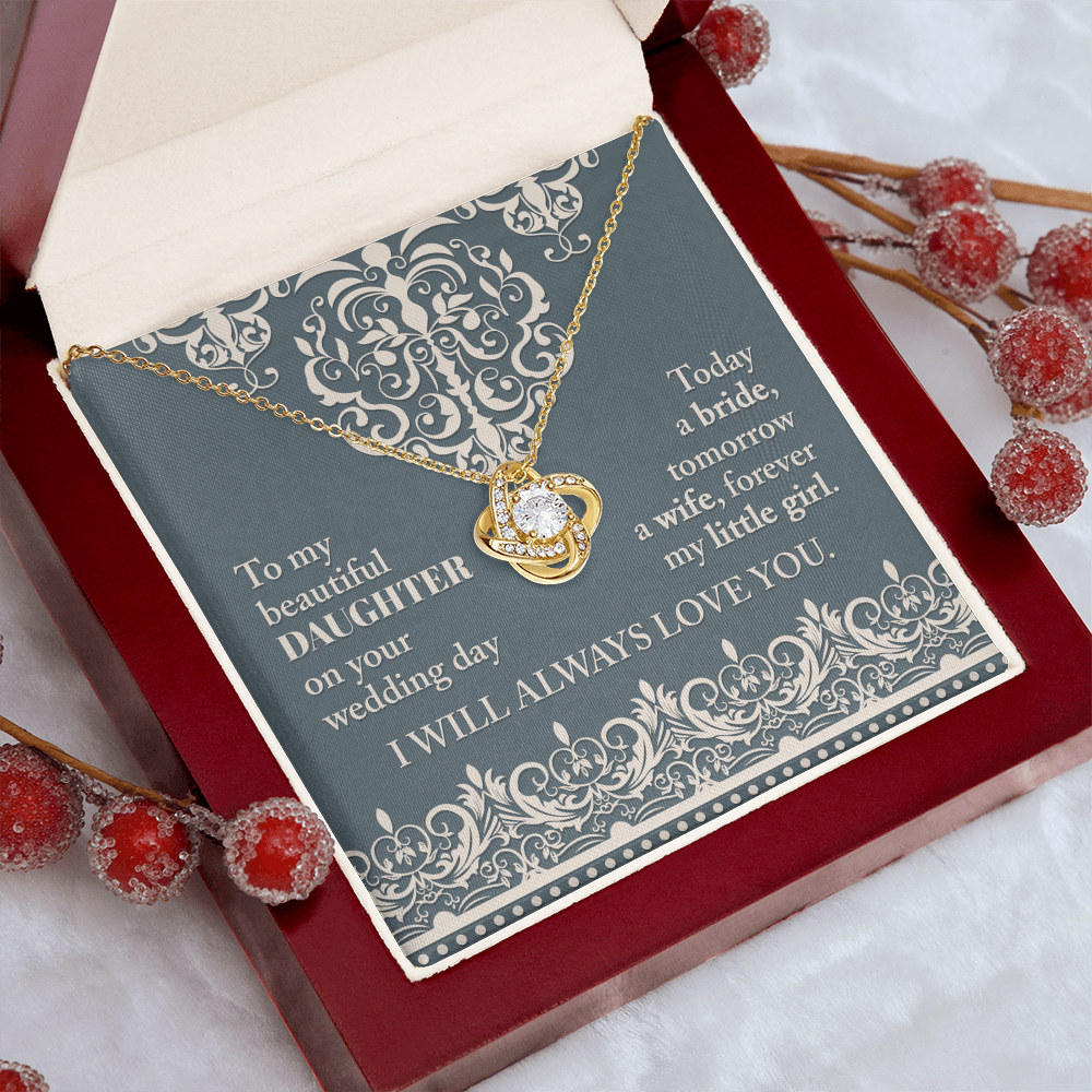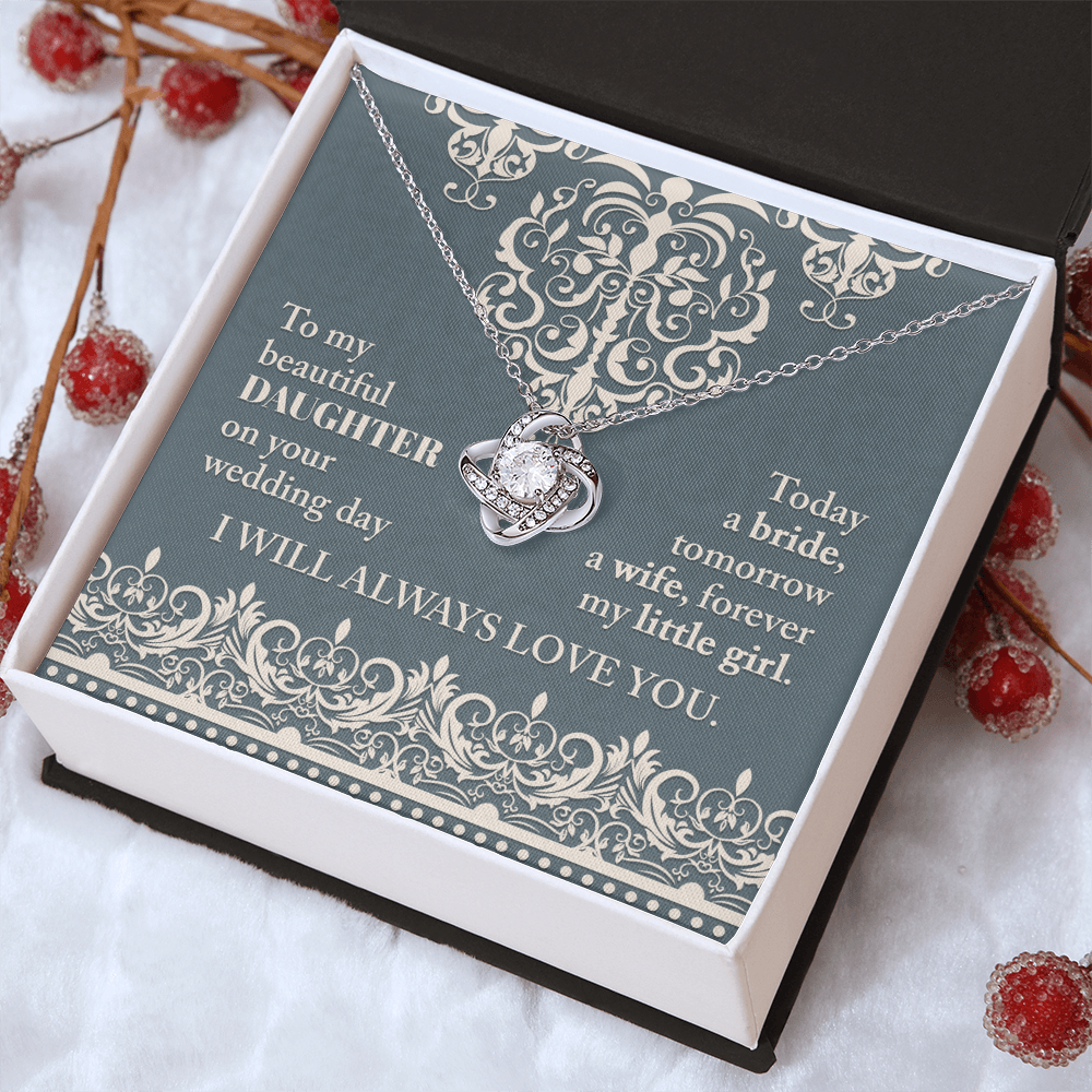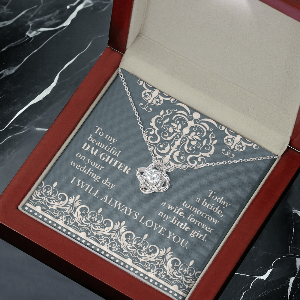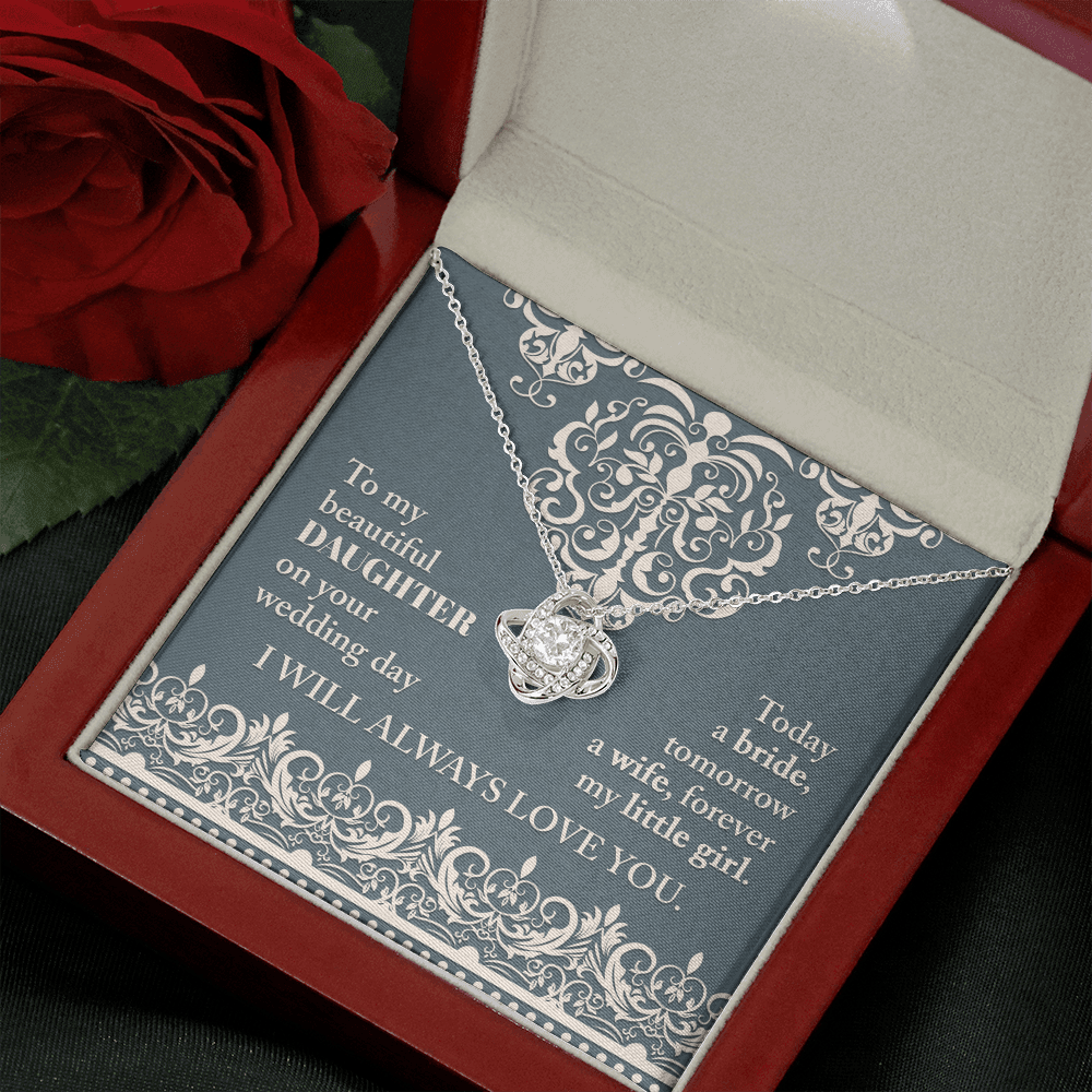 My Beautiful Daughter - On Your Wedding Day - Today A Bride, Tomorrow A Wife, Forever My Little Girl - I Will Always Love You - Love Knot Necklace LN, WED0000030LN