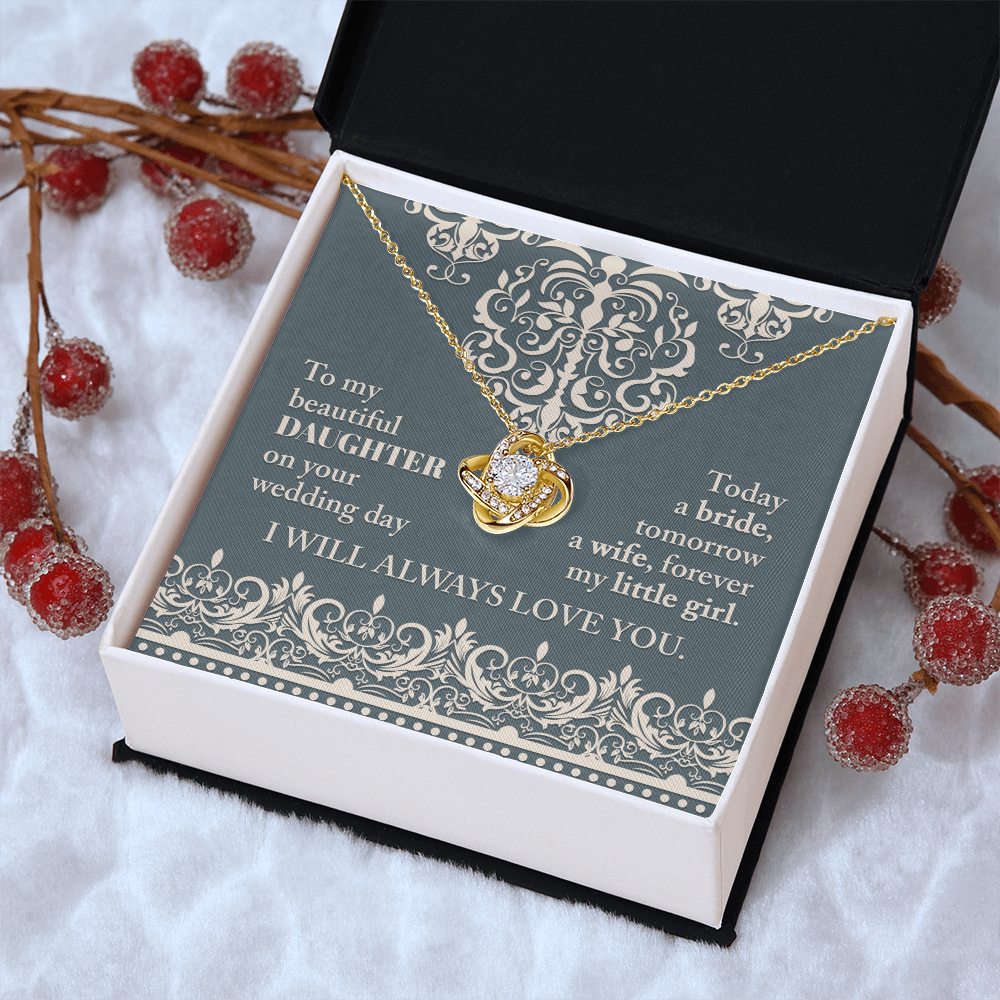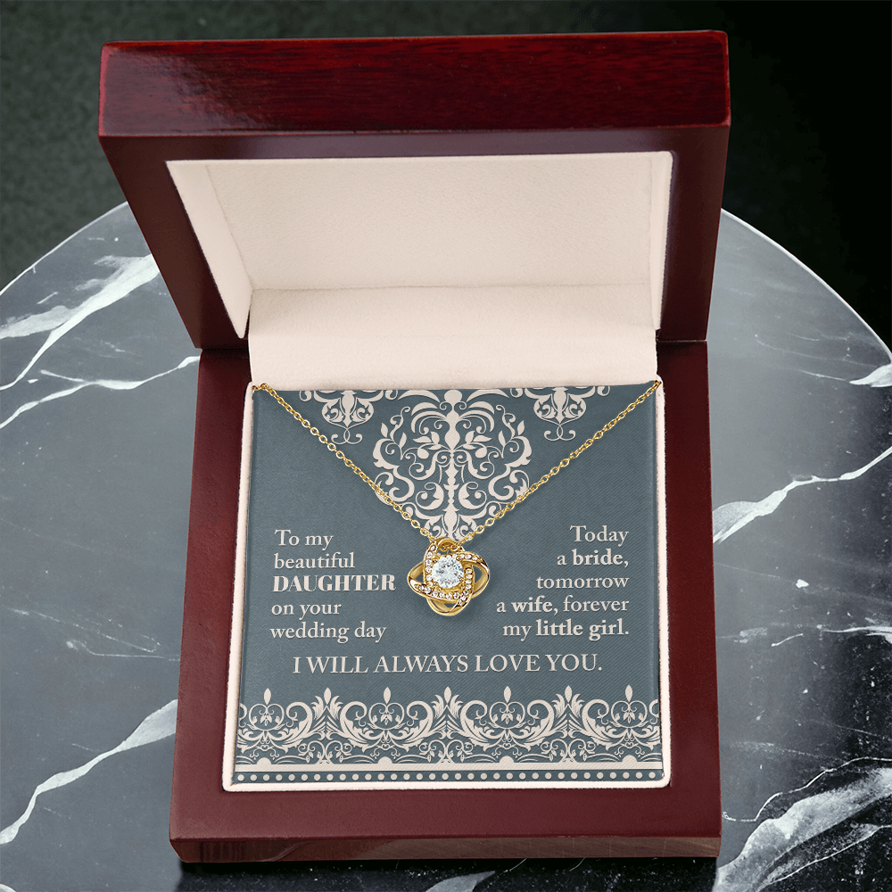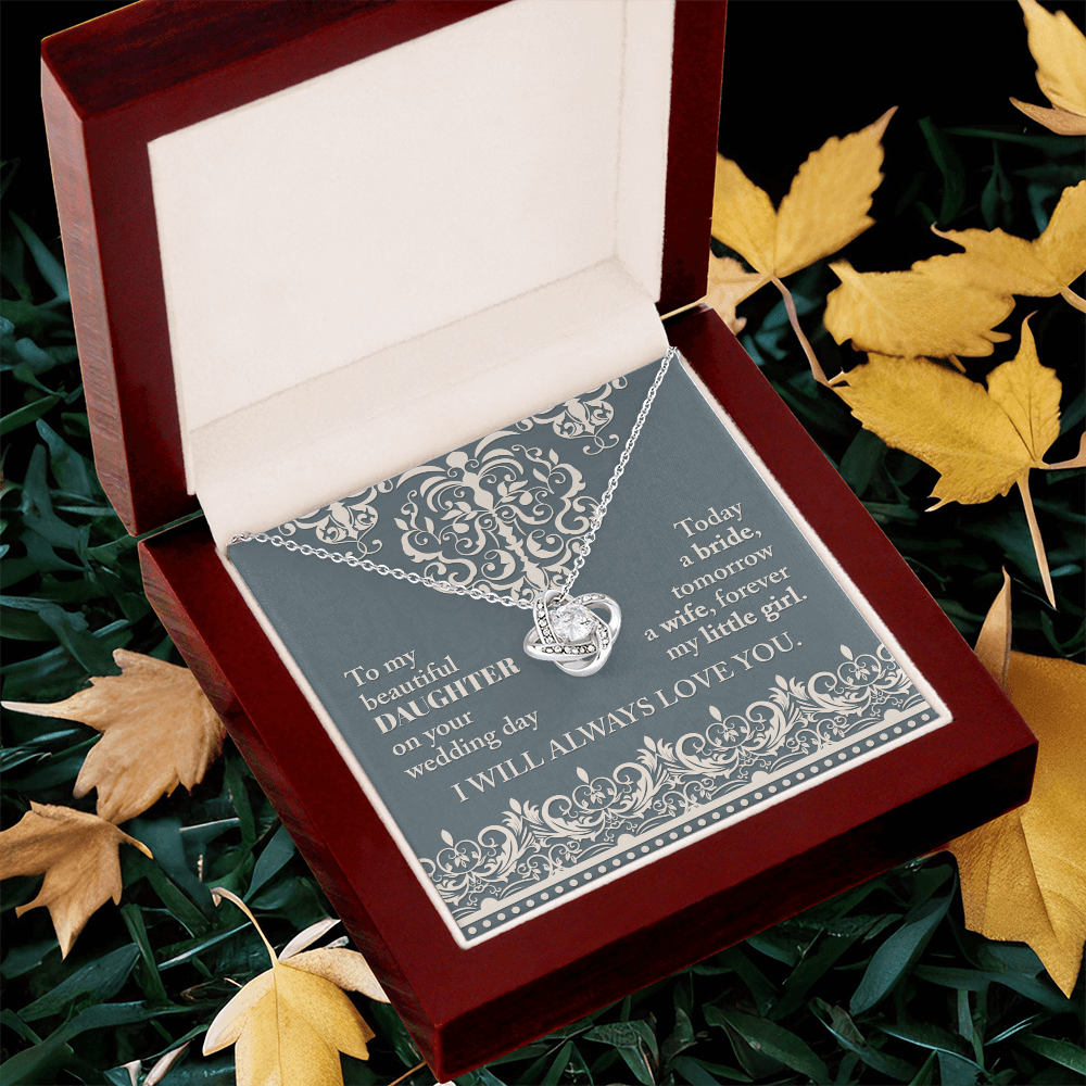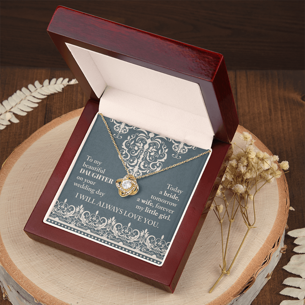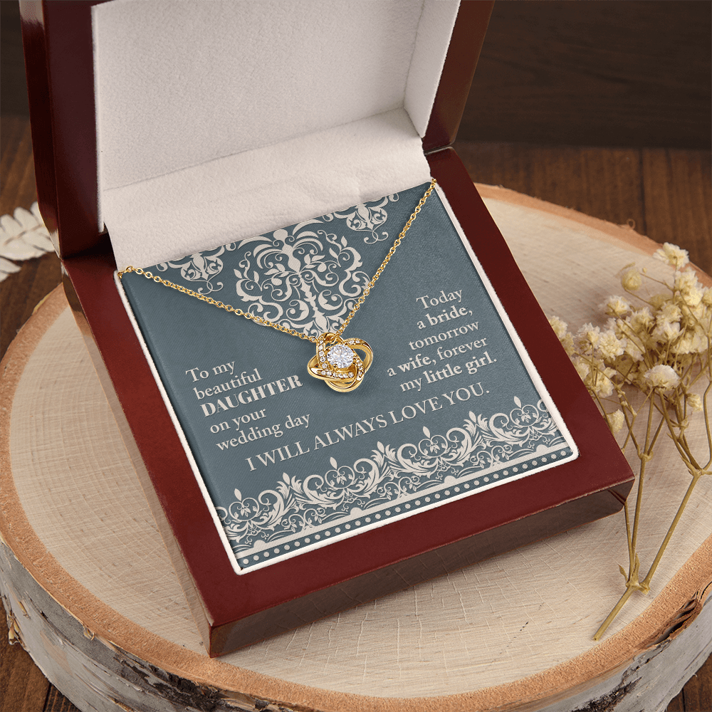 My Beautiful Daughter - On Your Wedding Day - Today A Bride, Tomorrow A Wife, Forever My Little Girl - I Will Always Love You - Love Knot Necklace LN, WED0000030LN