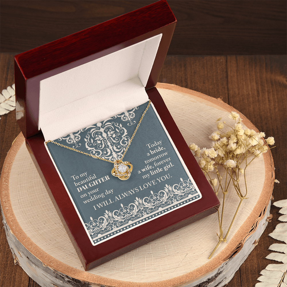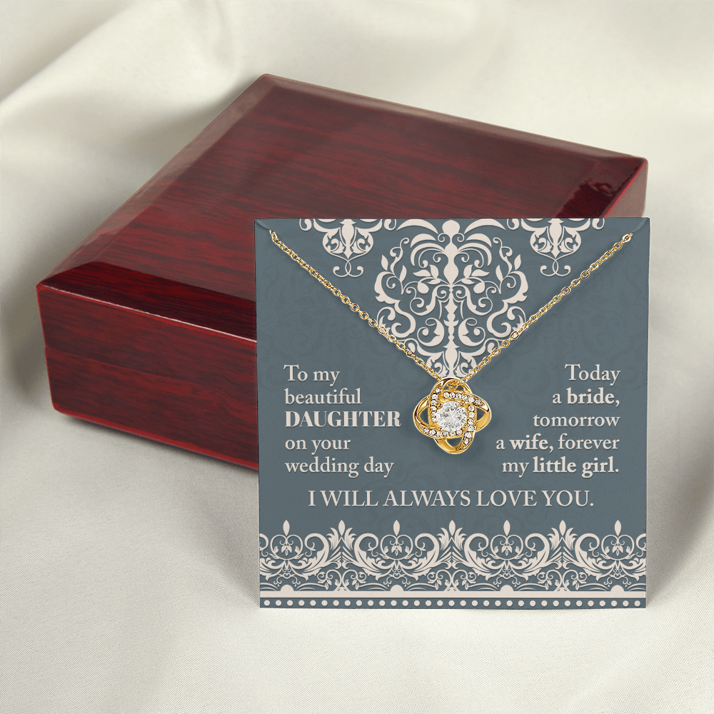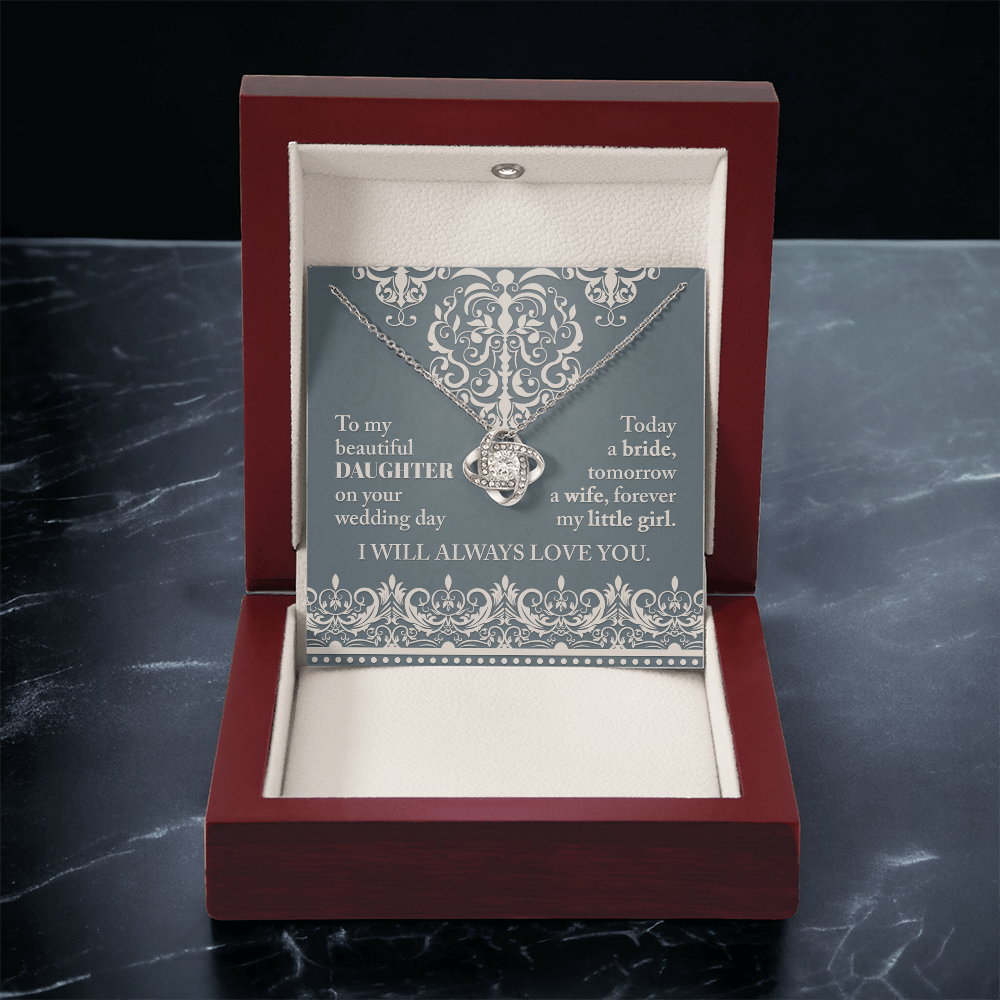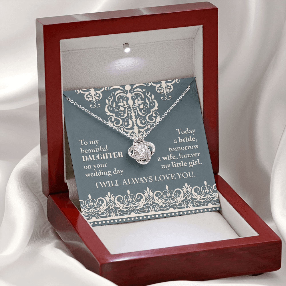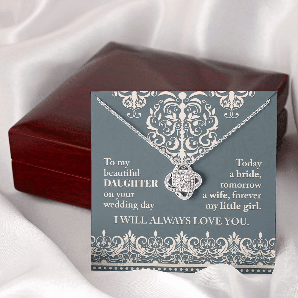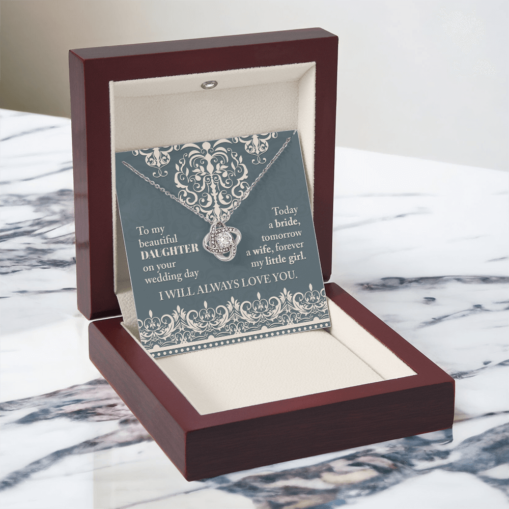 My Beautiful Daughter - On Your Wedding Day - Today A Bride, Tomorrow A Wife, Forever My Little Girl - I Will Always Love You - Love Knot Necklace LN, WED0000030LN