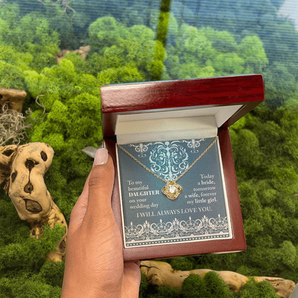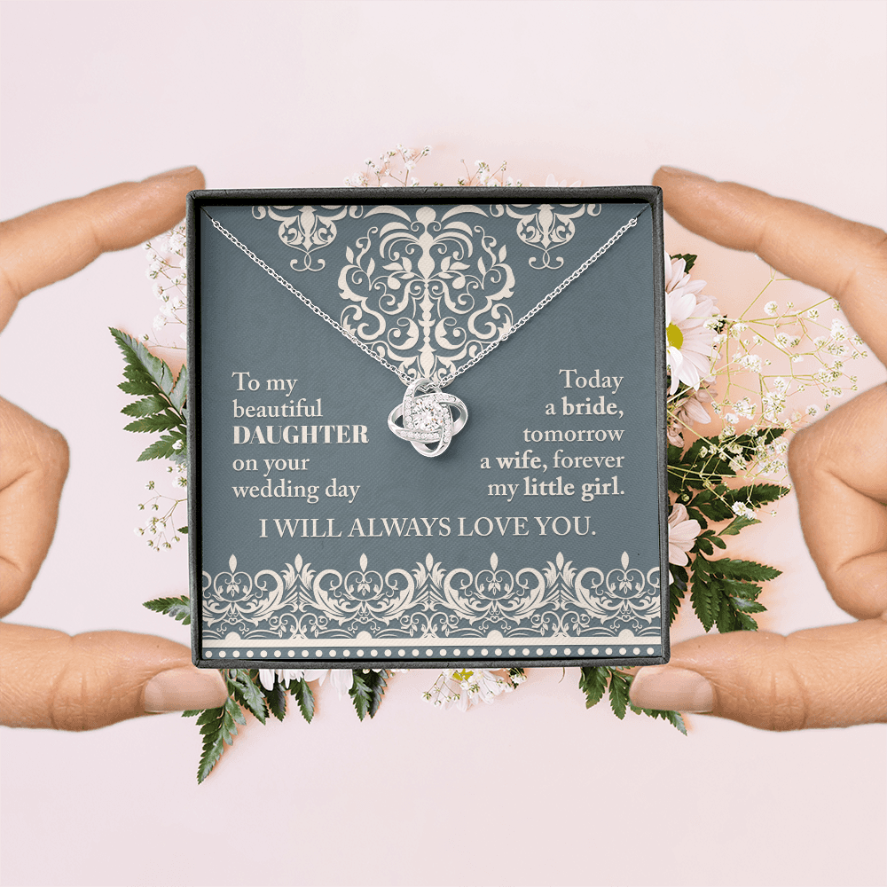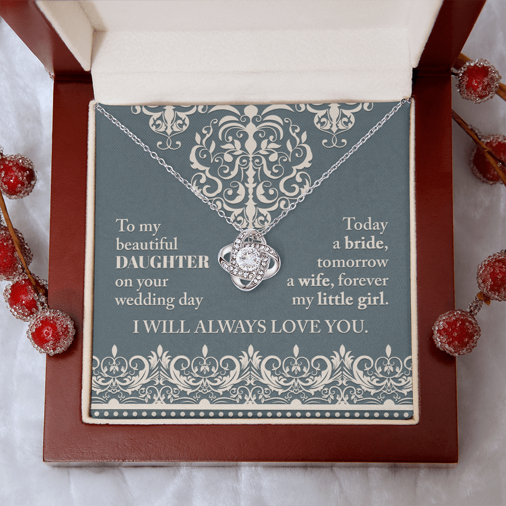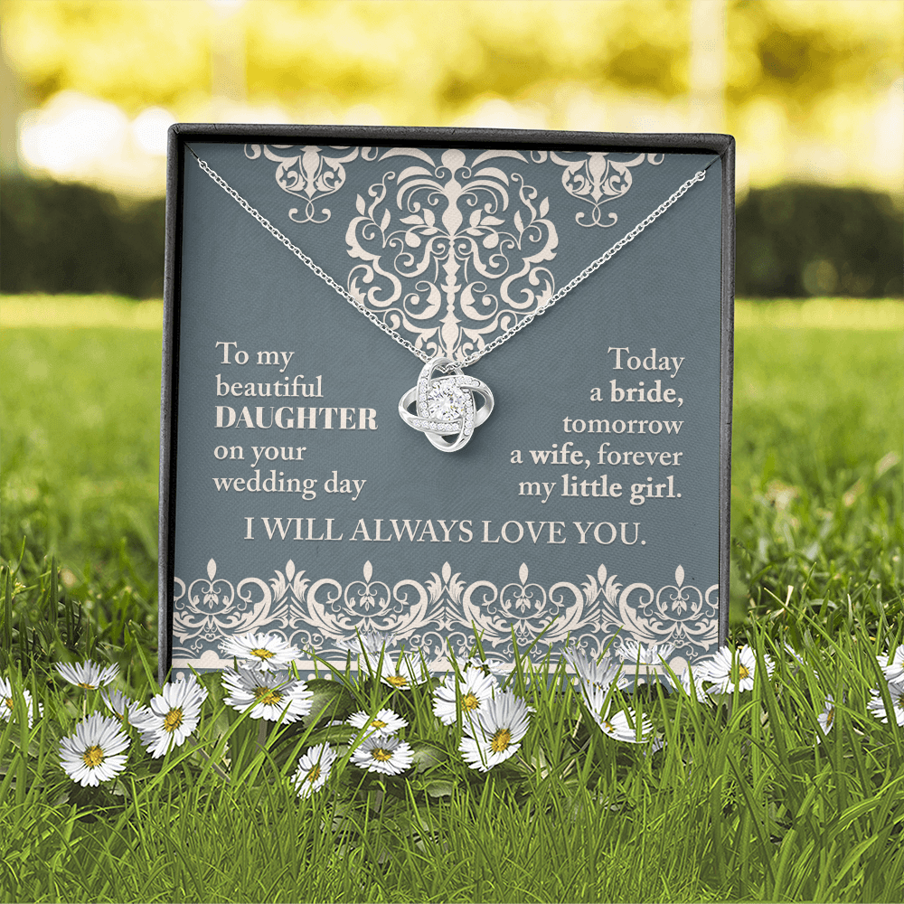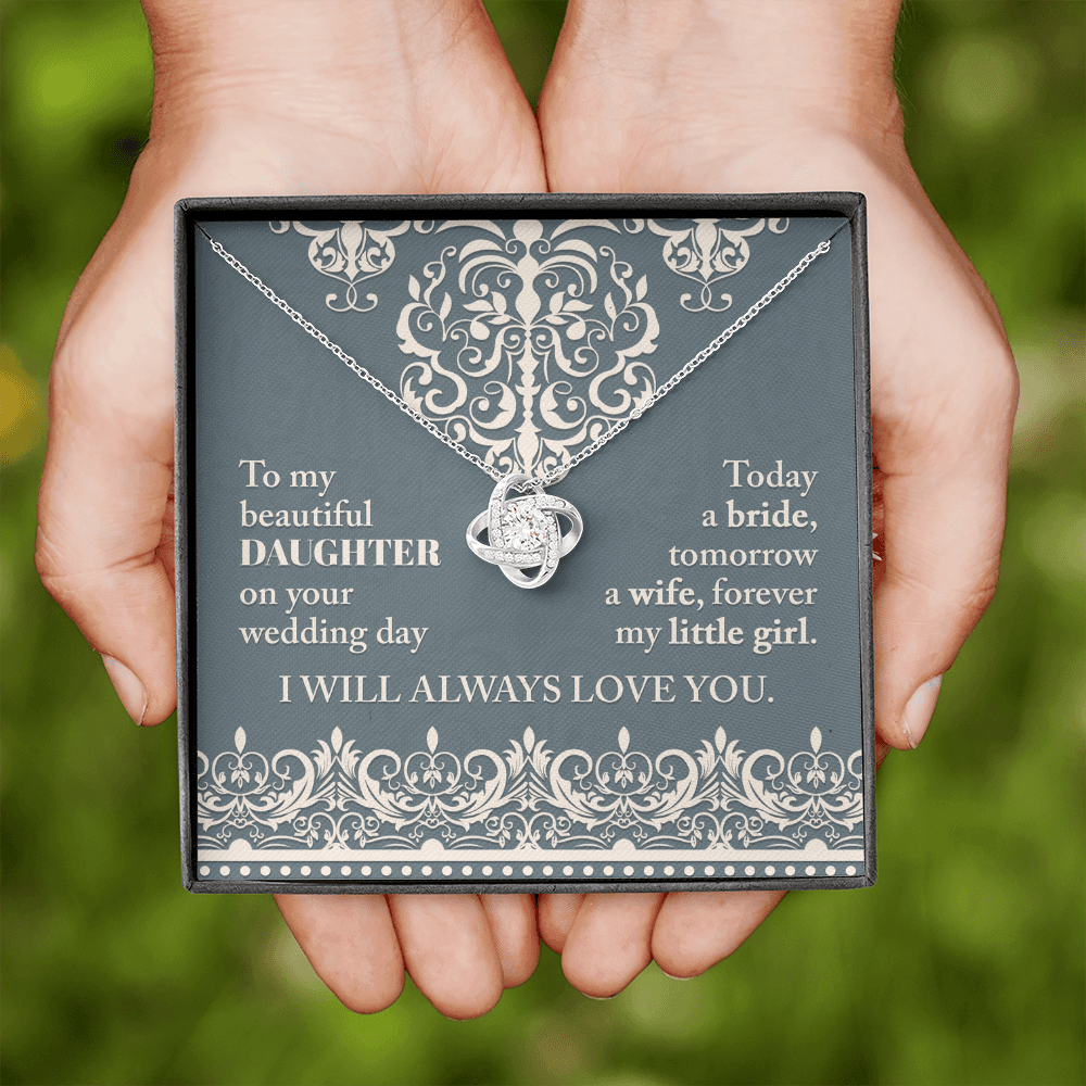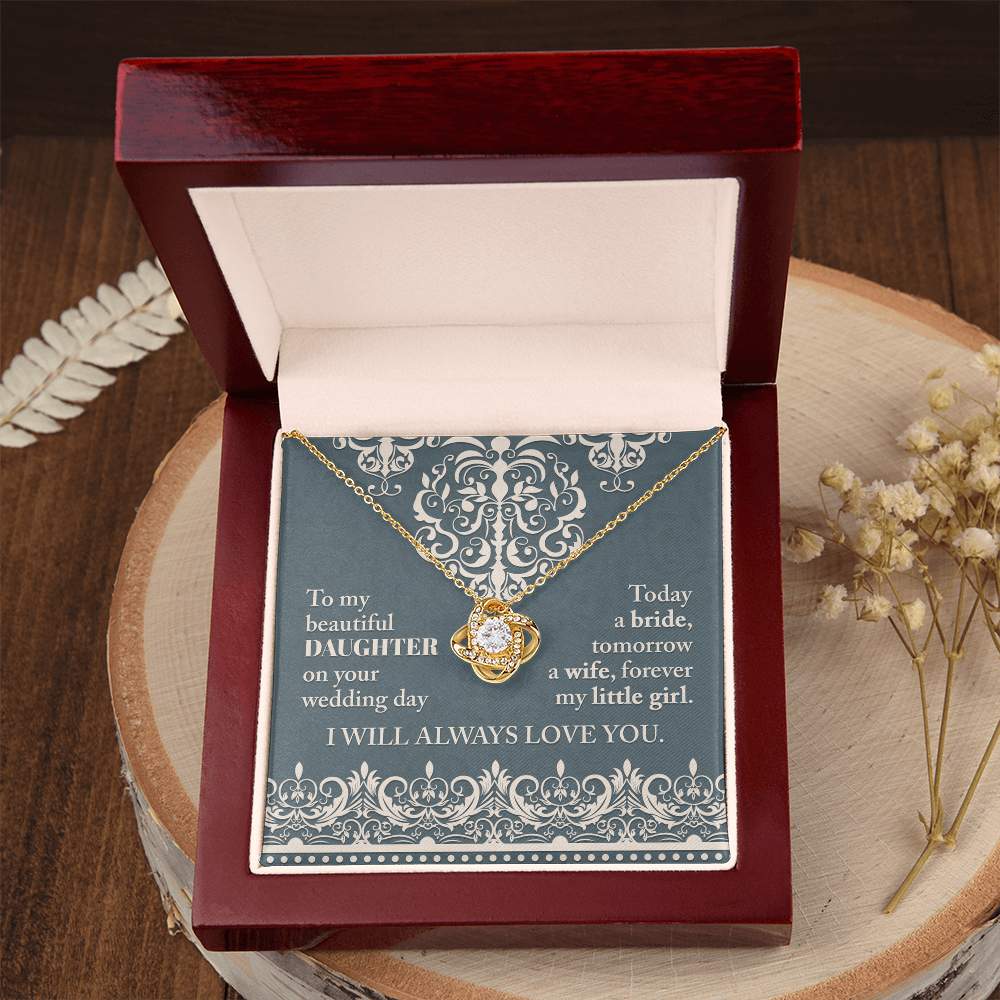 My Beautiful Daughter - On Your Wedding Day - Today A Bride, Tomorrow A Wife, Forever My Little Girl - I Will Always Love You - Love Knot Necklace LN, WED0000030LN