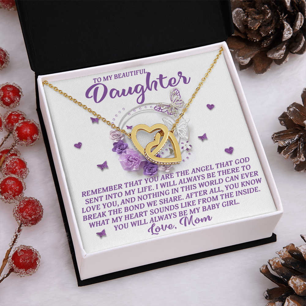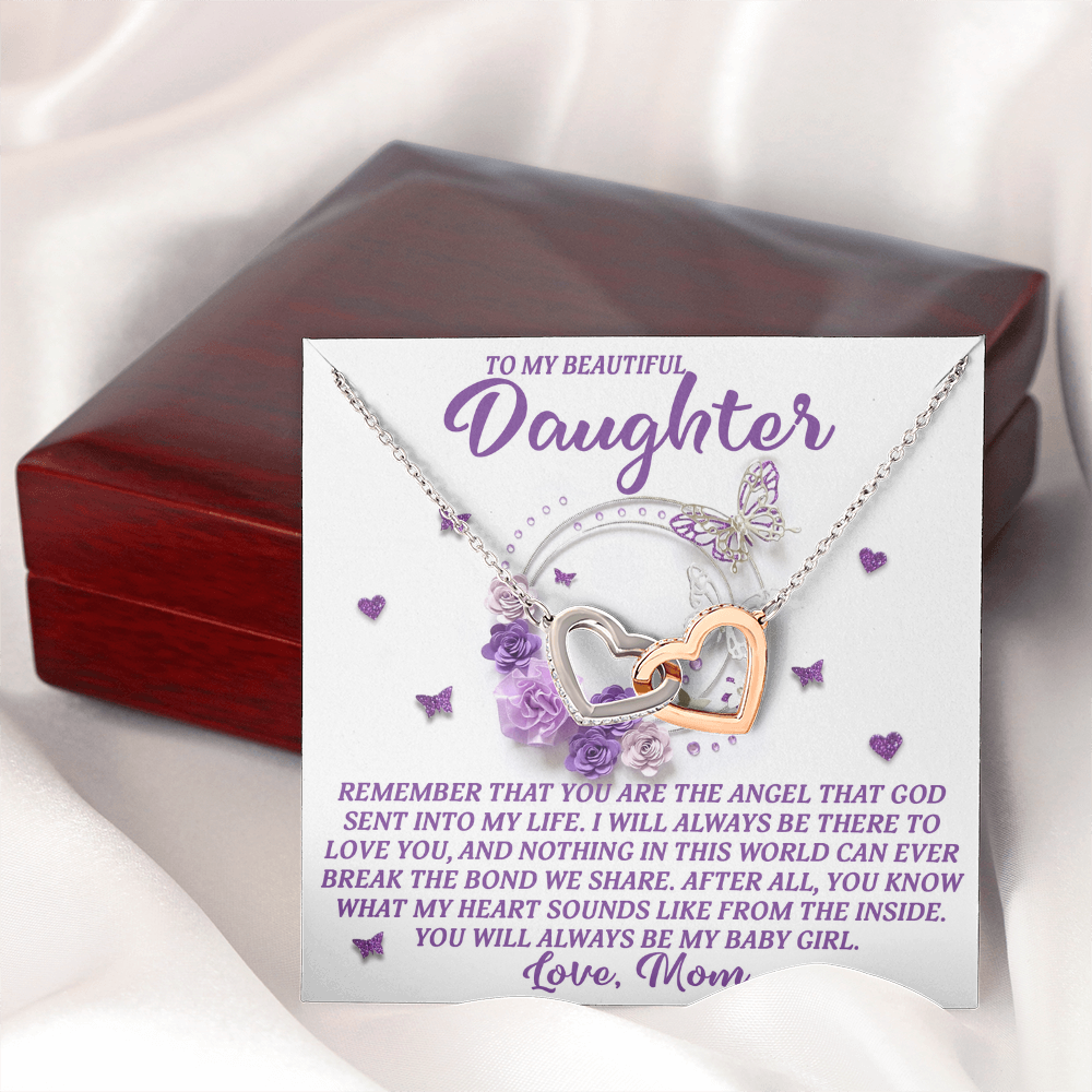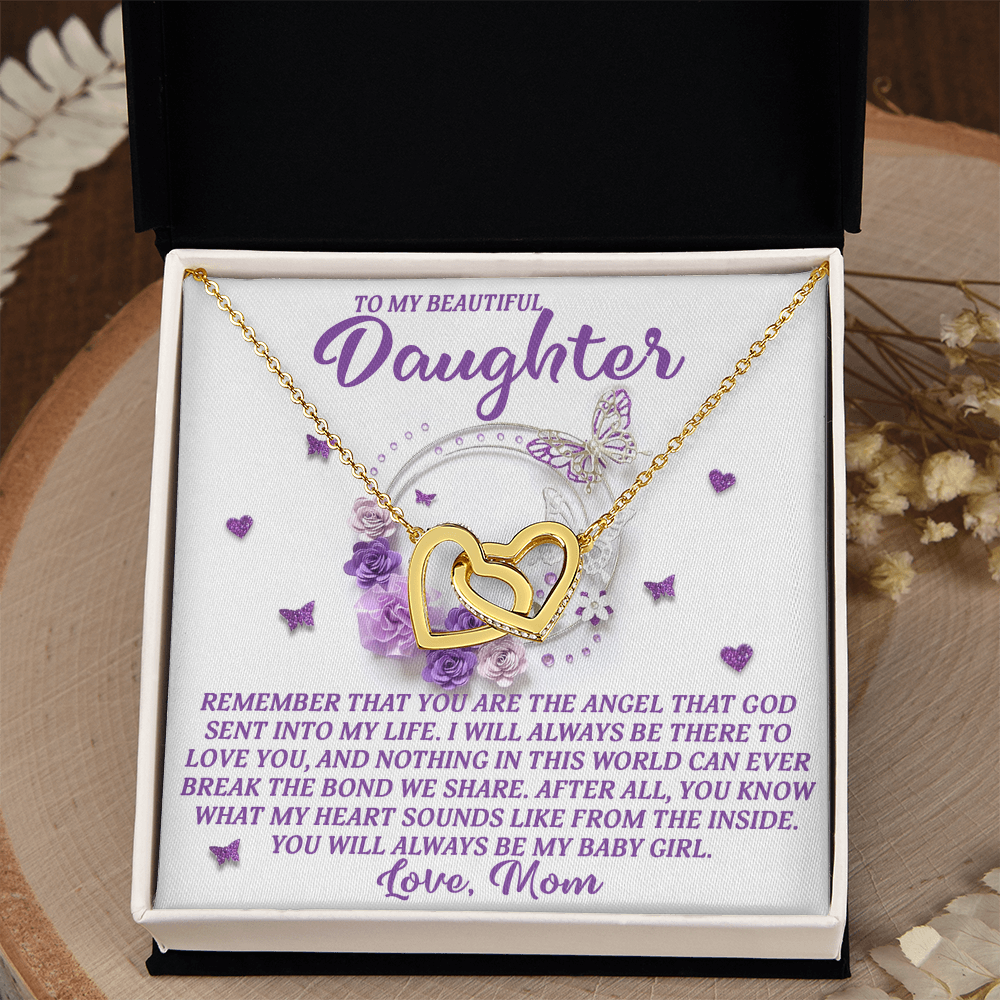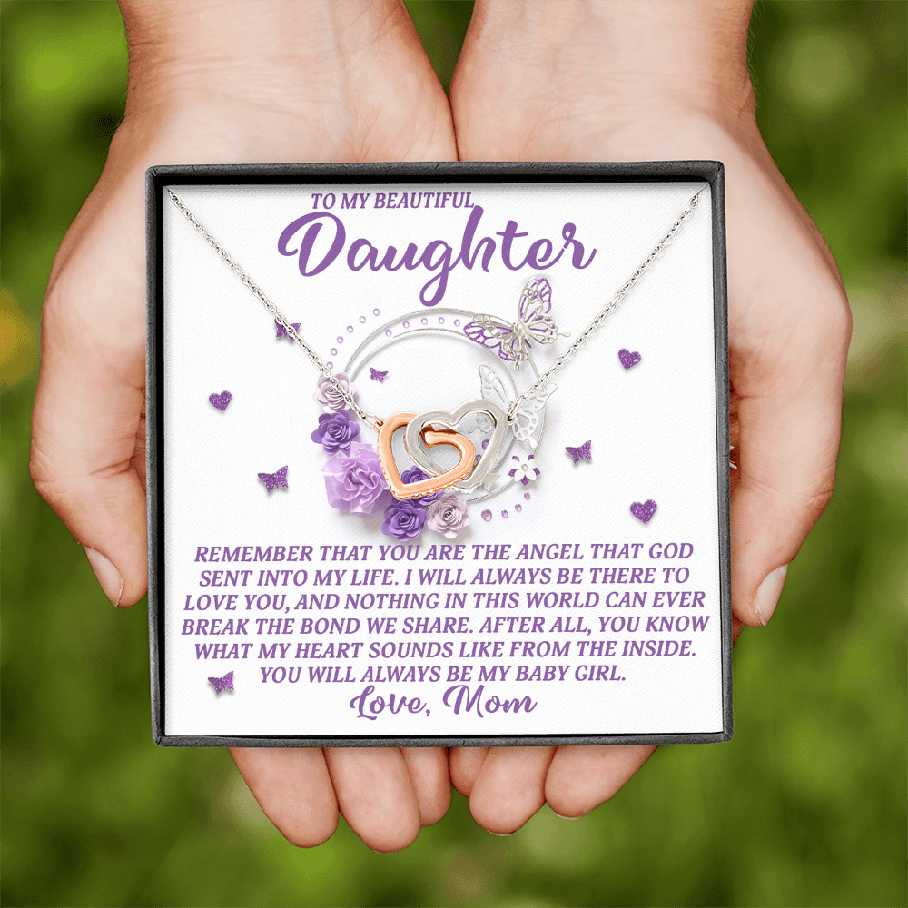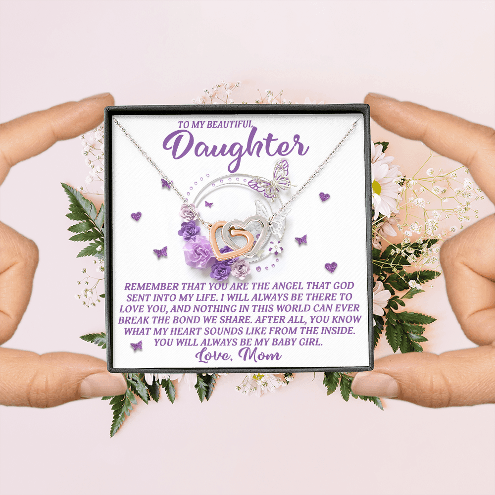 My Beautiful Daughter - The Angel That God Sent Into My Life - Always Be There To Love You - Always Be My Baby Girl - Love Mom - Interlocking Hearts Necklace IH, DAU0000185IH