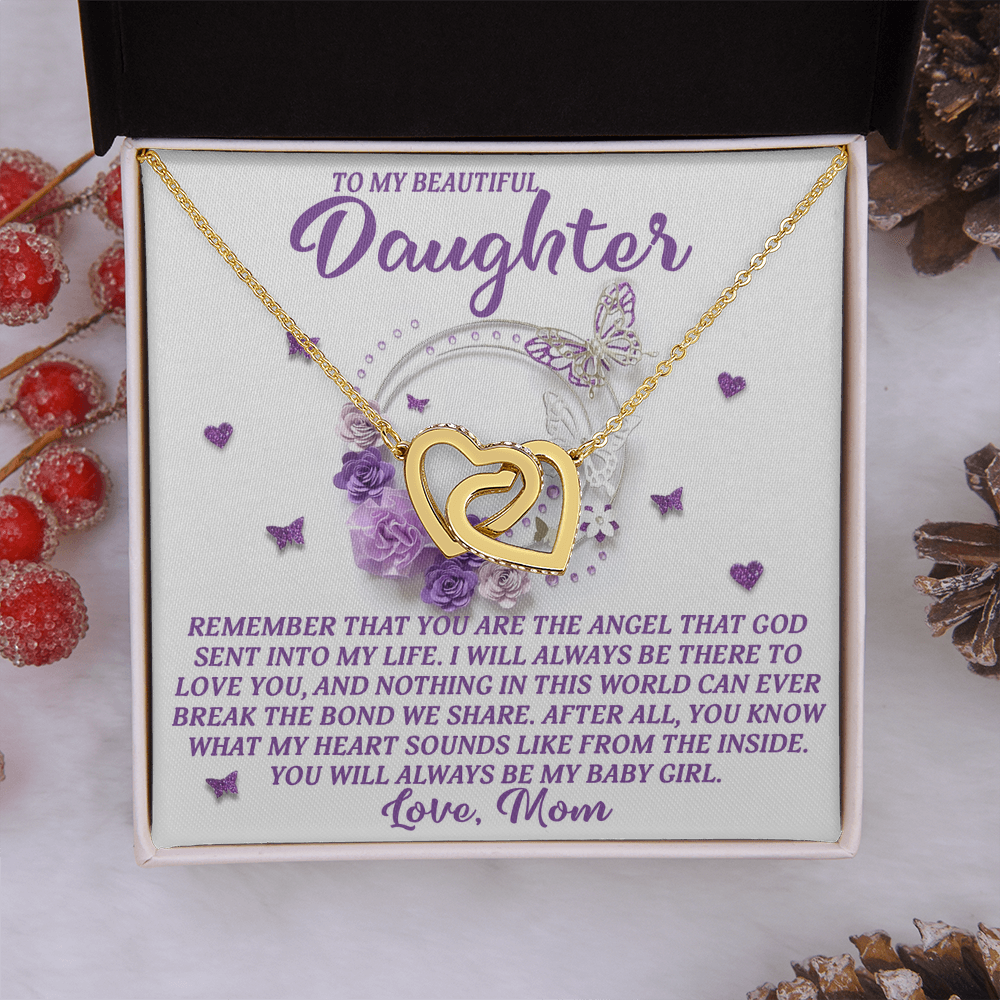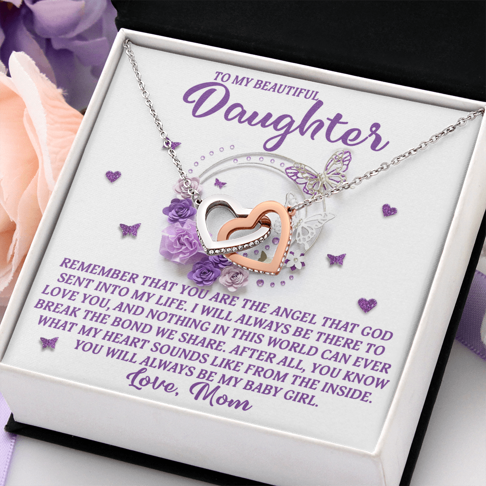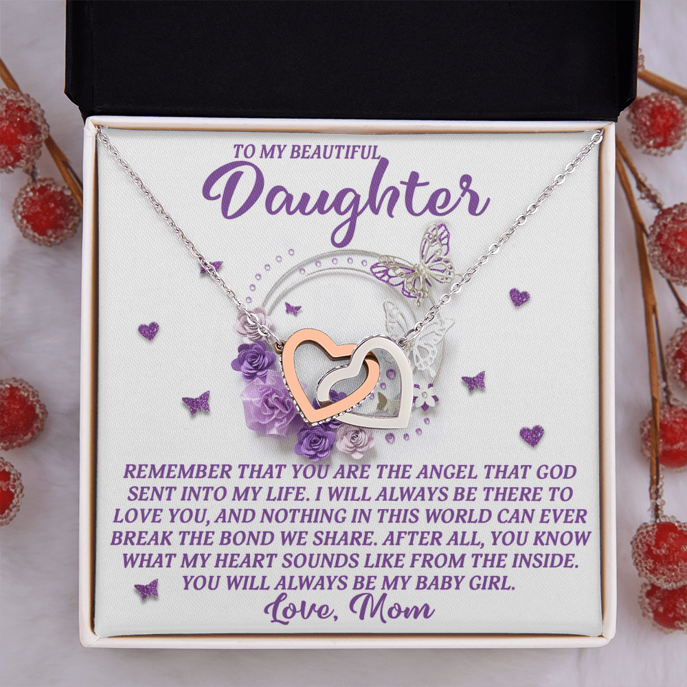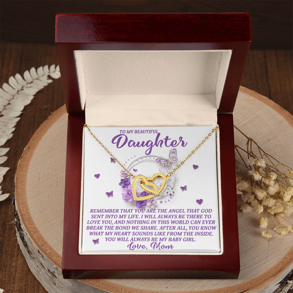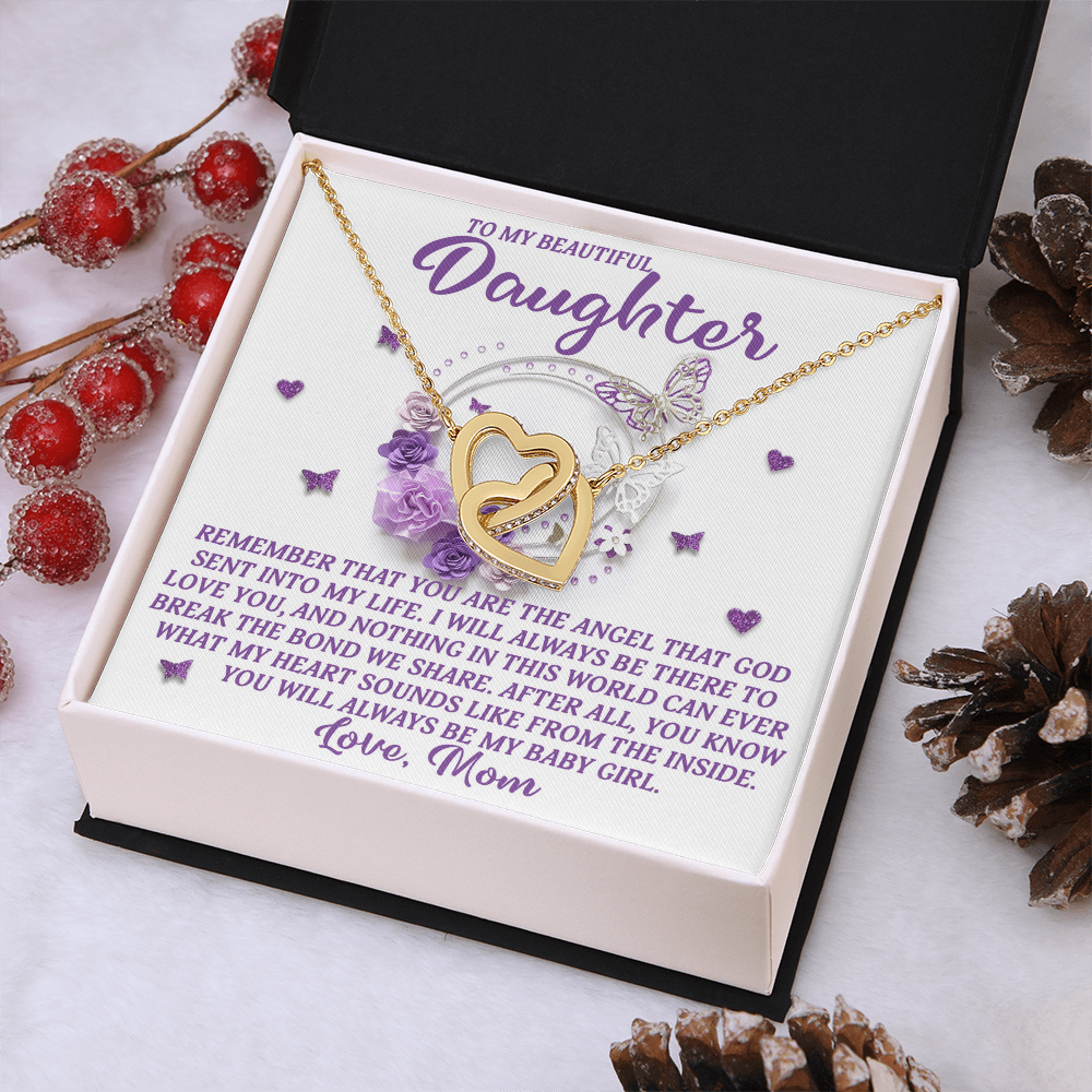 My Beautiful Daughter - The Angel That God Sent Into My Life - Always Be There To Love You - Always Be My Baby Girl - Love Mom - Interlocking Hearts Necklace IH, DAU0000185IH