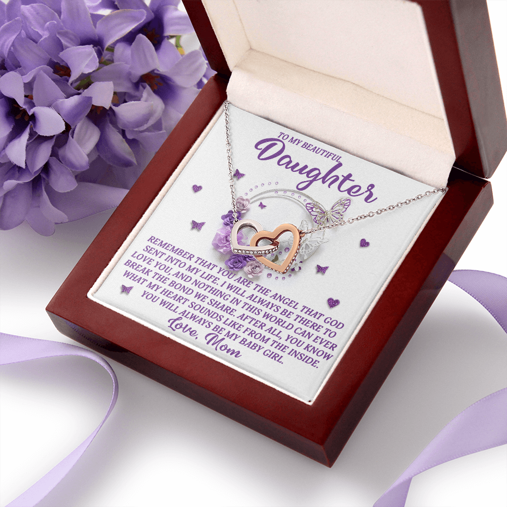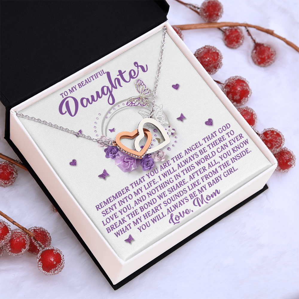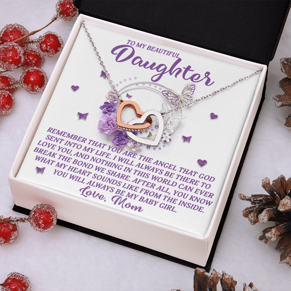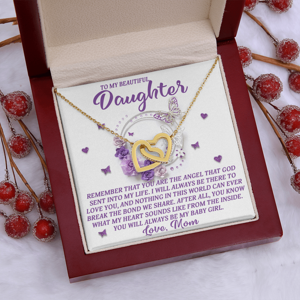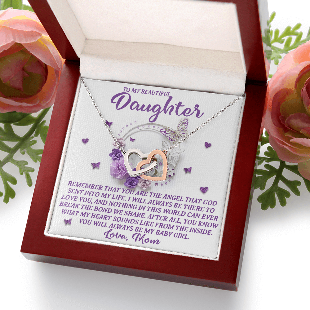My Beautiful Daughter - The Angel That God Sent Into My Life - Always Be There To Love You - Always Be My Baby Girl - Love Mom - Interlocking Hearts Necklace IH, DAU0000185IH