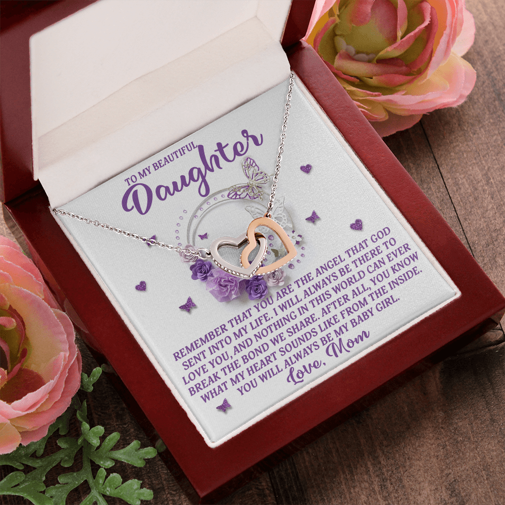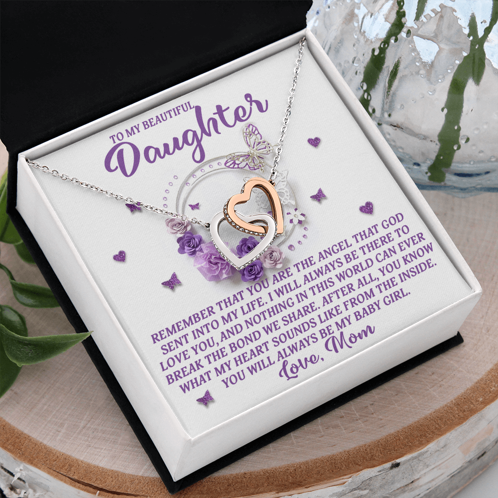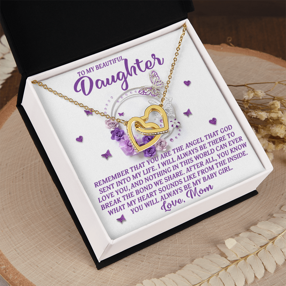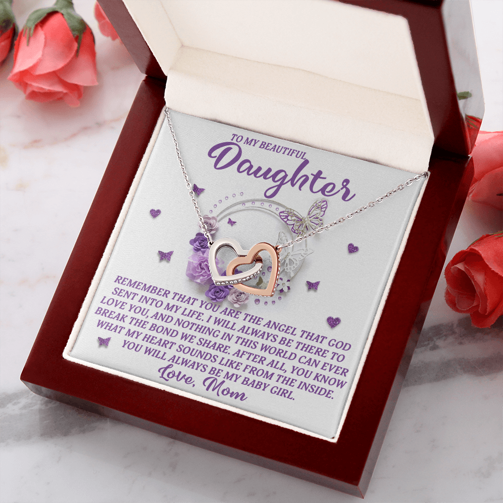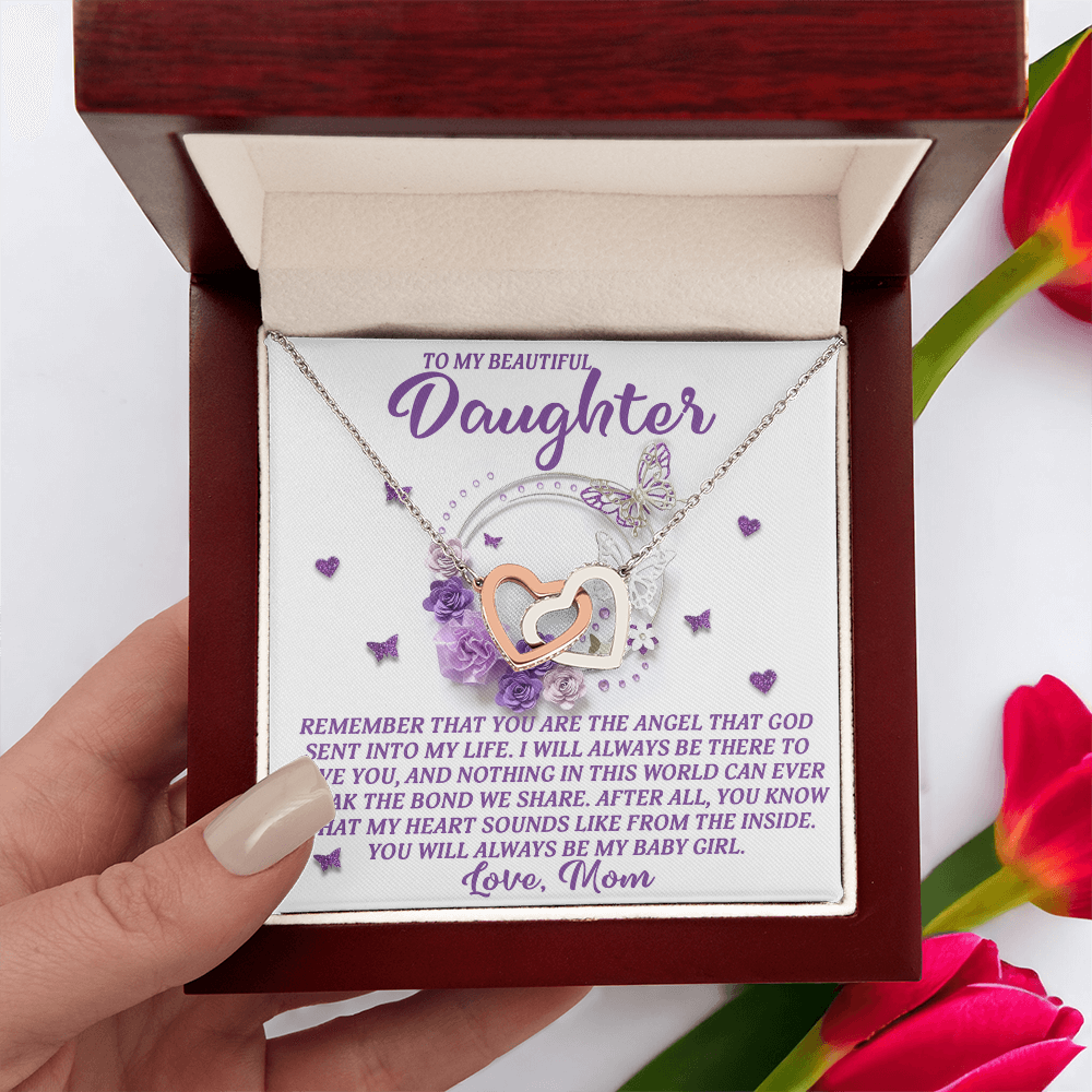 My Beautiful Daughter - The Angel That God Sent Into My Life - Always Be There To Love You - Always Be My Baby Girl - Love Mom - Interlocking Hearts Necklace IH, DAU0000185IH