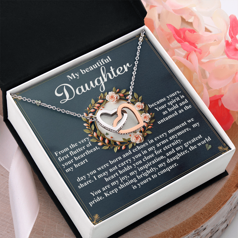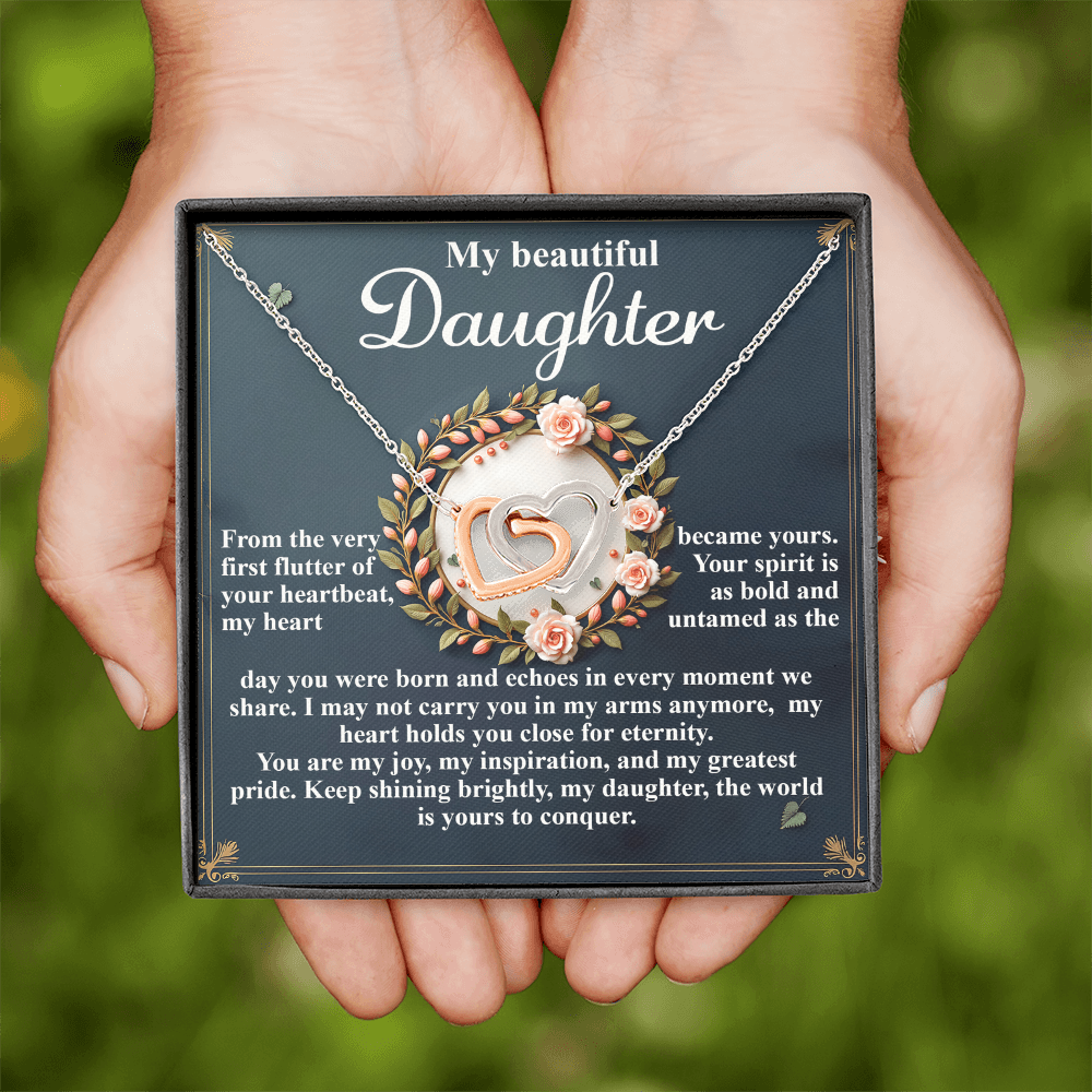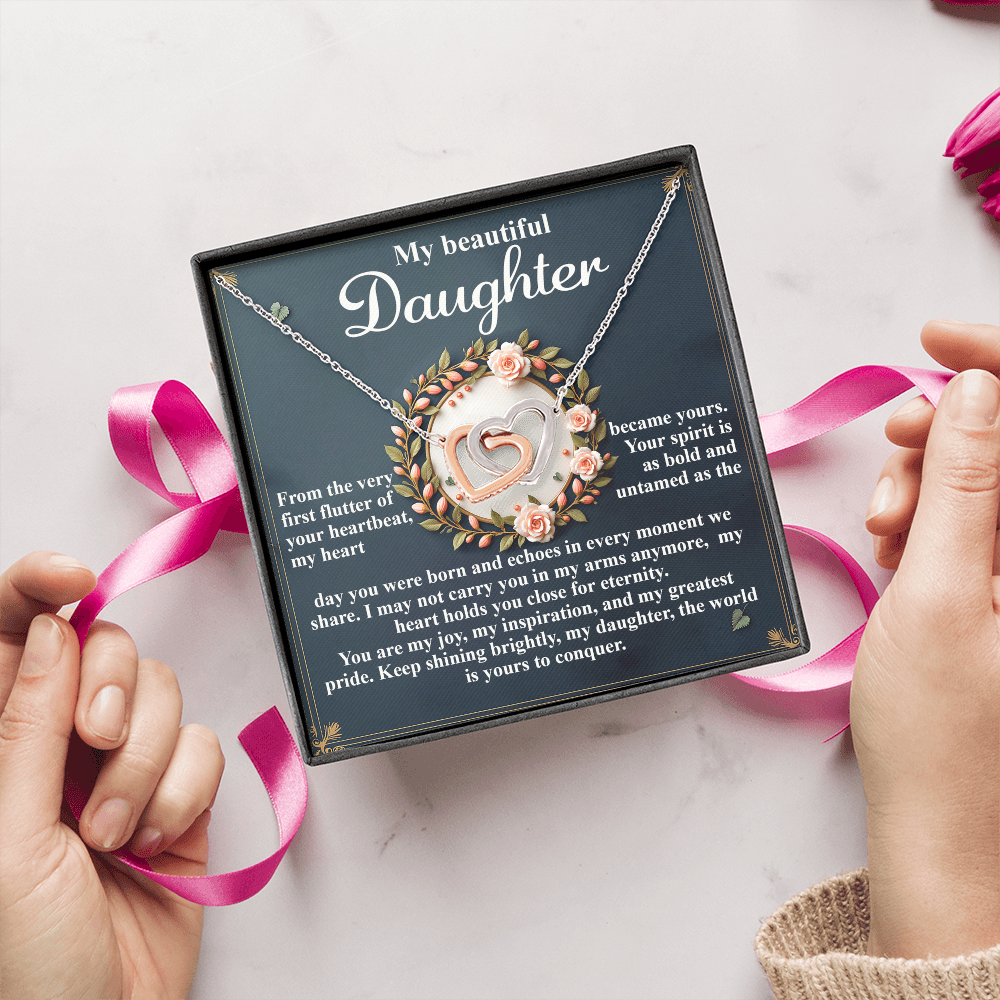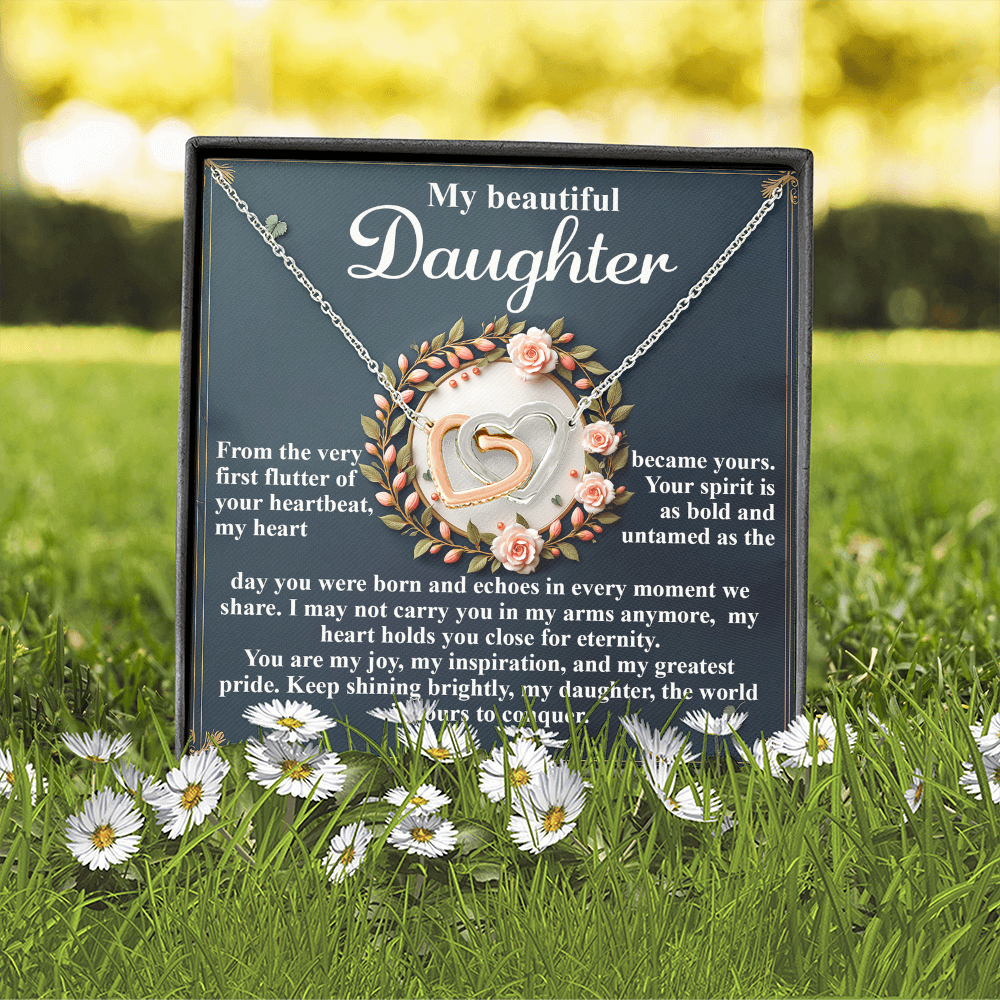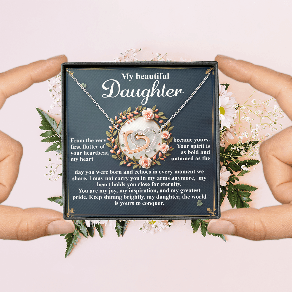 My Beautiful Daughter - The Very First Flutter Of Your Heartbeat, My Heart Became Yours - My Heart Holds You Close For Eternity - My Joy, My Inspiration & My Greatest Pride - Keep Shining Brightly - Interlocking Hearts Necklace IH, DAU0000115IH