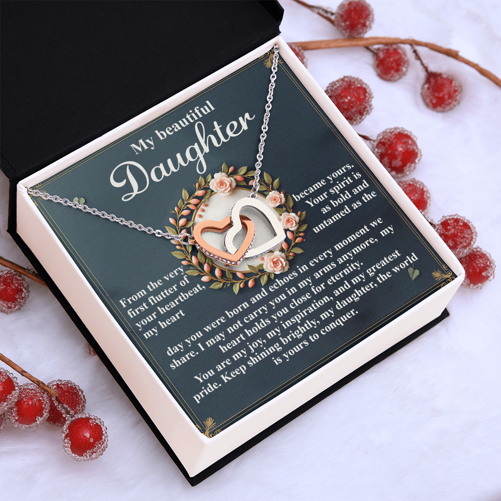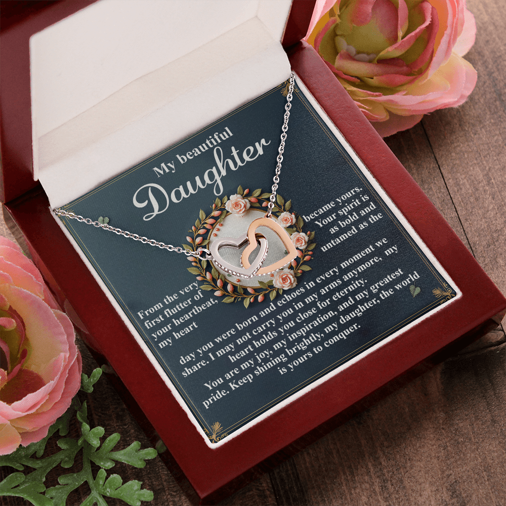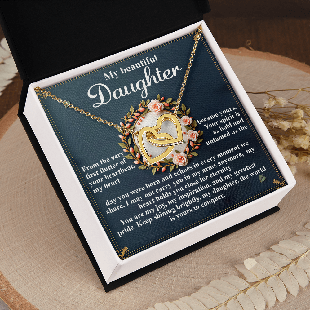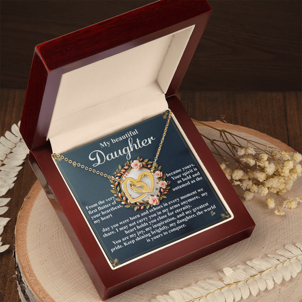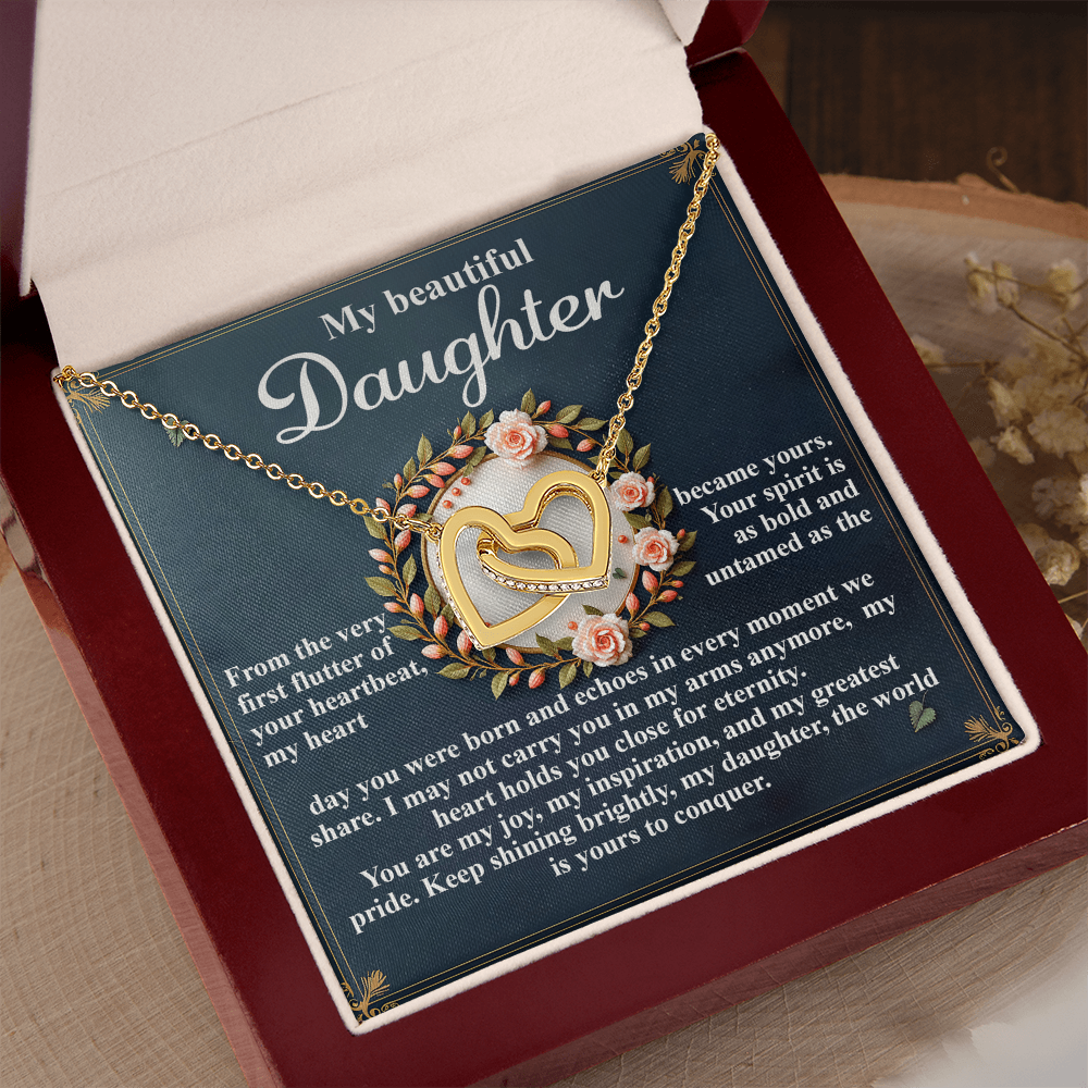 My Beautiful Daughter - The Very First Flutter Of Your Heartbeat, My Heart Became Yours - My Heart Holds You Close For Eternity - My Joy, My Inspiration & My Greatest Pride - Keep Shining Brightly - Interlocking Hearts Necklace IH, DAU0000115IH