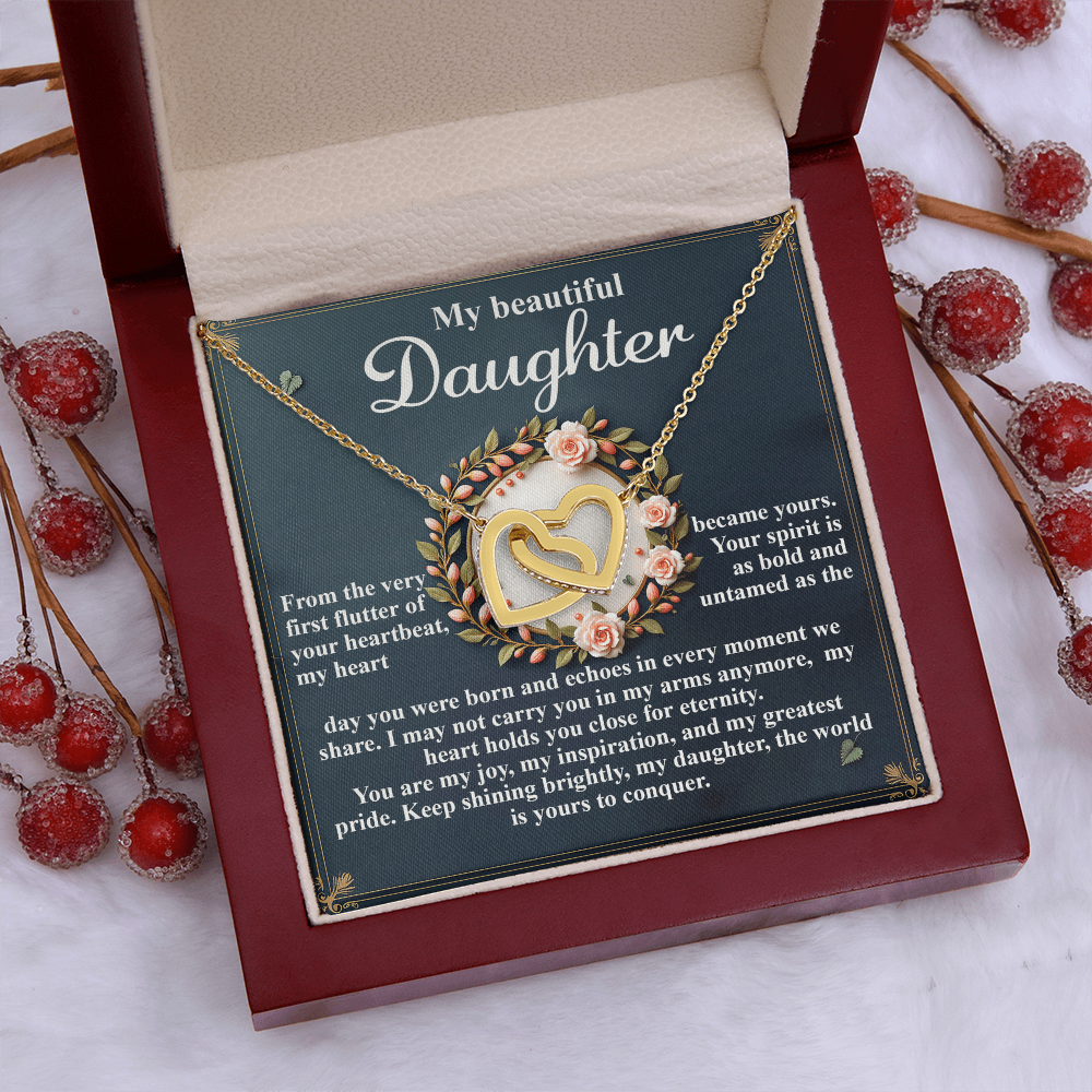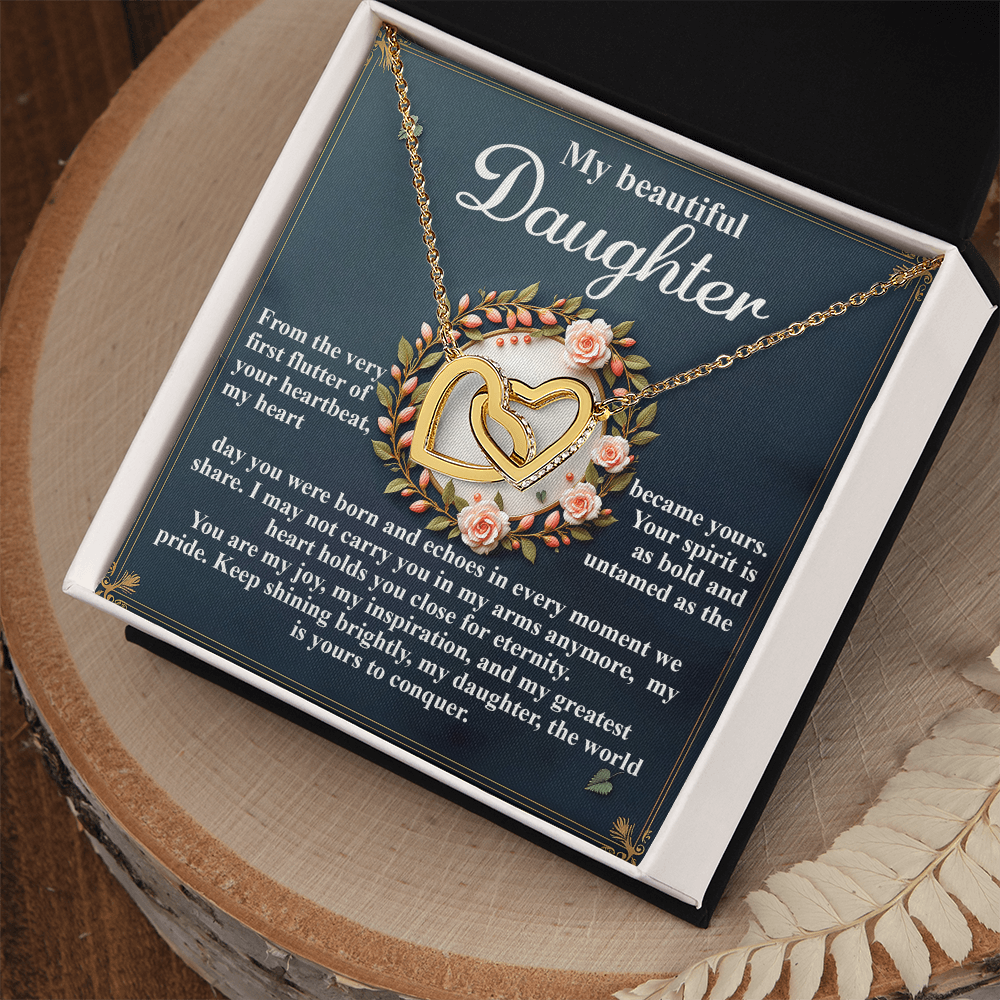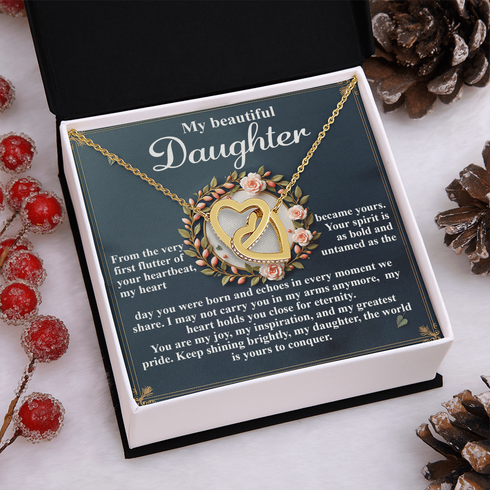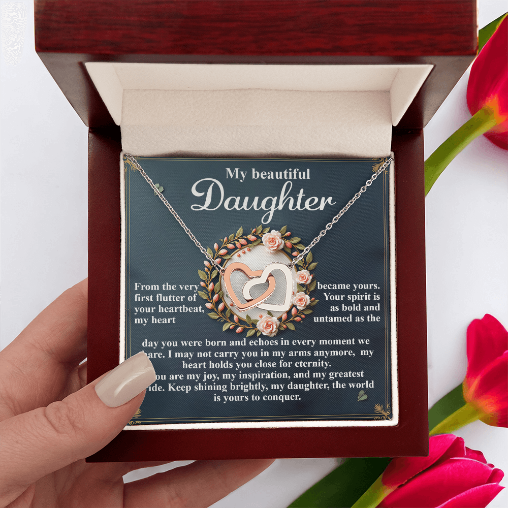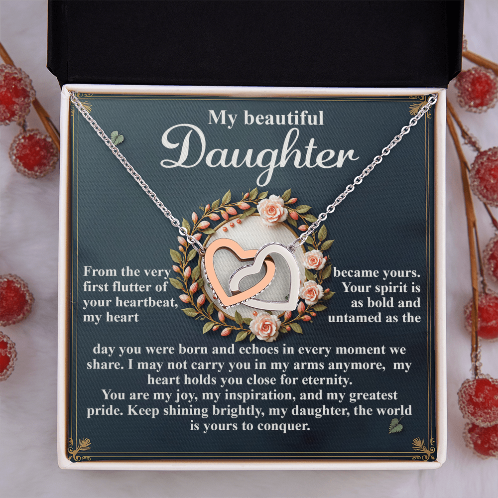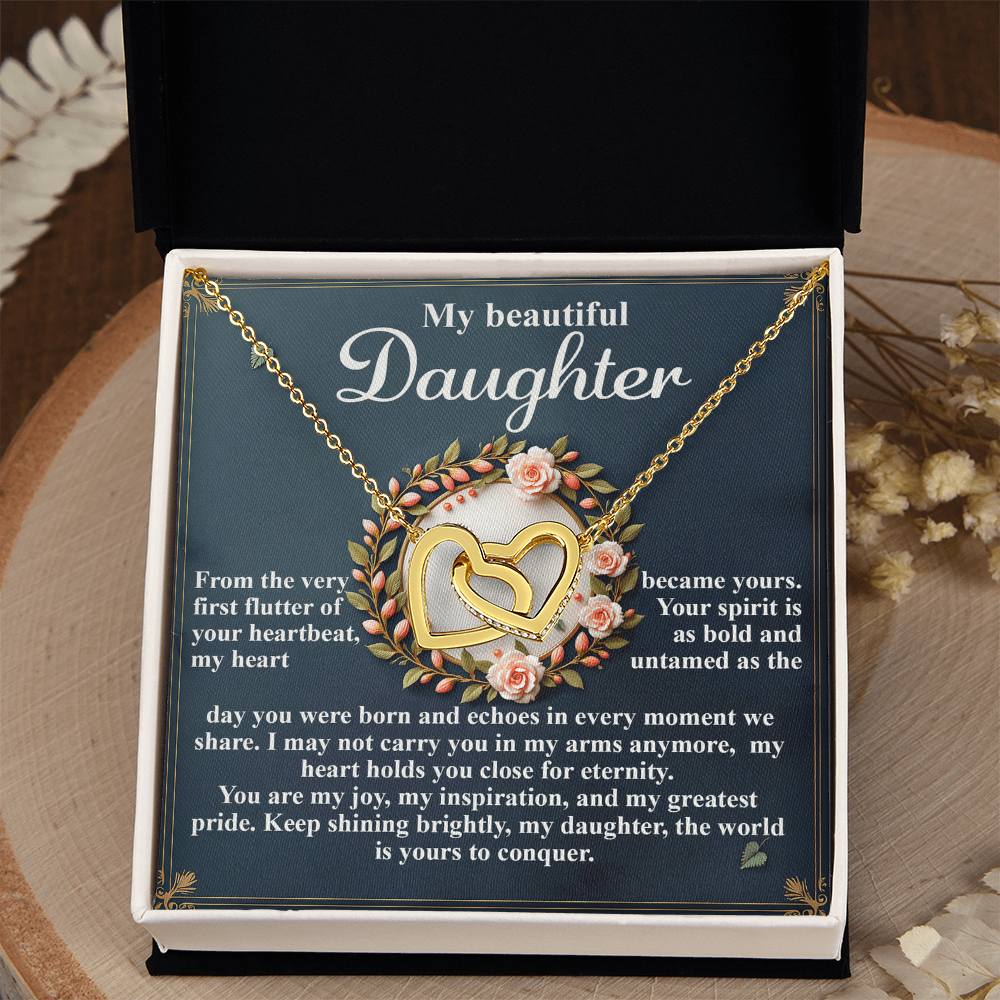 My Beautiful Daughter - The Very First Flutter Of Your Heartbeat, My Heart Became Yours - My Heart Holds You Close For Eternity - My Joy, My Inspiration & My Greatest Pride - Keep Shining Brightly - Interlocking Hearts Necklace IH, DAU0000115IH