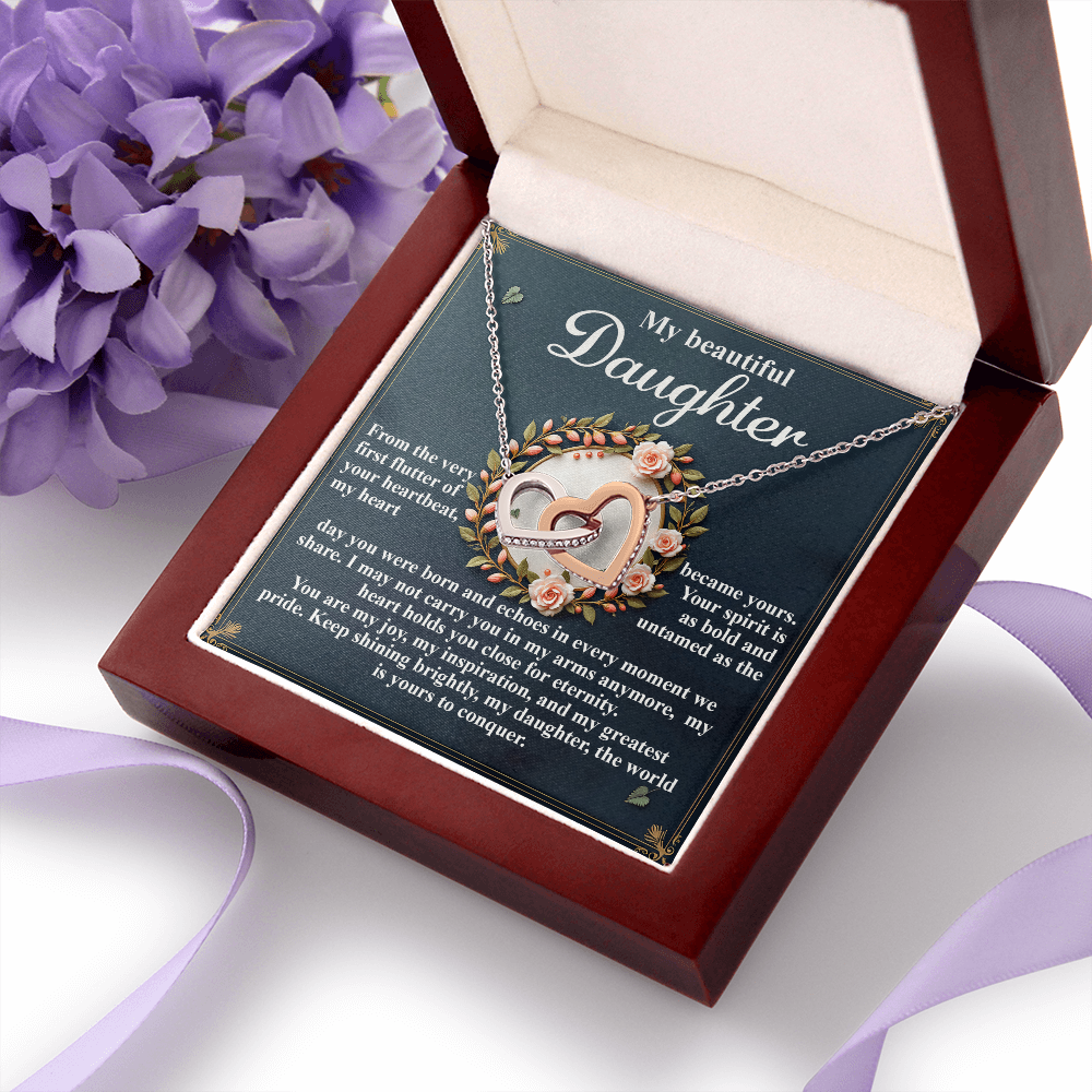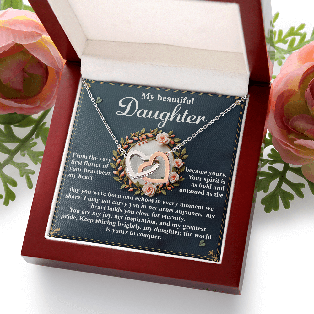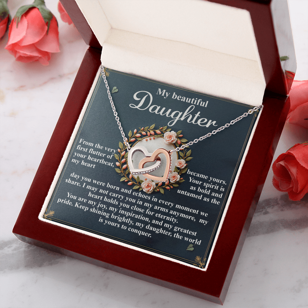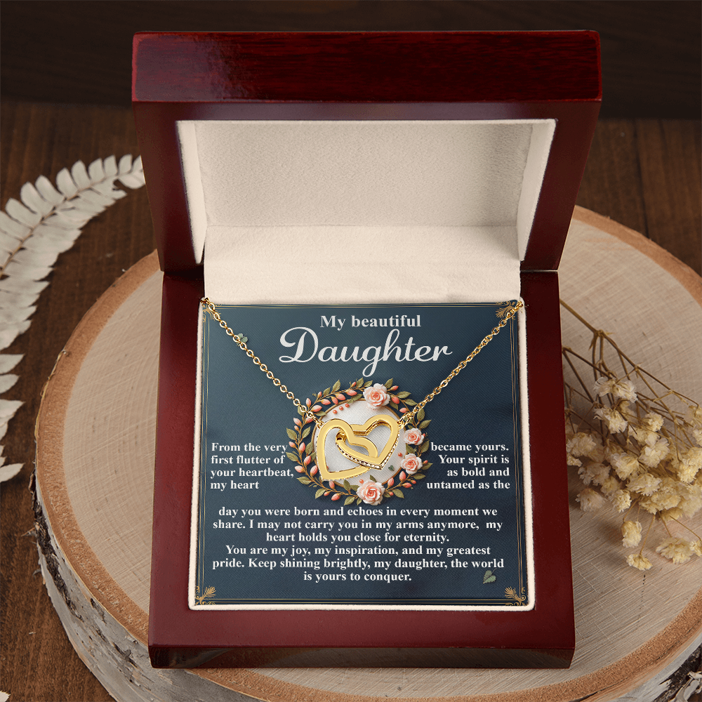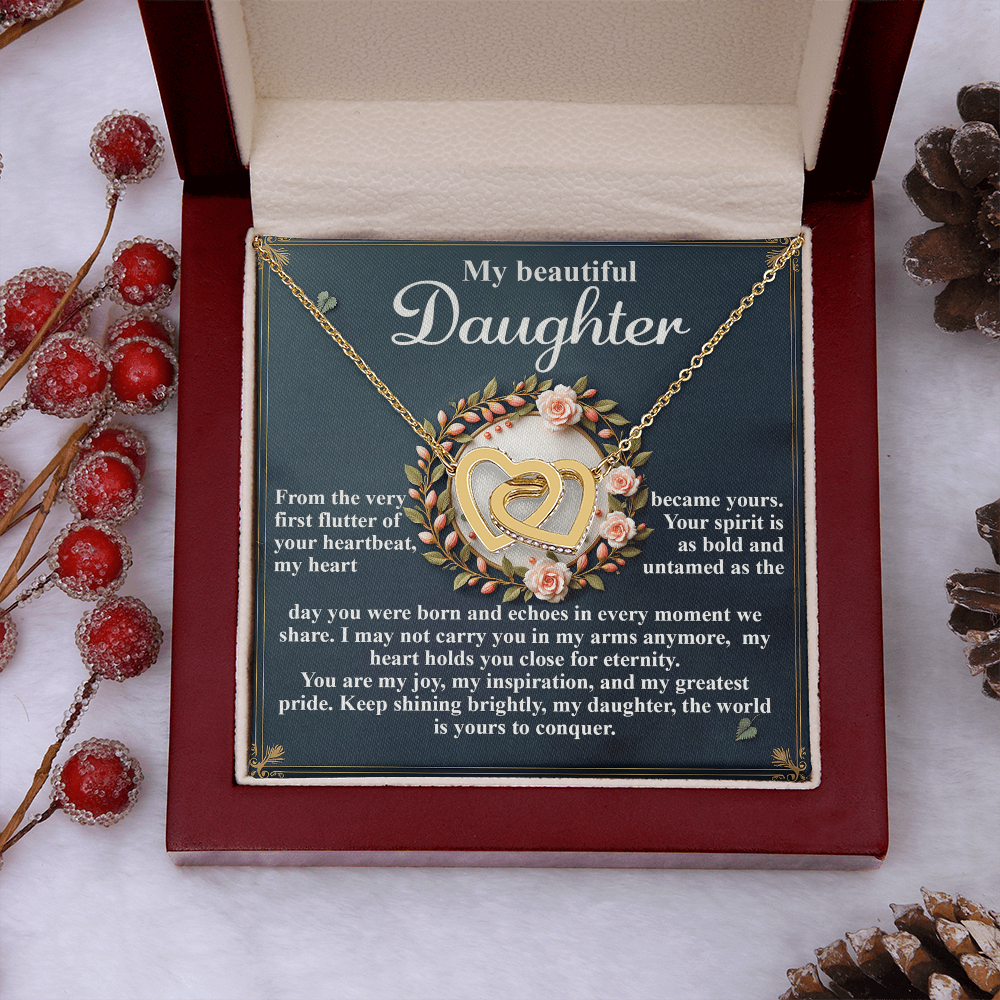 My Beautiful Daughter - The Very First Flutter Of Your Heartbeat, My Heart Became Yours - My Heart Holds You Close For Eternity - My Joy, My Inspiration & My Greatest Pride - Keep Shining Brightly - Interlocking Hearts Necklace IH, DAU0000115IH