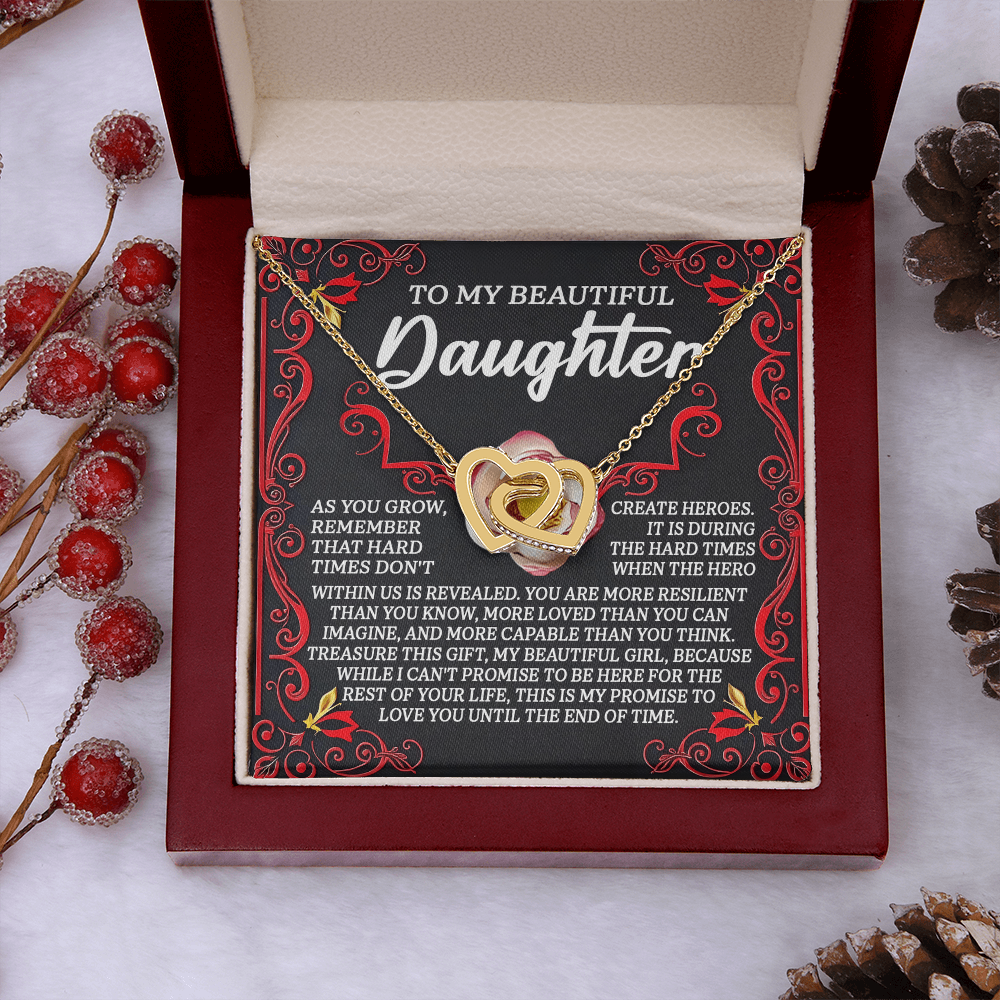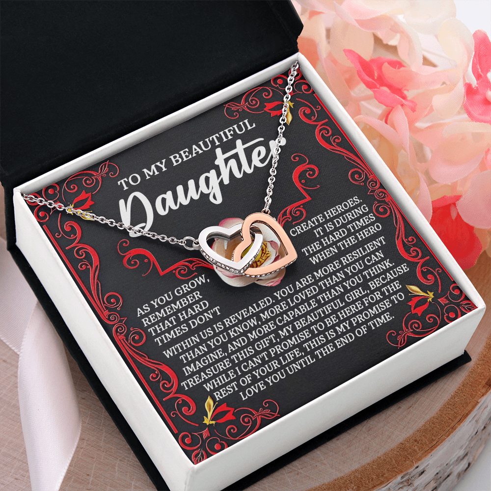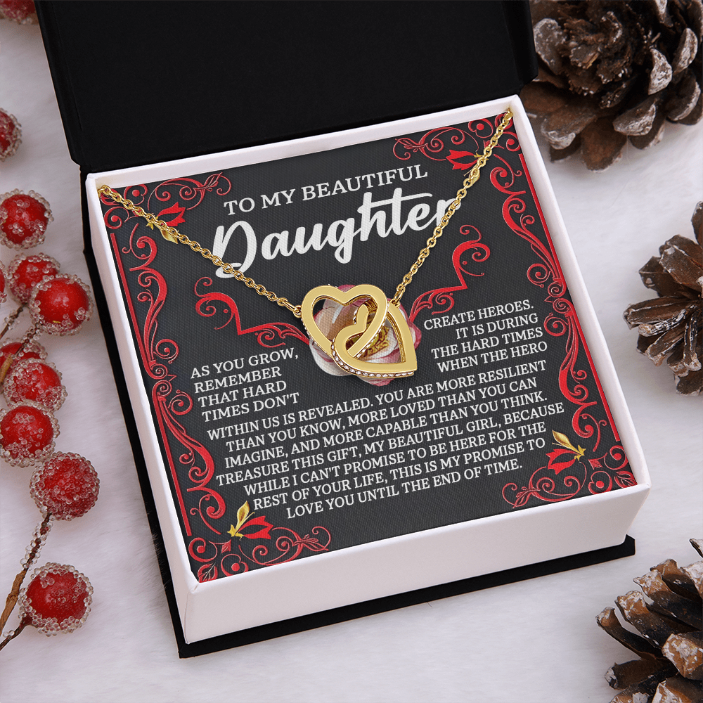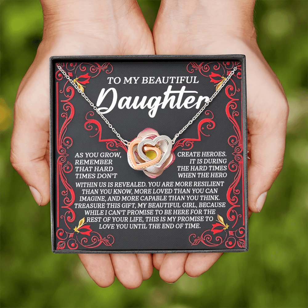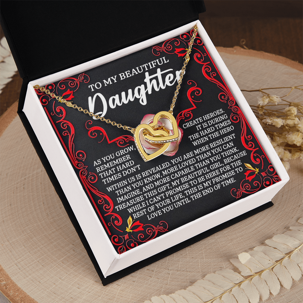 My Beautiful Daughter - You Are More Resilient Than You Know - More Loved Than You Can Imagine - More Capable Than You Think - Promise To Love You Until The End Of Time - Interlocking Hearts Necklace IH, DAU0000119IH