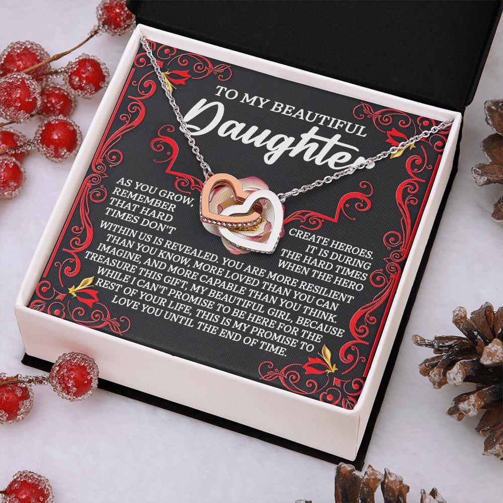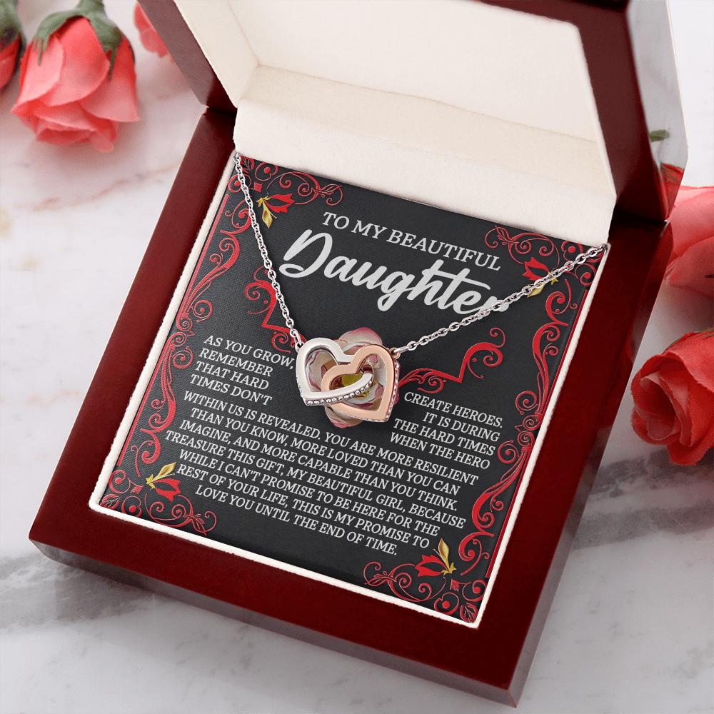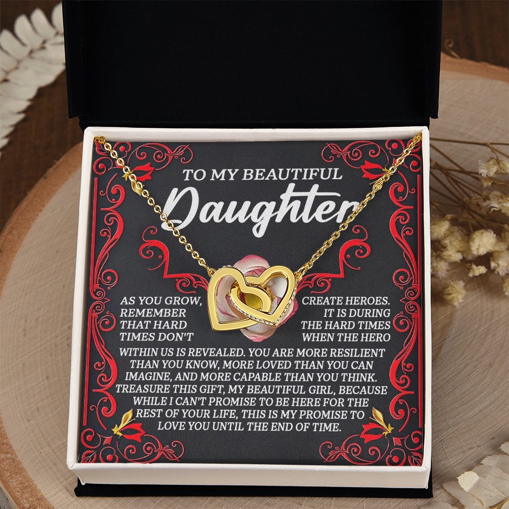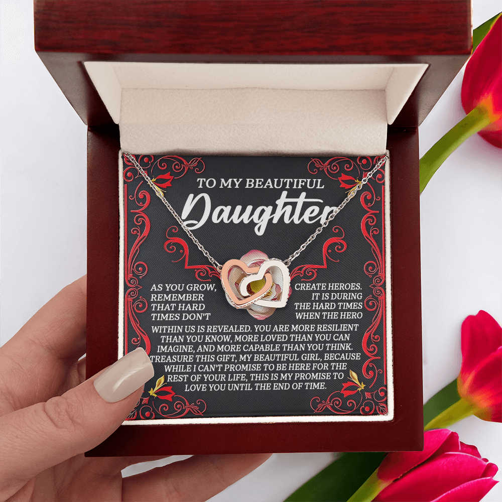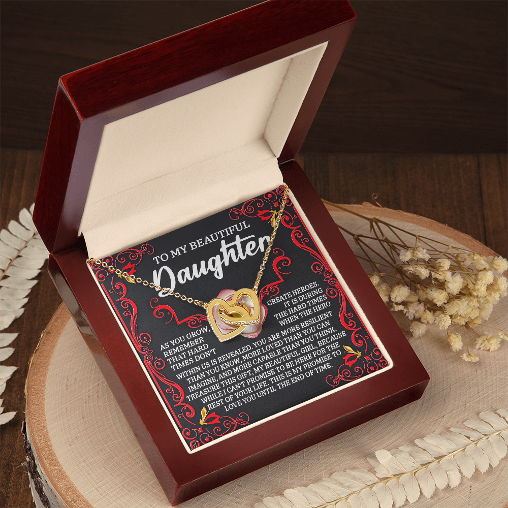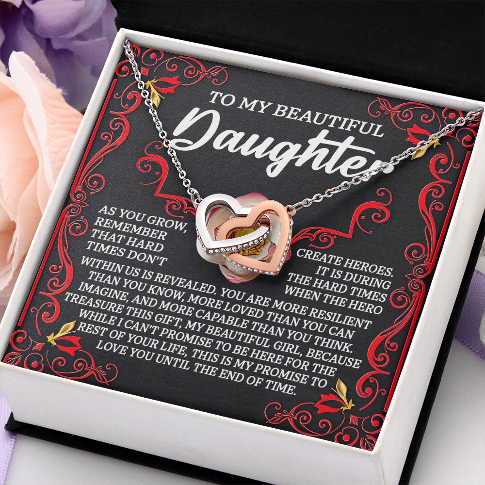 My Beautiful Daughter - You Are More Resilient Than You Know - More Loved Than You Can Imagine - More Capable Than You Think - Promise To Love You Until The End Of Time - Interlocking Hearts Necklace IH, DAU0000119IH