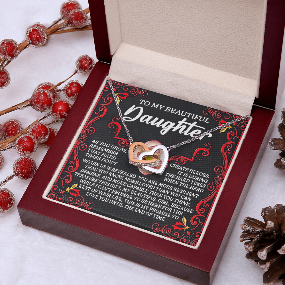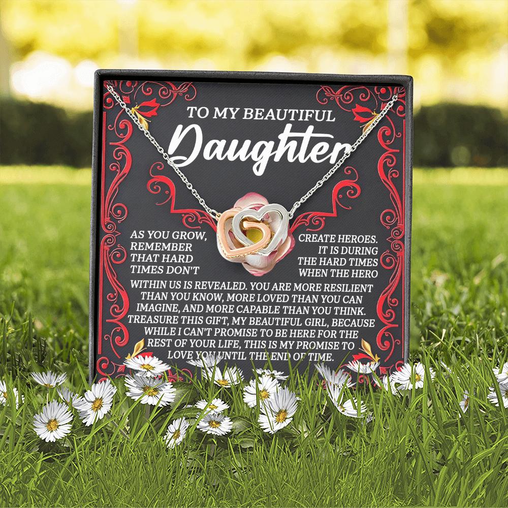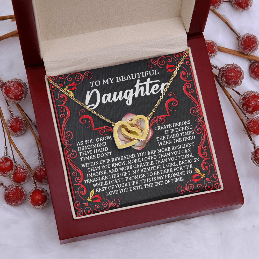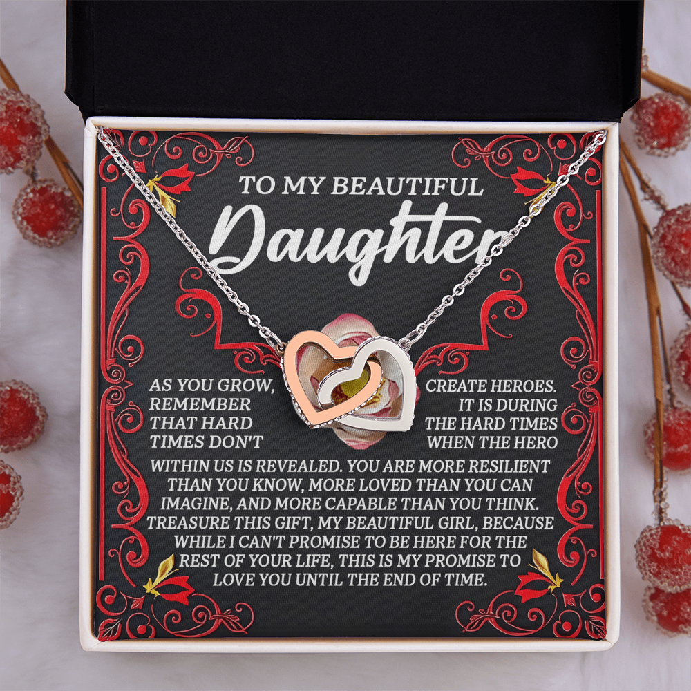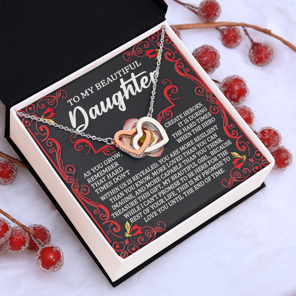 My Beautiful Daughter - You Are More Resilient Than You Know - More Loved Than You Can Imagine - More Capable Than You Think - Promise To Love You Until The End Of Time - Interlocking Hearts Necklace IH, DAU0000119IH