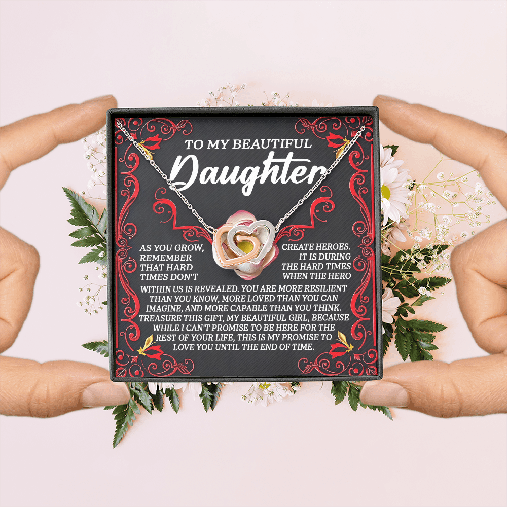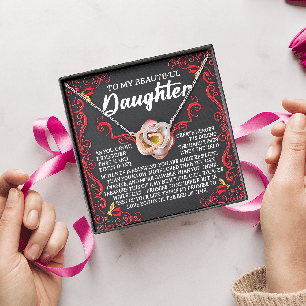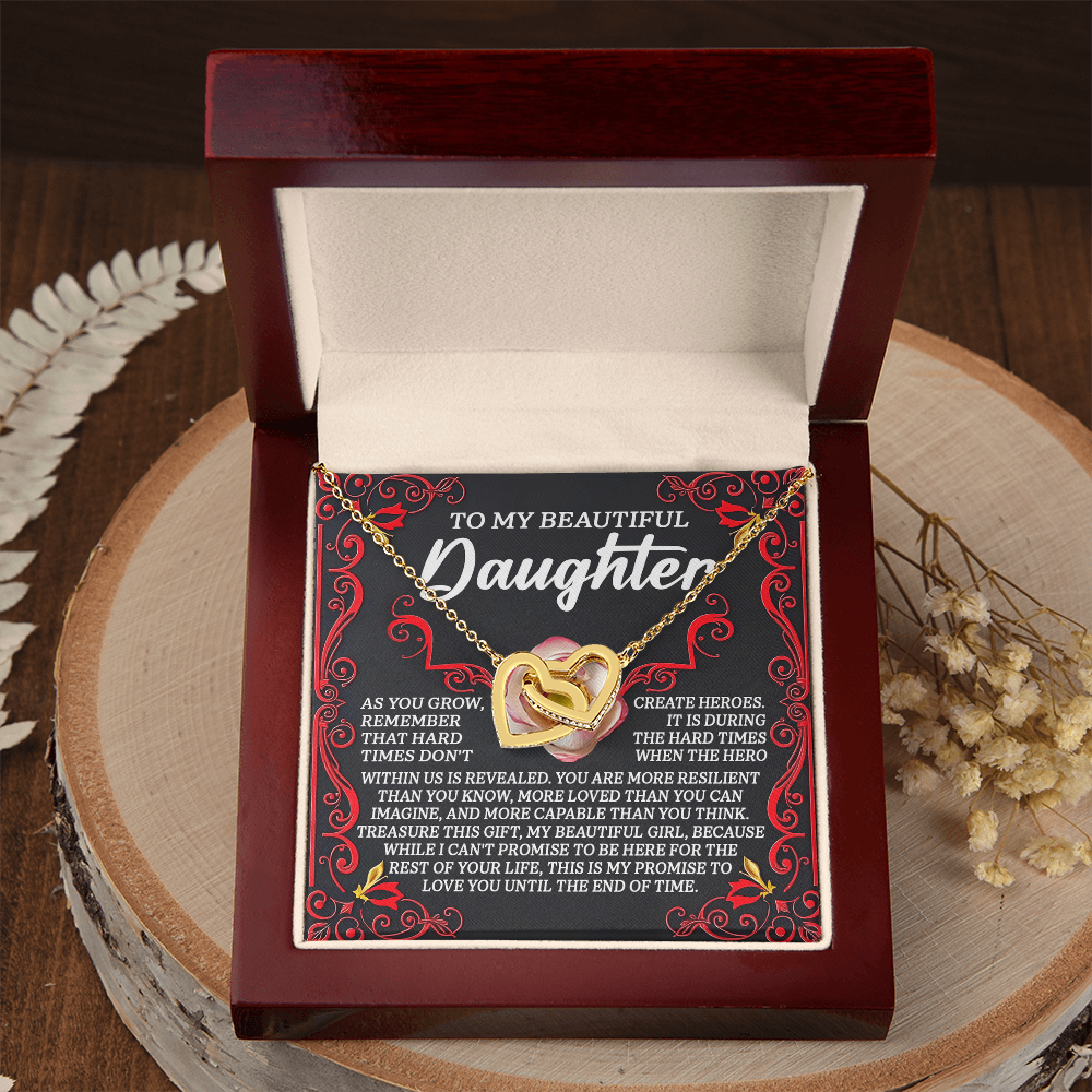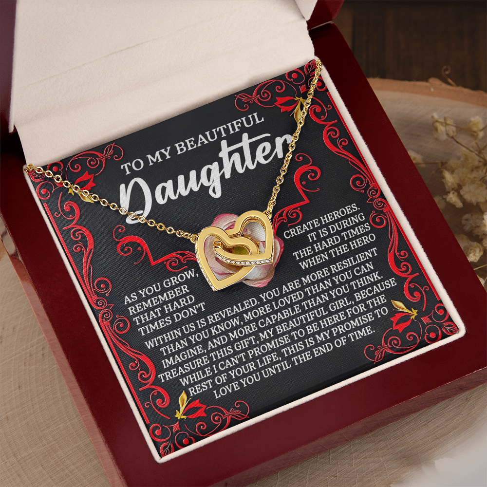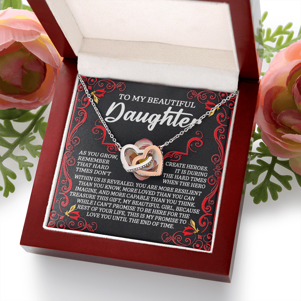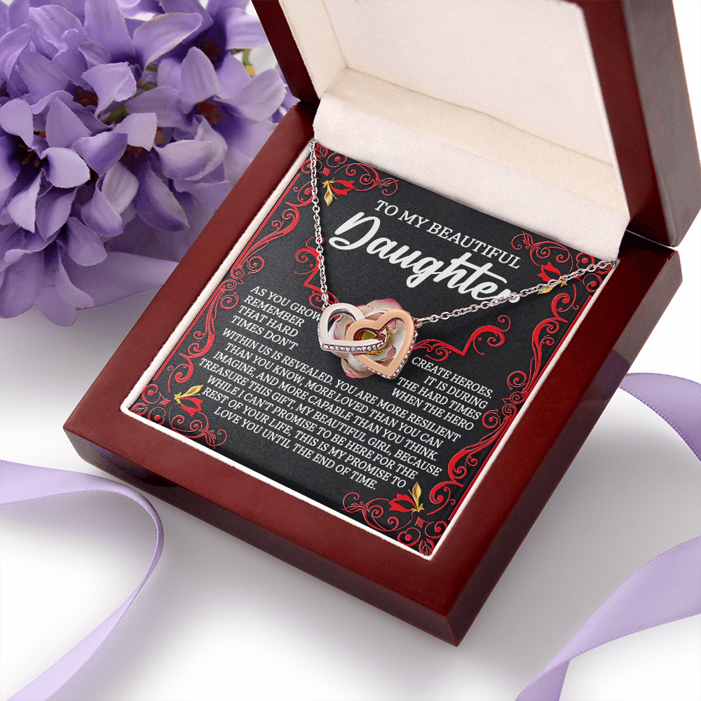 My Beautiful Daughter - You Are More Resilient Than You Know - More Loved Than You Can Imagine - More Capable Than You Think - Promise To Love You Until The End Of Time - Interlocking Hearts Necklace IH, DAU0000119IH
