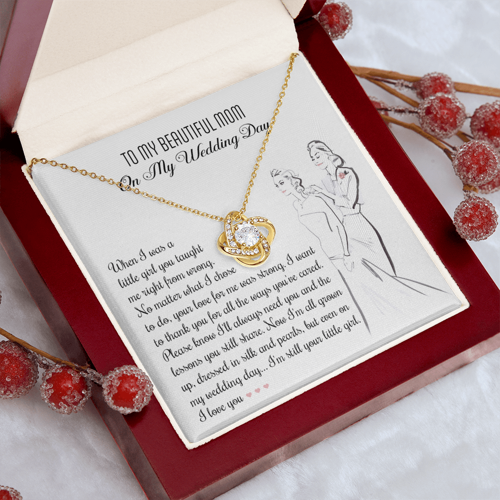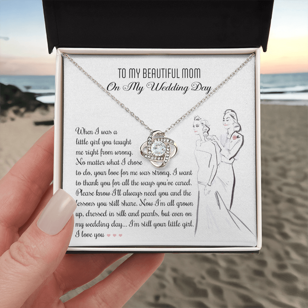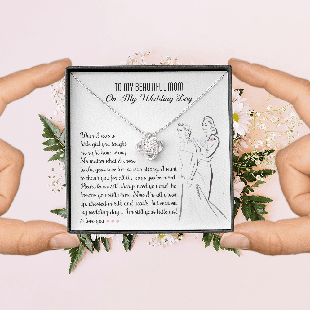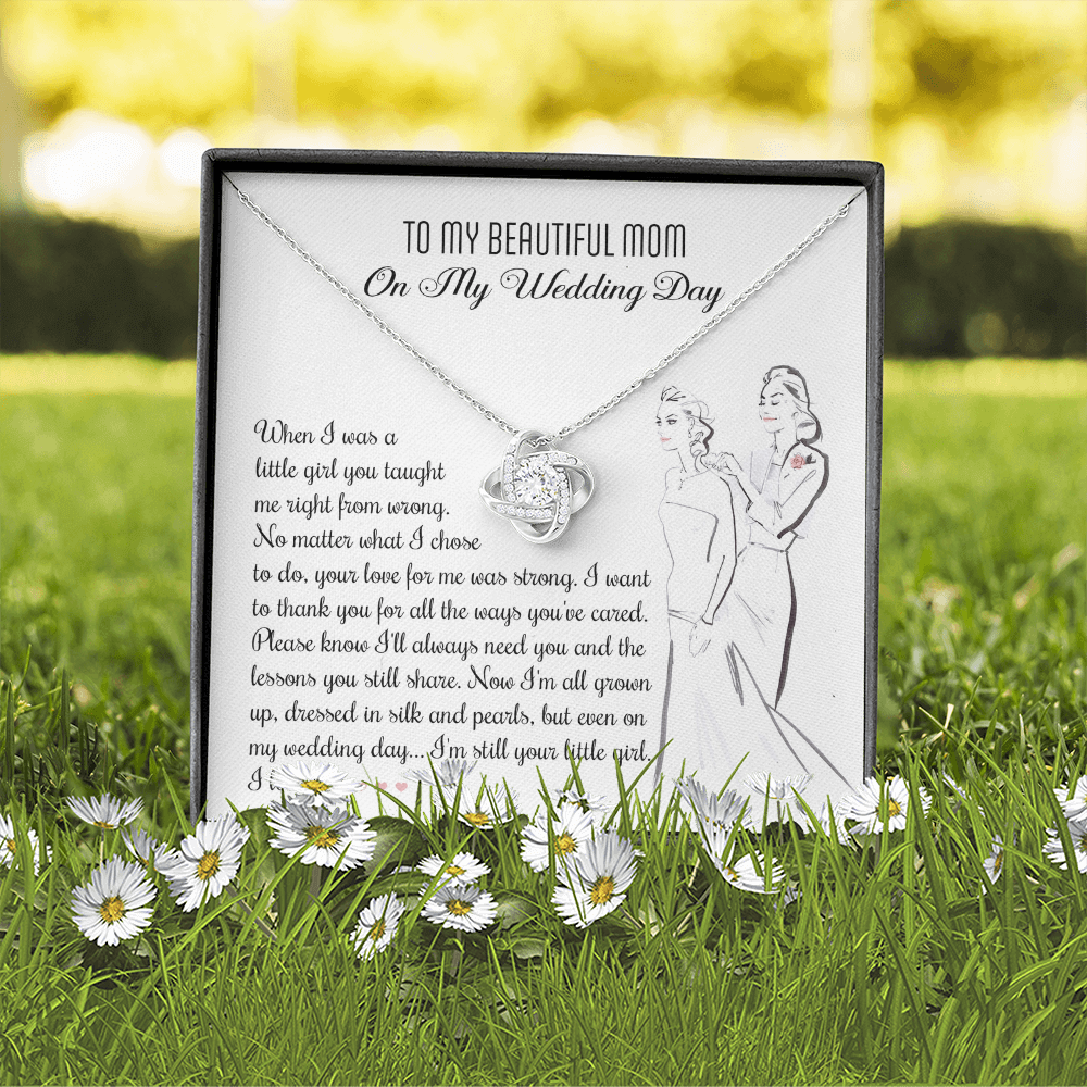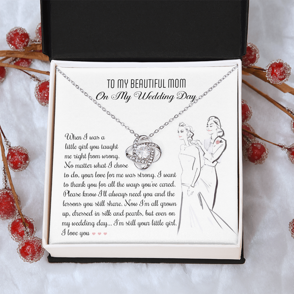 My Beautiful Mom - On My Wedding Day - Taught Me Right From Wrong, Your Love For Me Was Strong - Thank You For All The Ways You've Cared - Even On My Wedding Day, I'm Still Your Little Girl - I Love You - Love Knot Necklace LN, MOM0000075LN