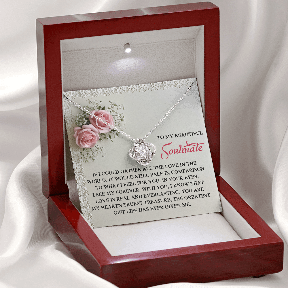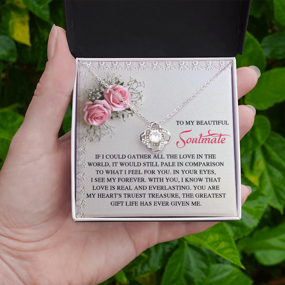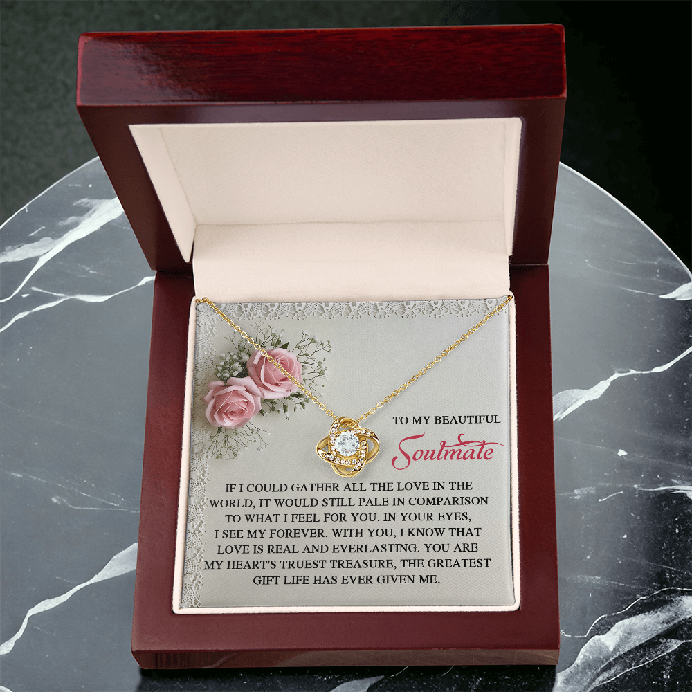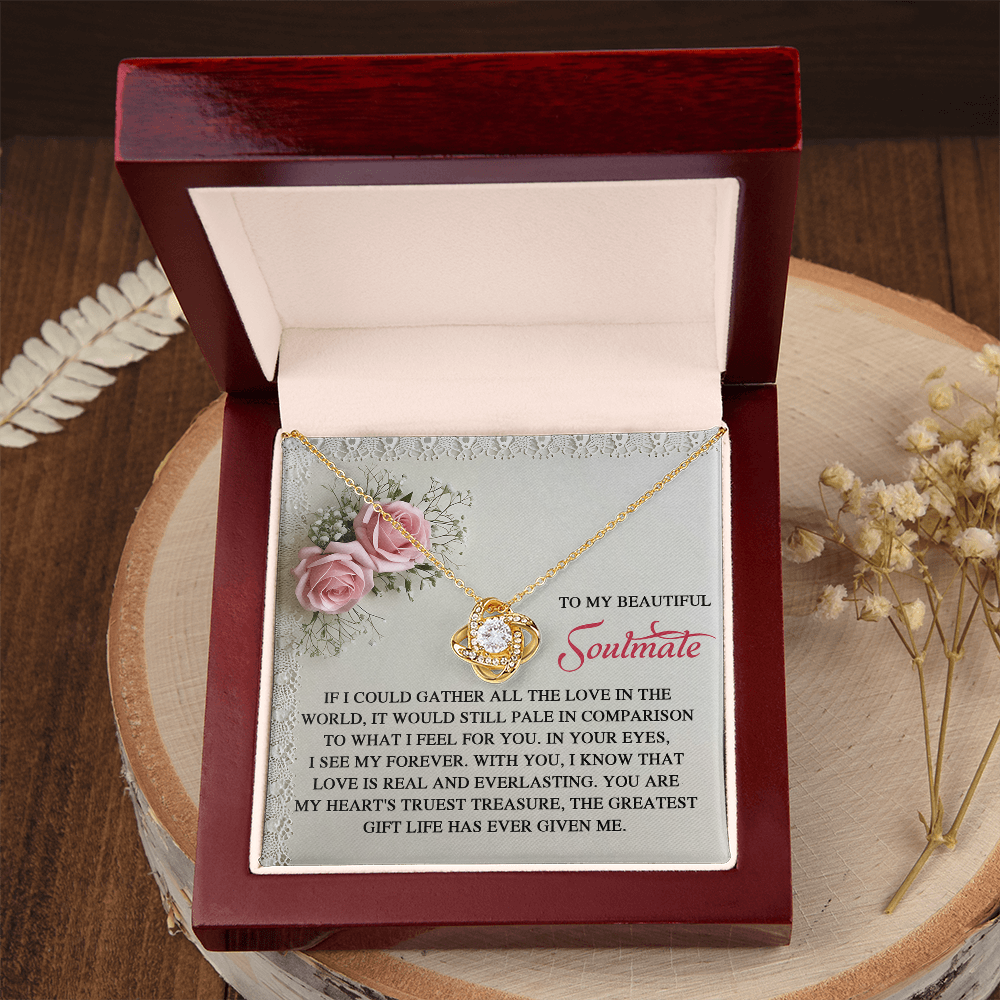 My Beautiful Soulmate - In Your Eyes, I See My Forever - With You I Know That Love Is Everlasting - My Heart's Truest Treasure - The Greatest Gift Life Has Ever Given Me - Love Knot Necklace LN, SMT0000094LN